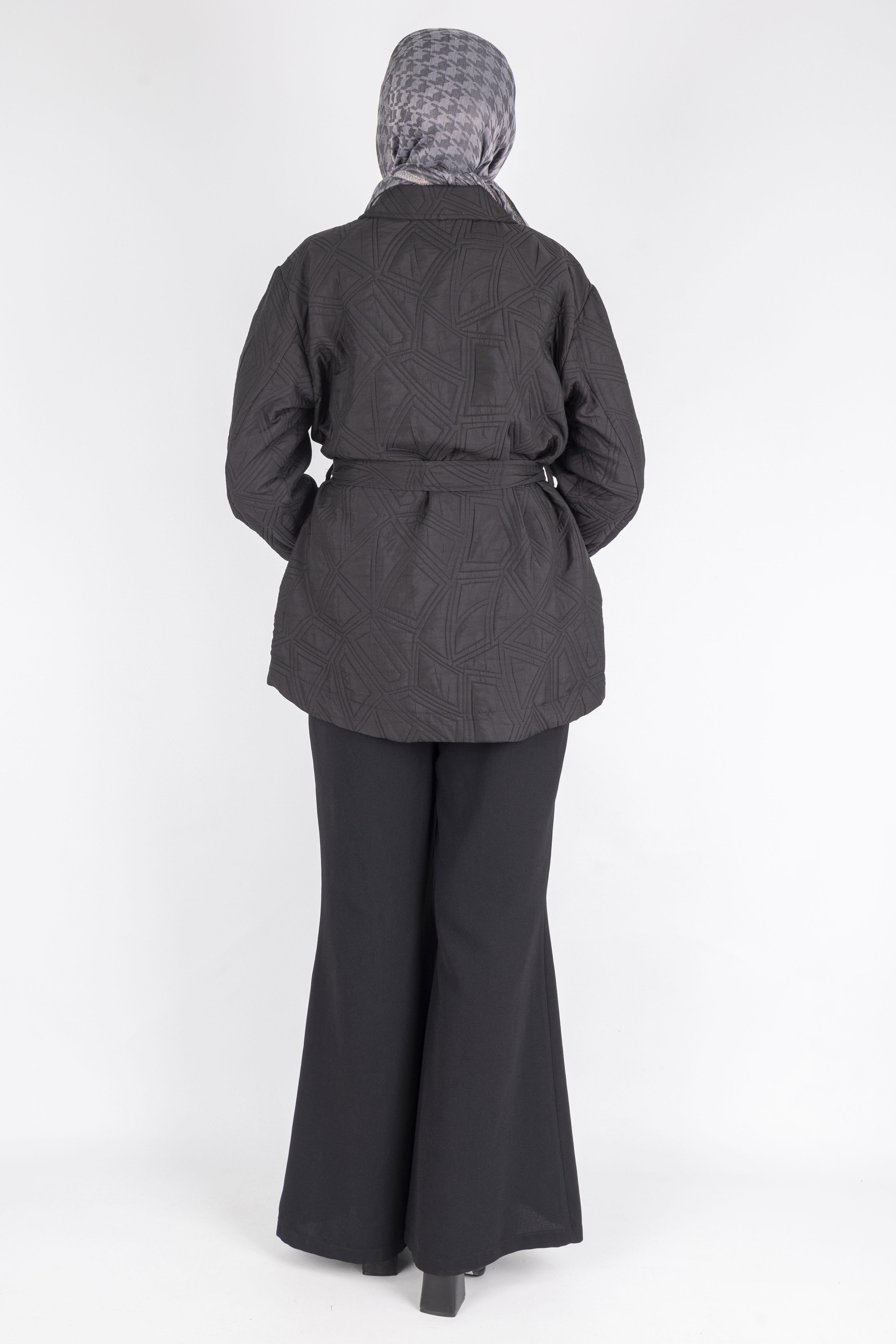 Fermuarlı yapısı ve beldeki kemeri ile formu kolayca ayarlanabilir, vücuda oturan şık bir görünüm oluşturur.