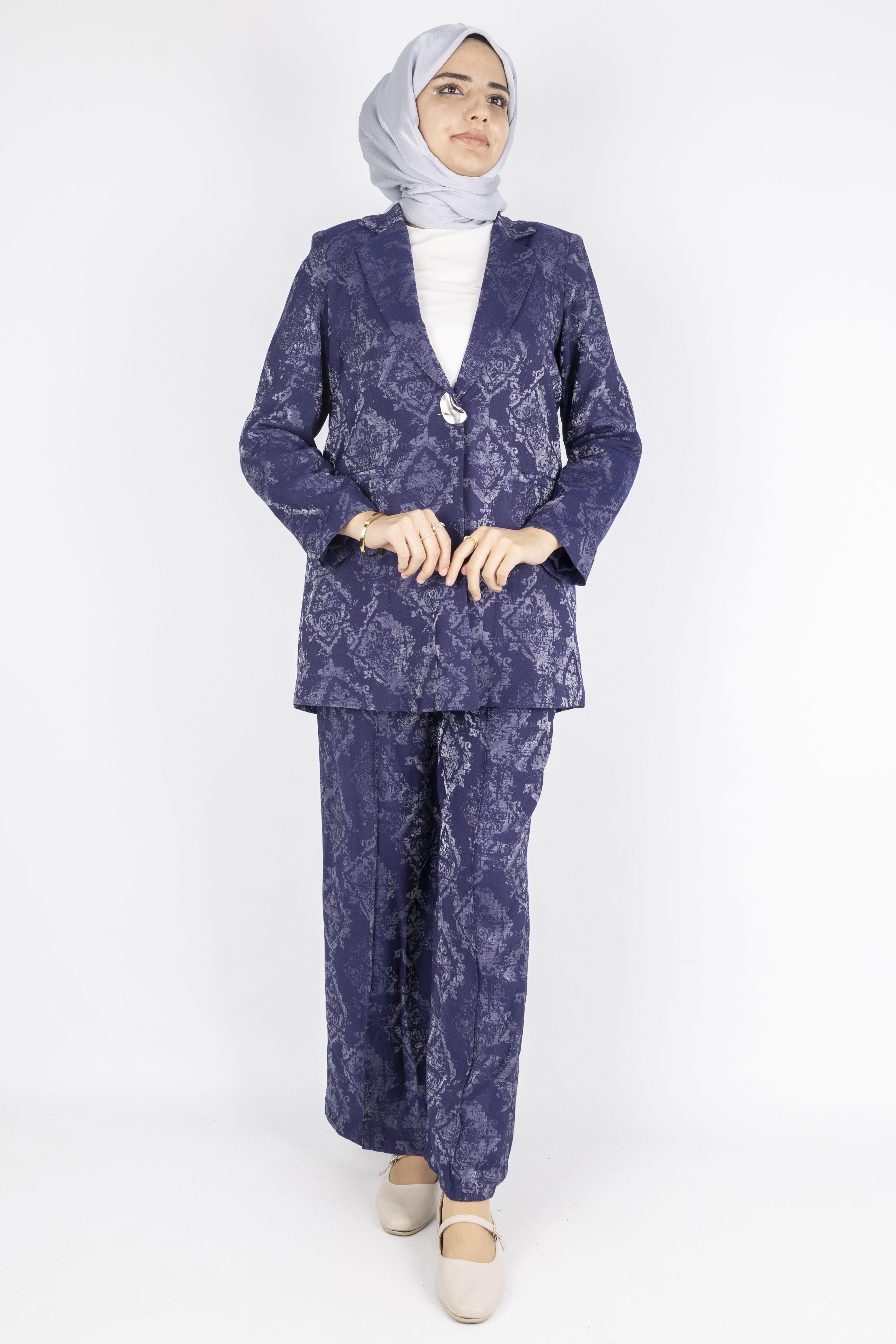 Jakar Desenli Şık İkili Takım Lacivert OTW2610