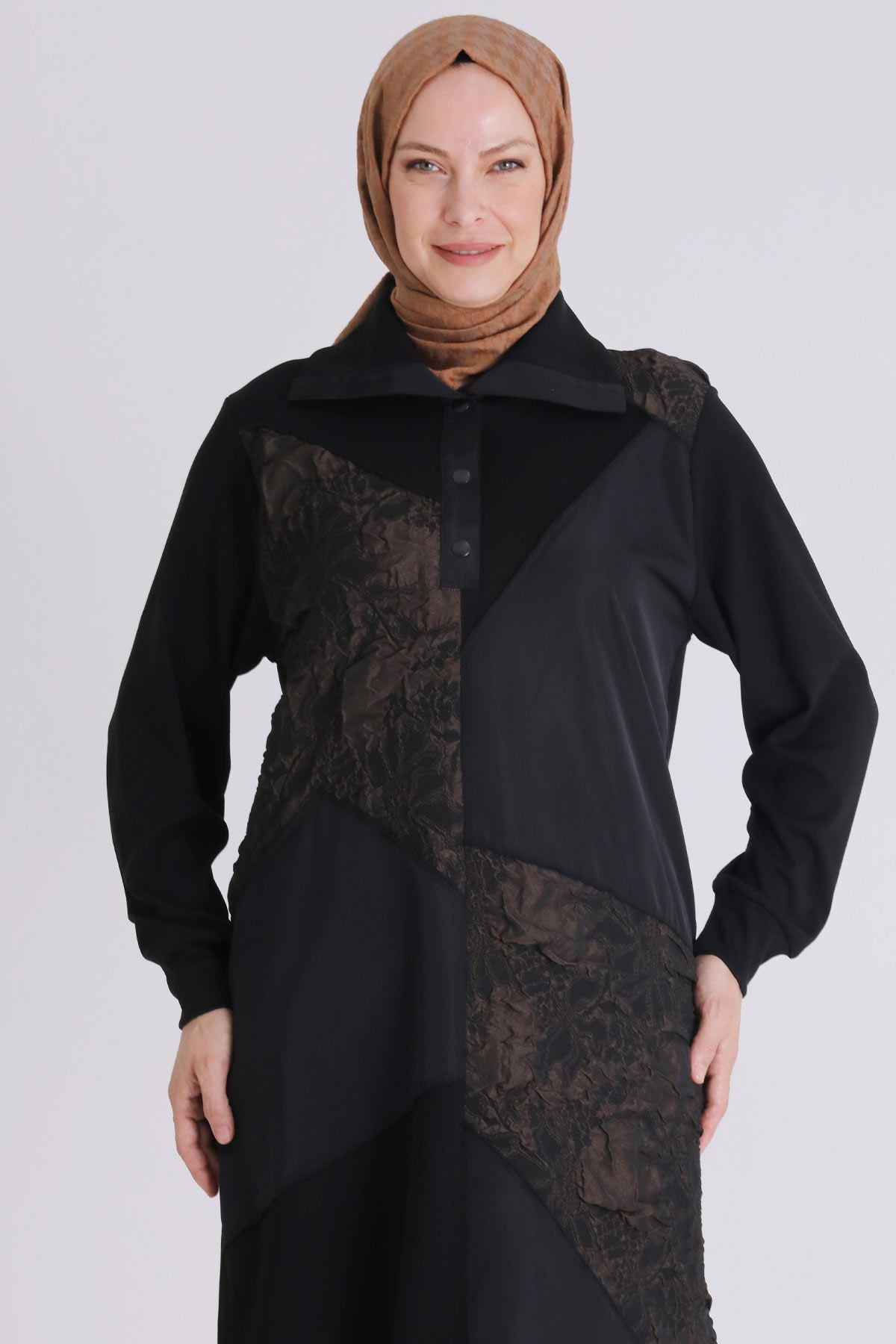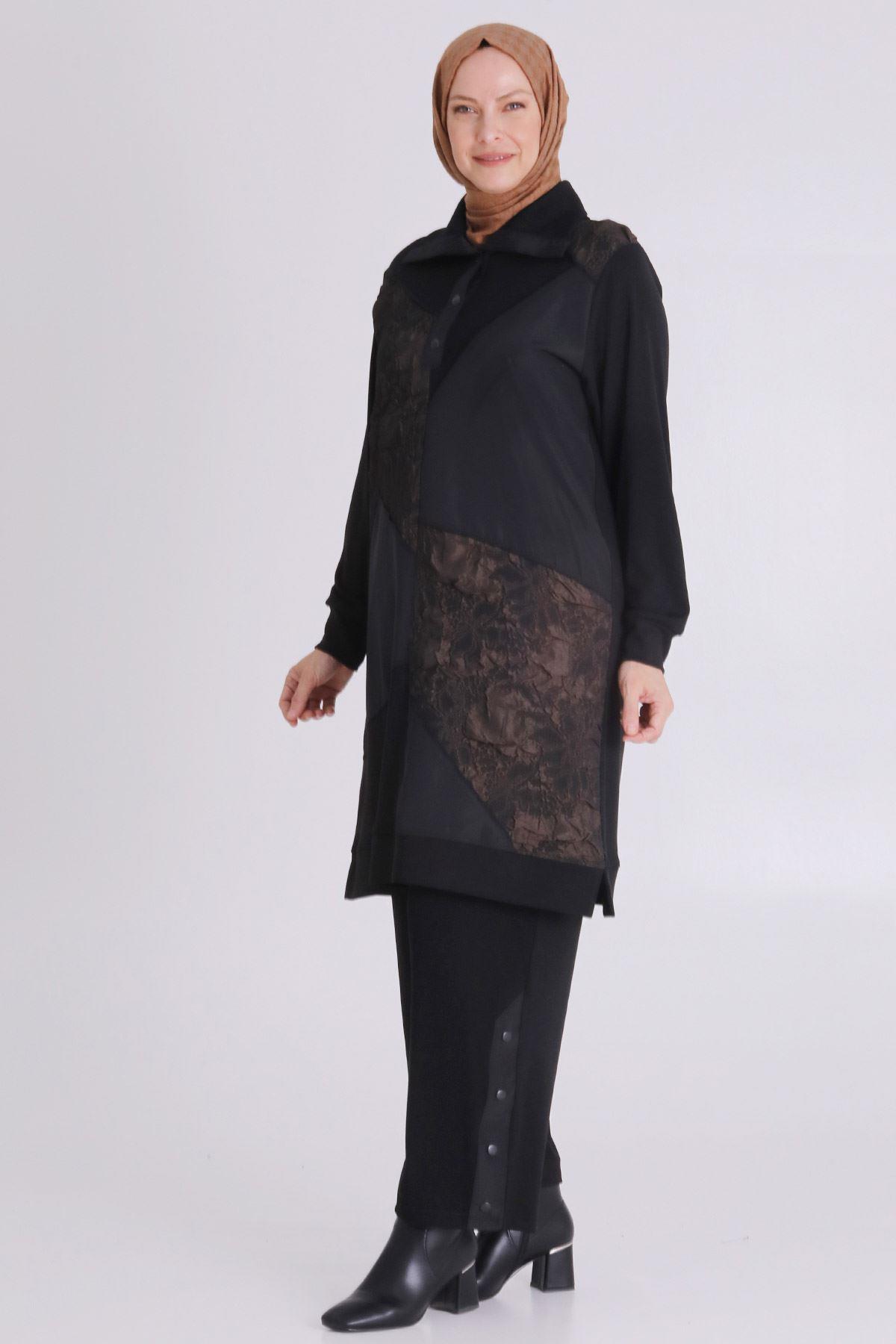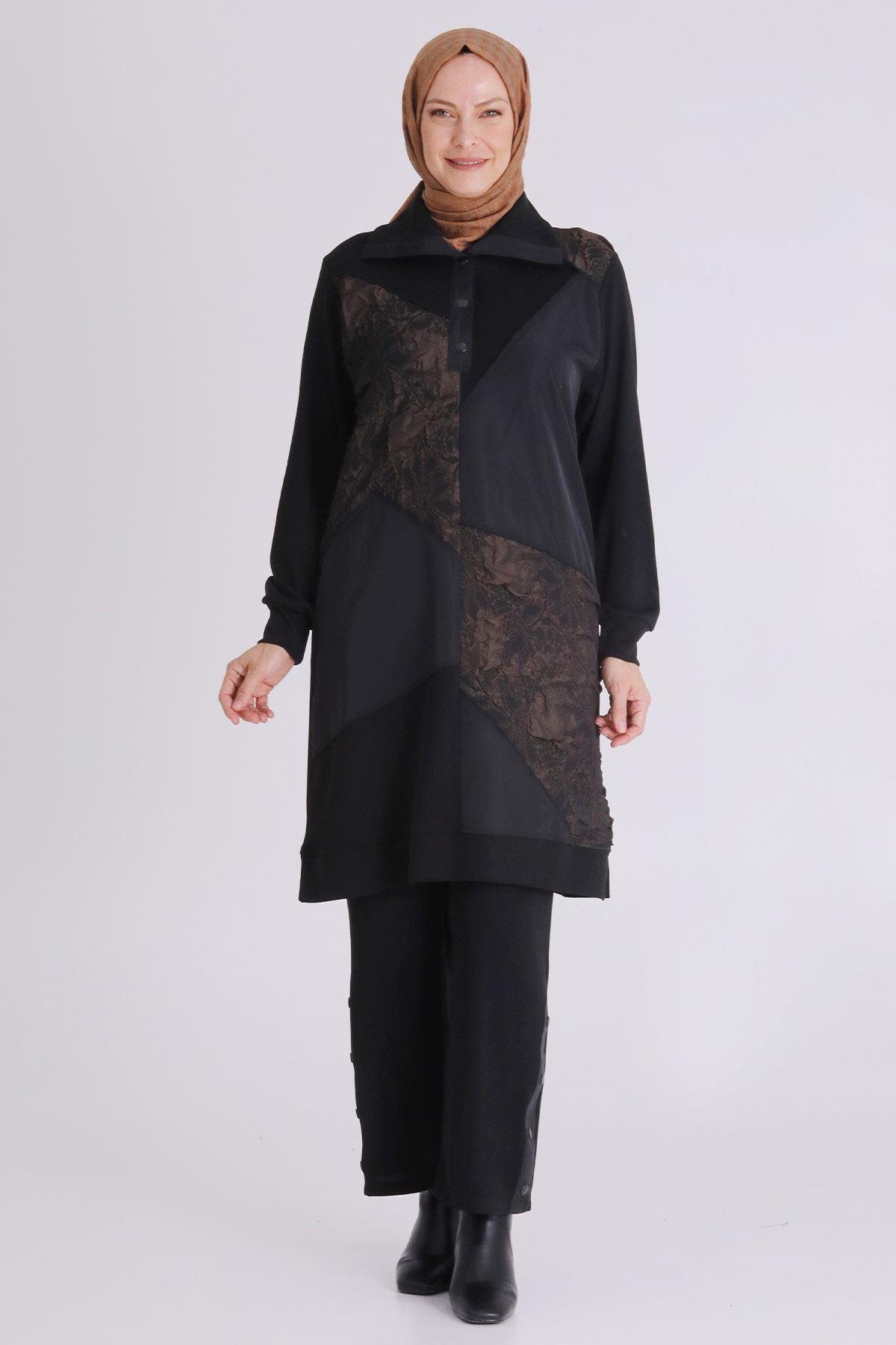 Ürün Detayları: Patcwork detaylı jakar kumaş kombinli modelimiz yarım patlıdır. Pantolon beli lastikli ve iki yandan ceplidir, paçası çıtçıt aksesuar detaylıdır..