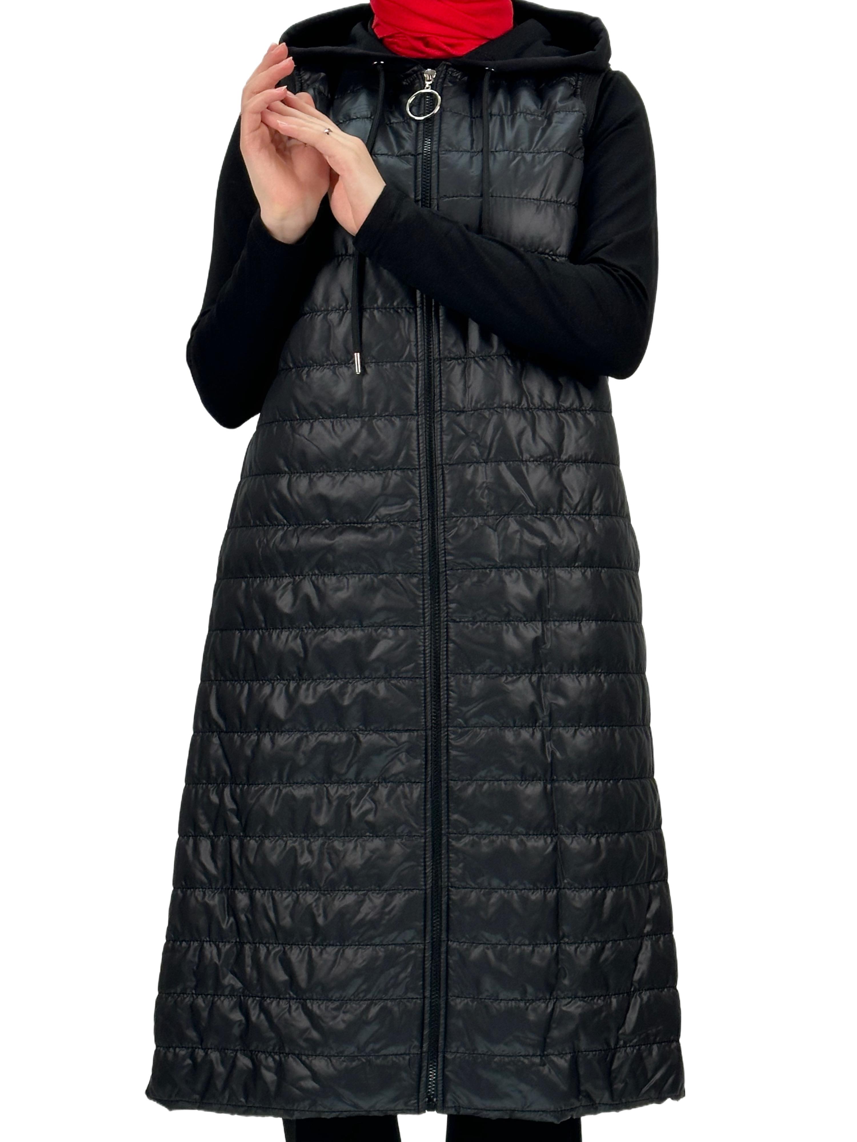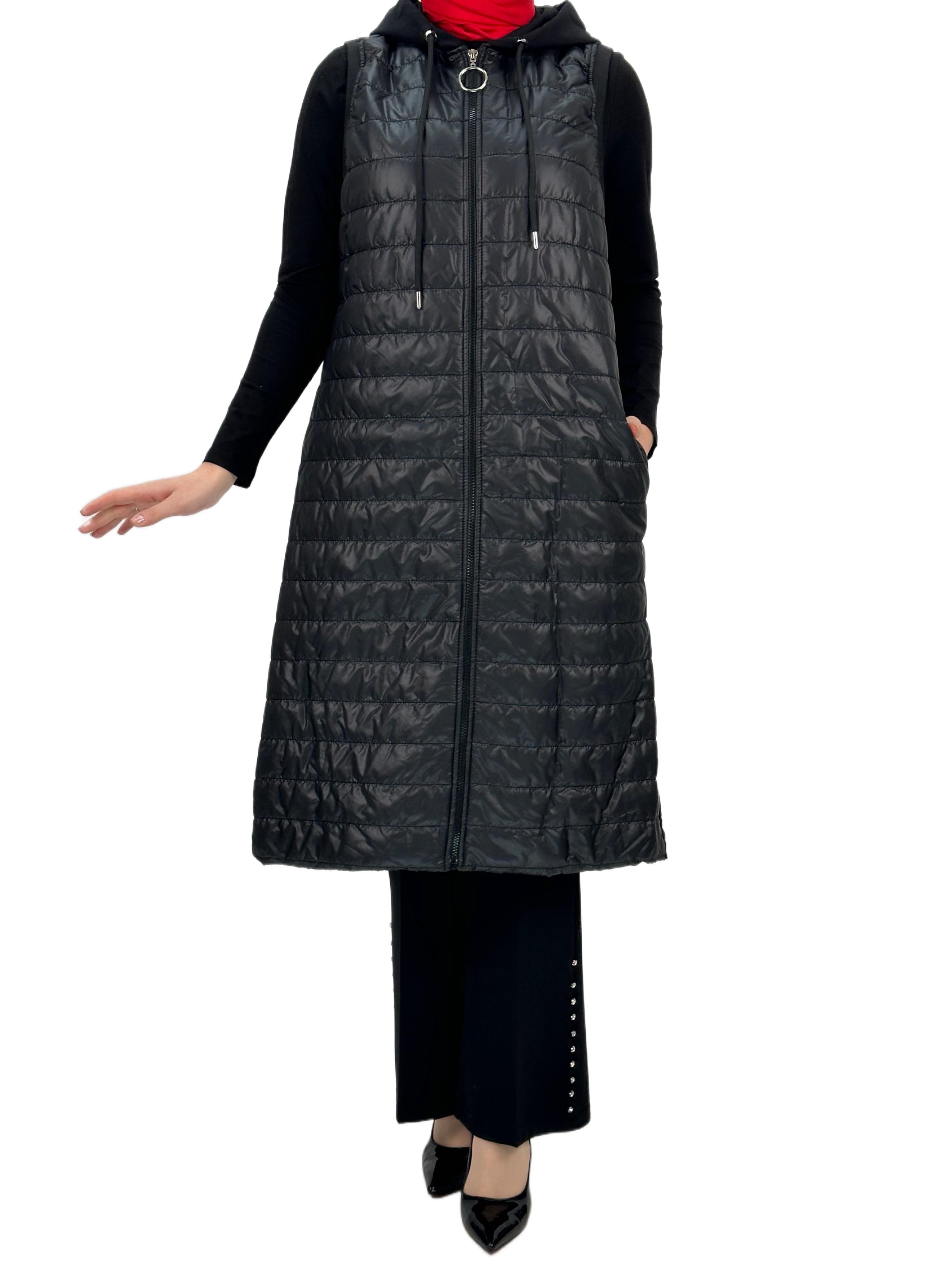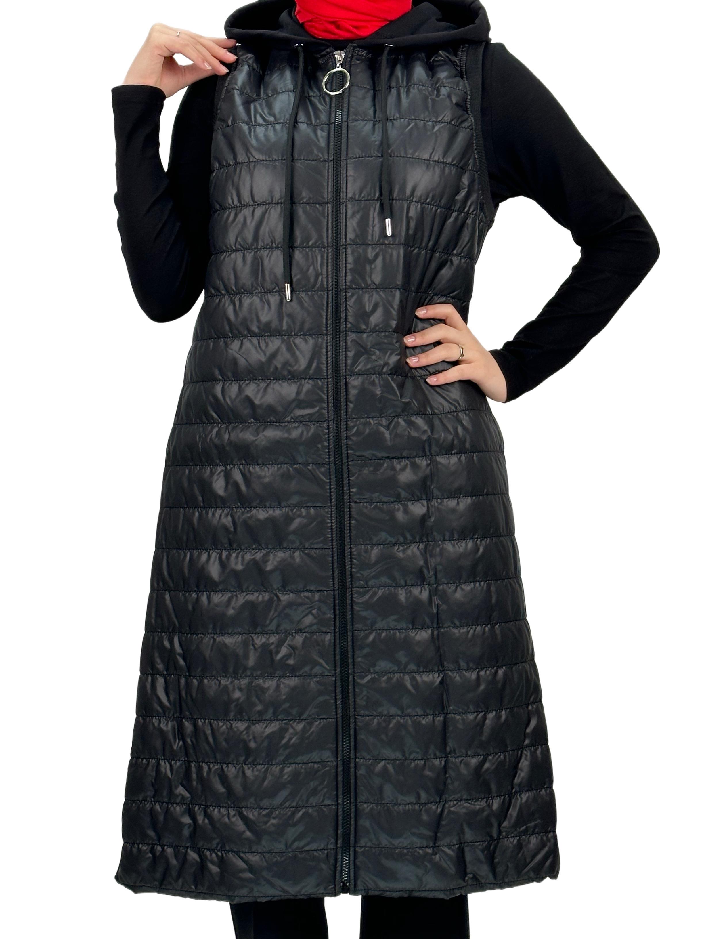 Kapitone Kapüşonlu Yelek Siyah OTW710/611