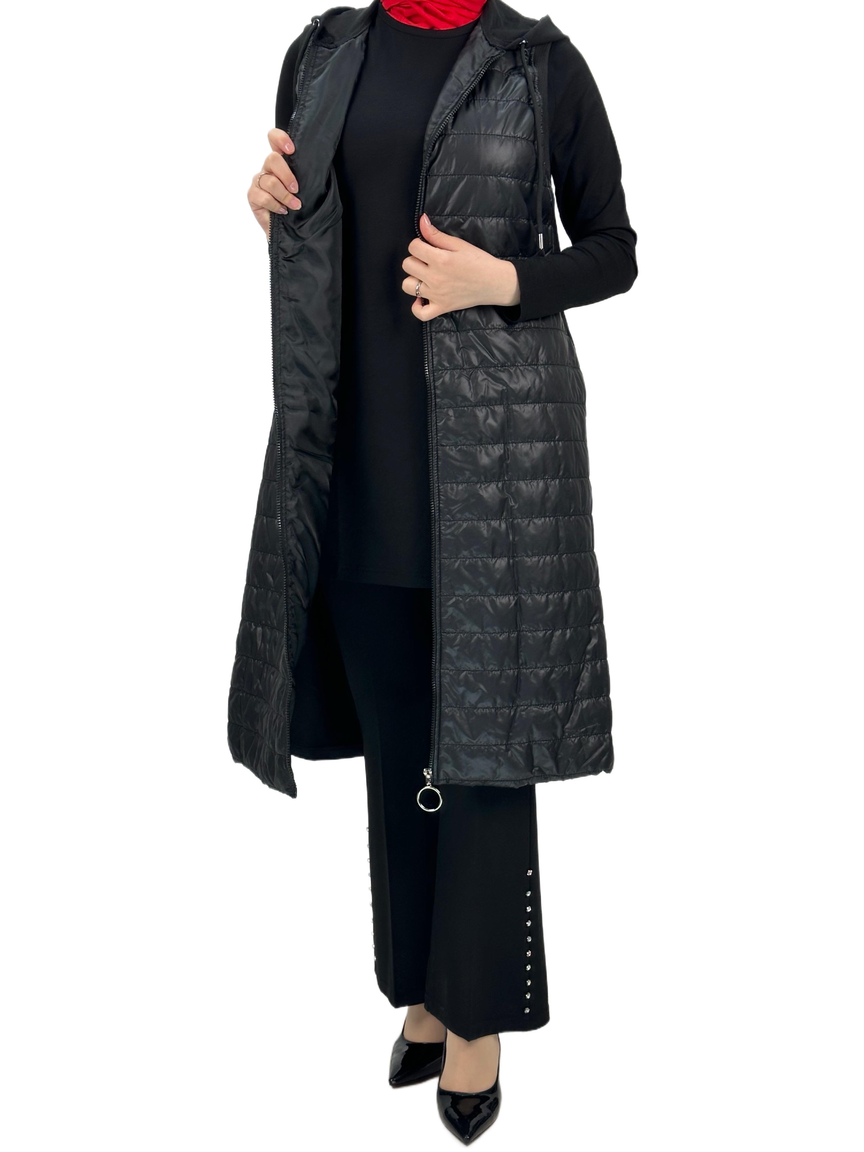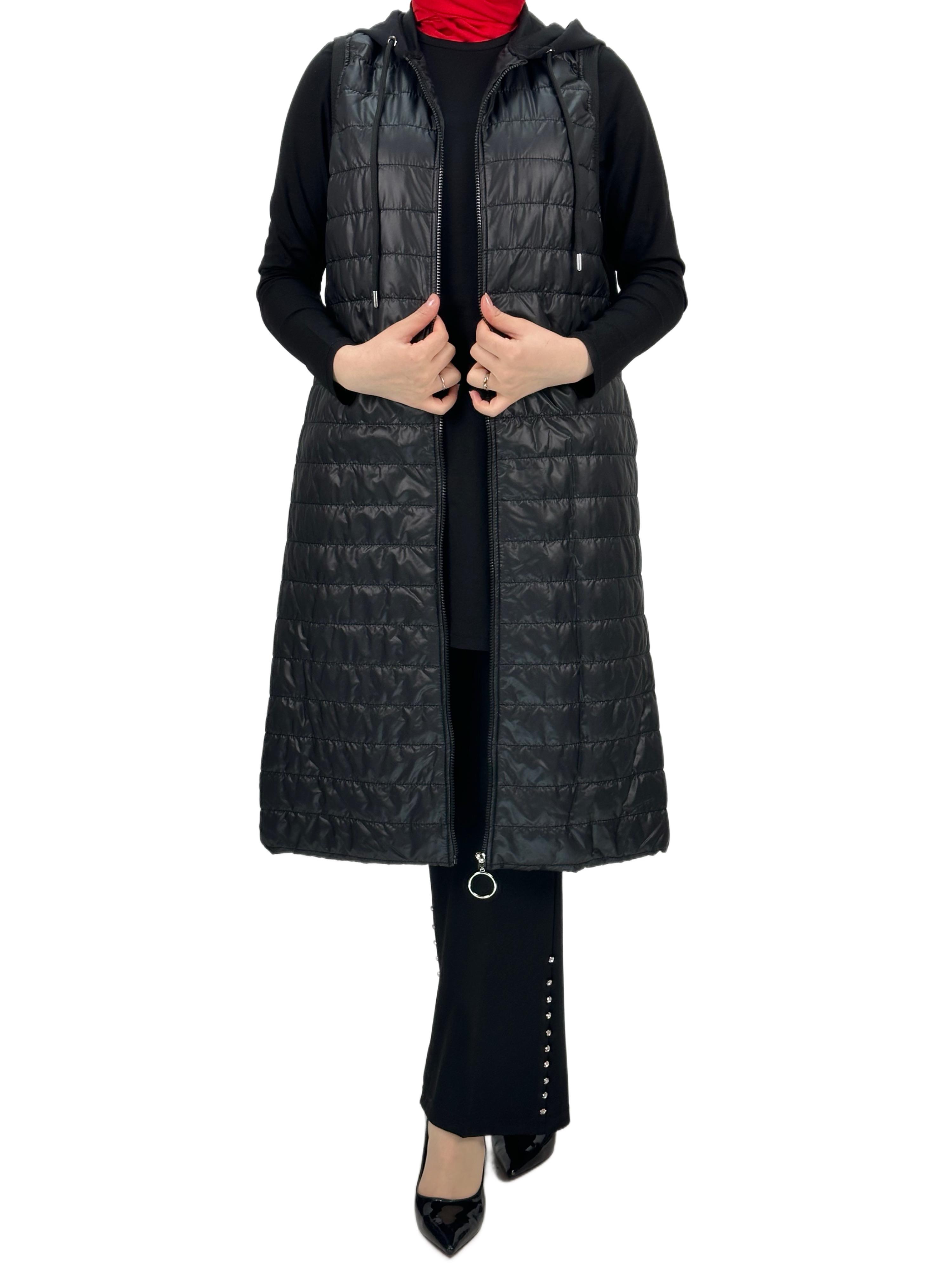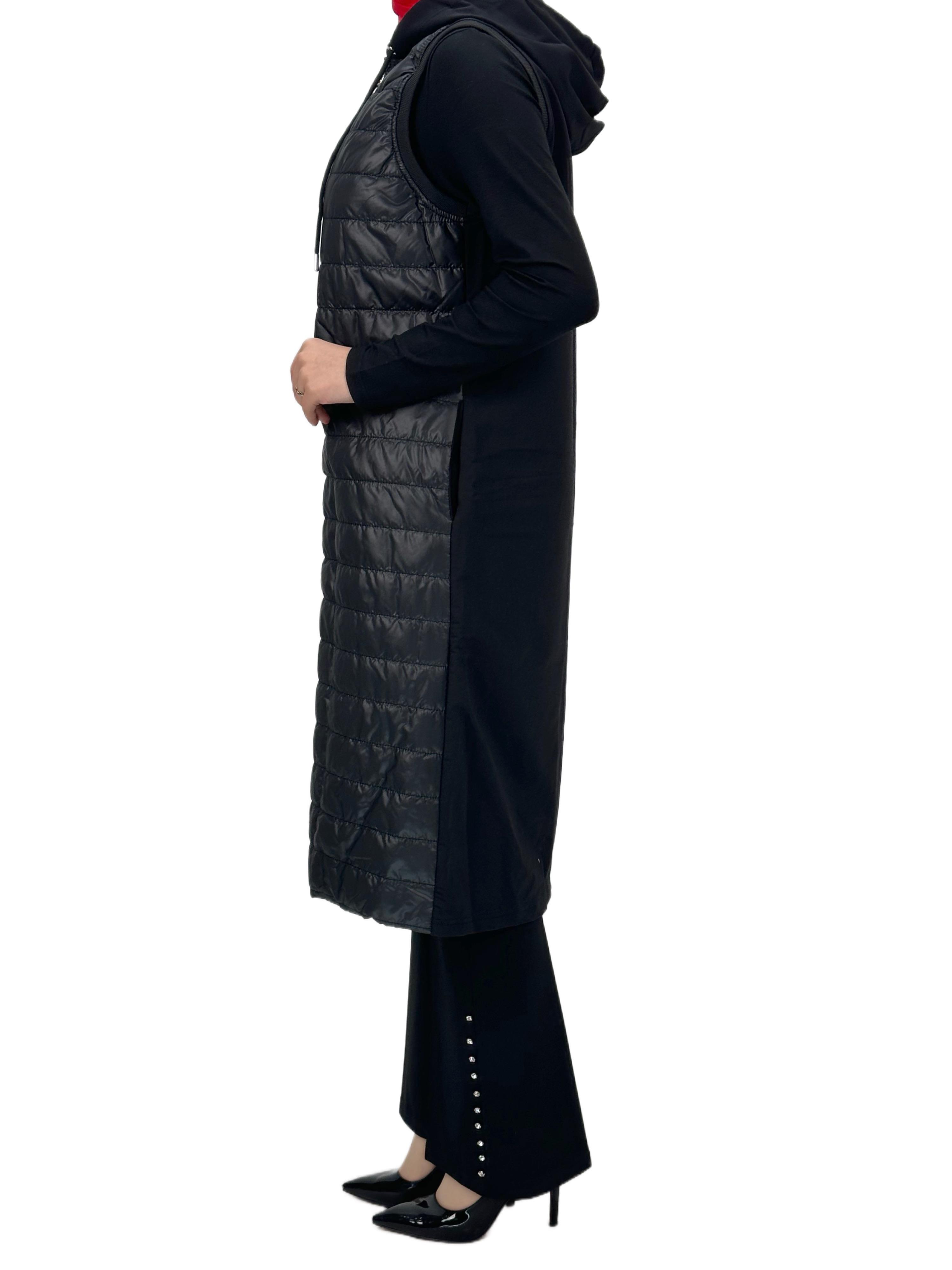 Kapitone Kapüşonlu Yelek Siyah OTW710/611