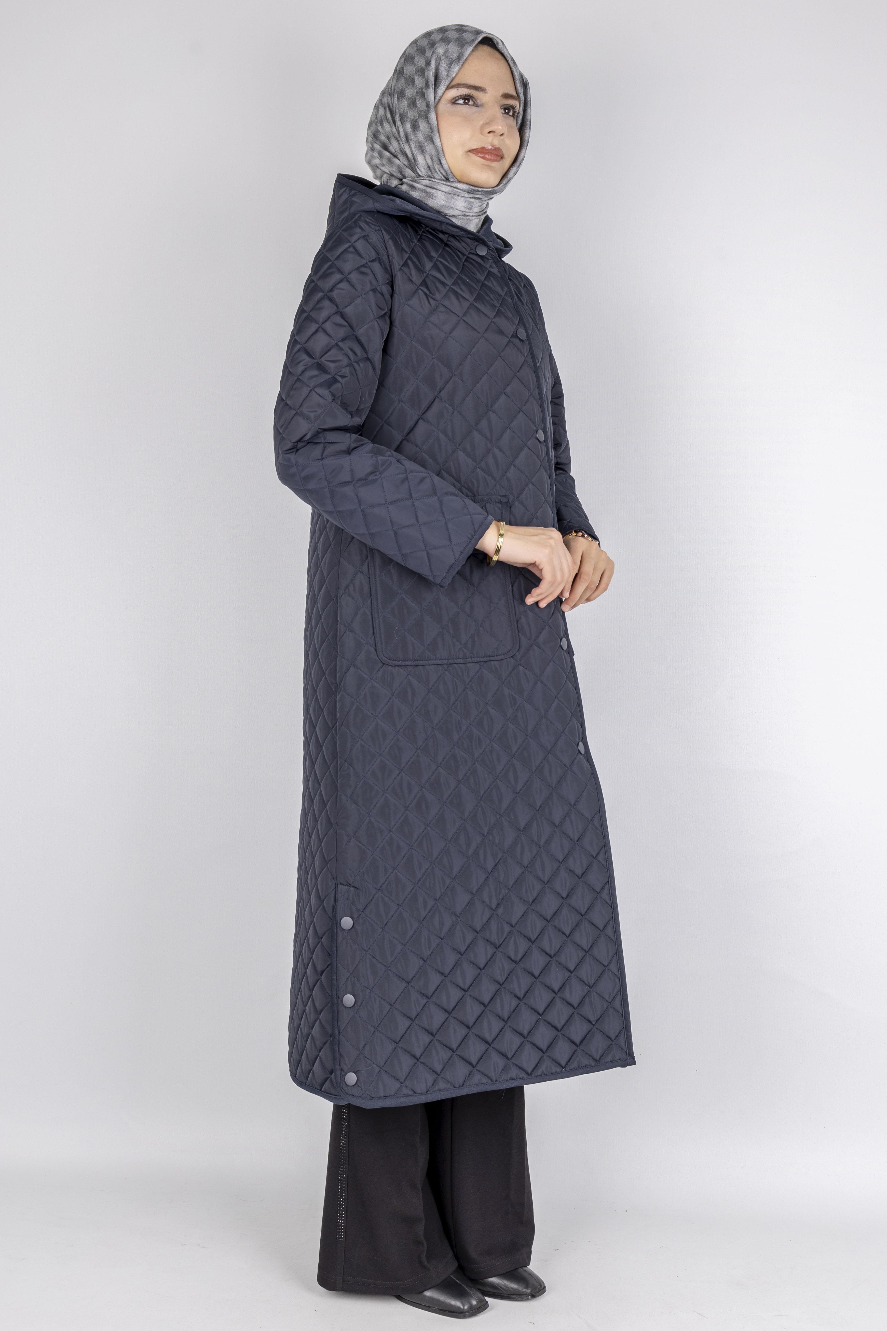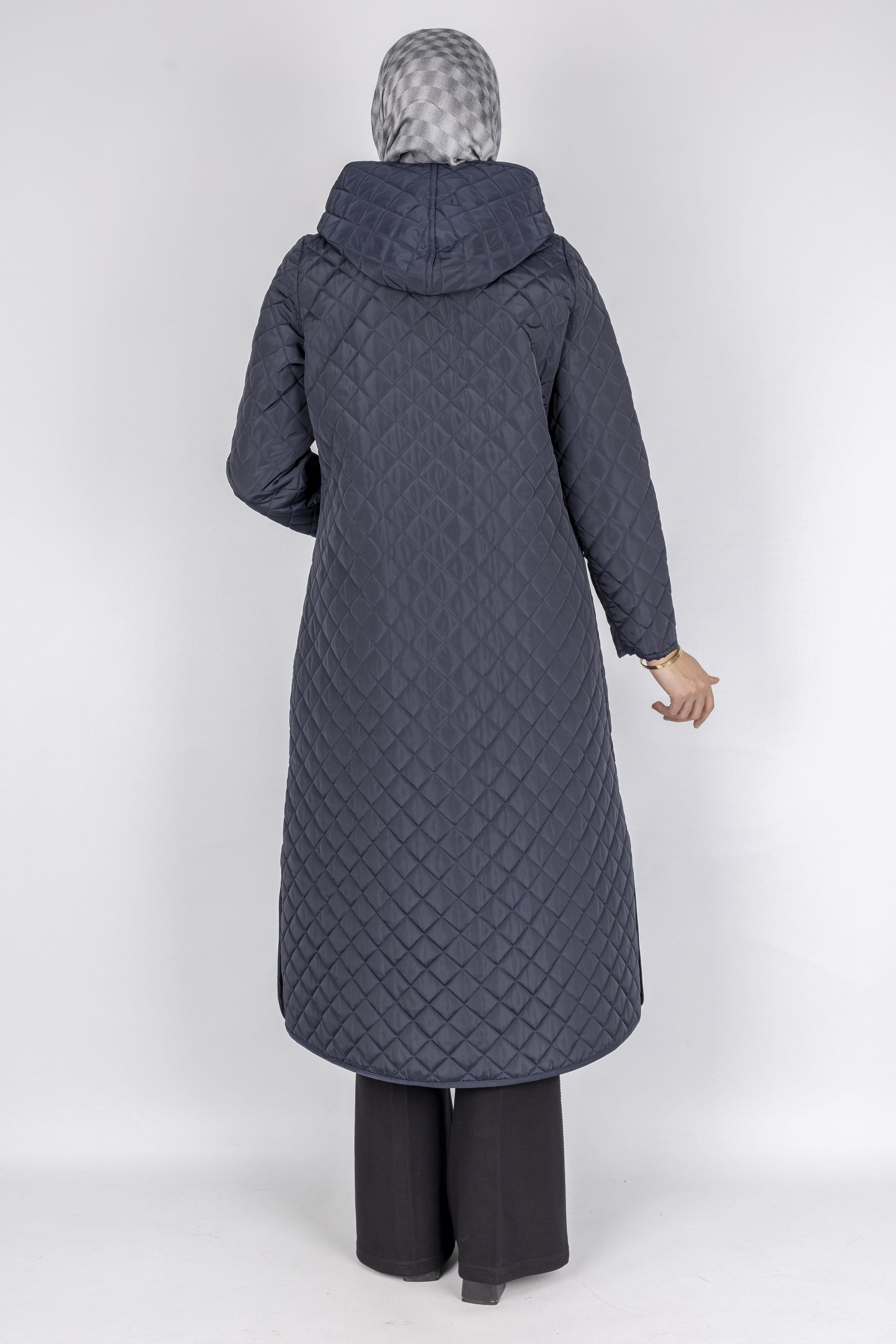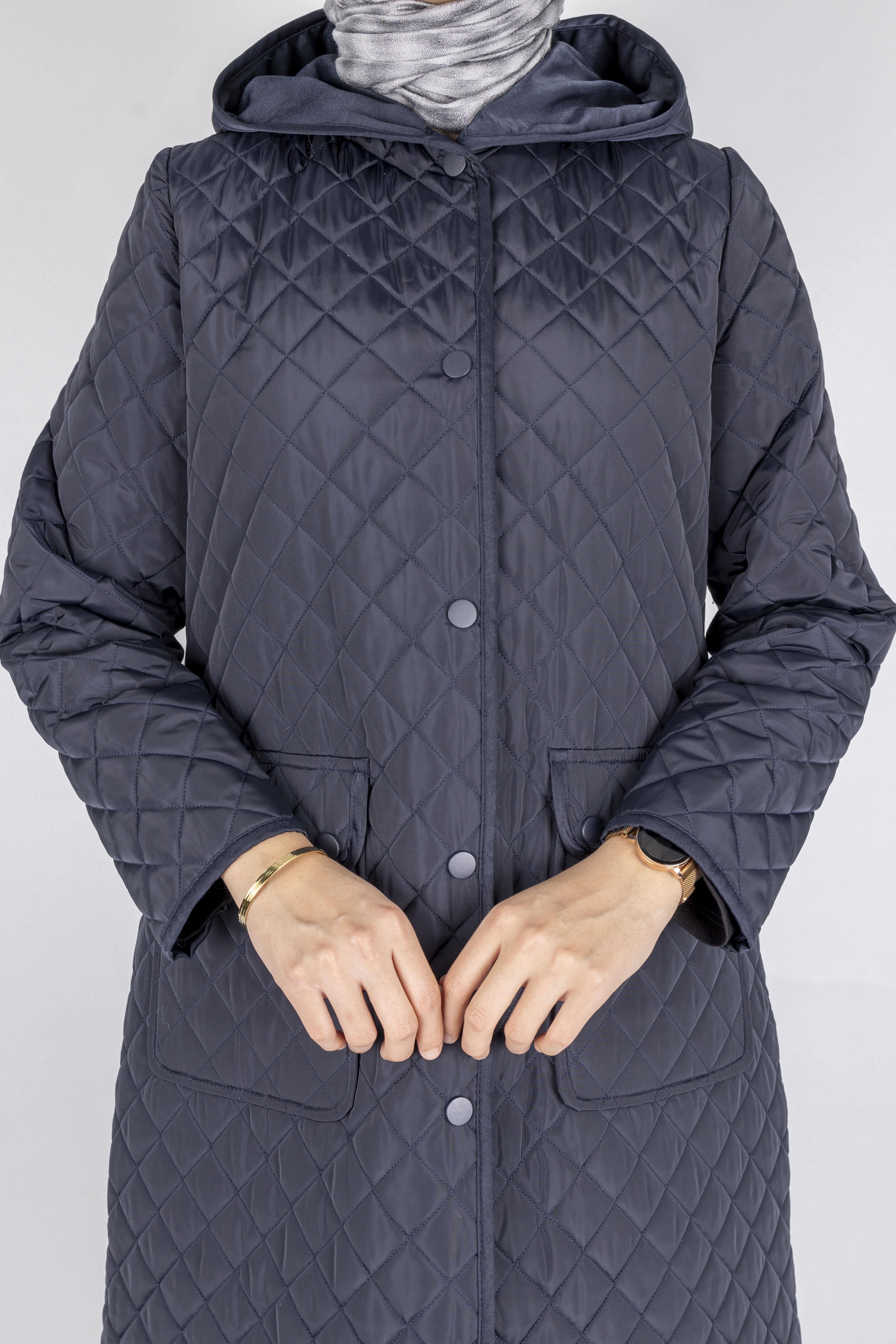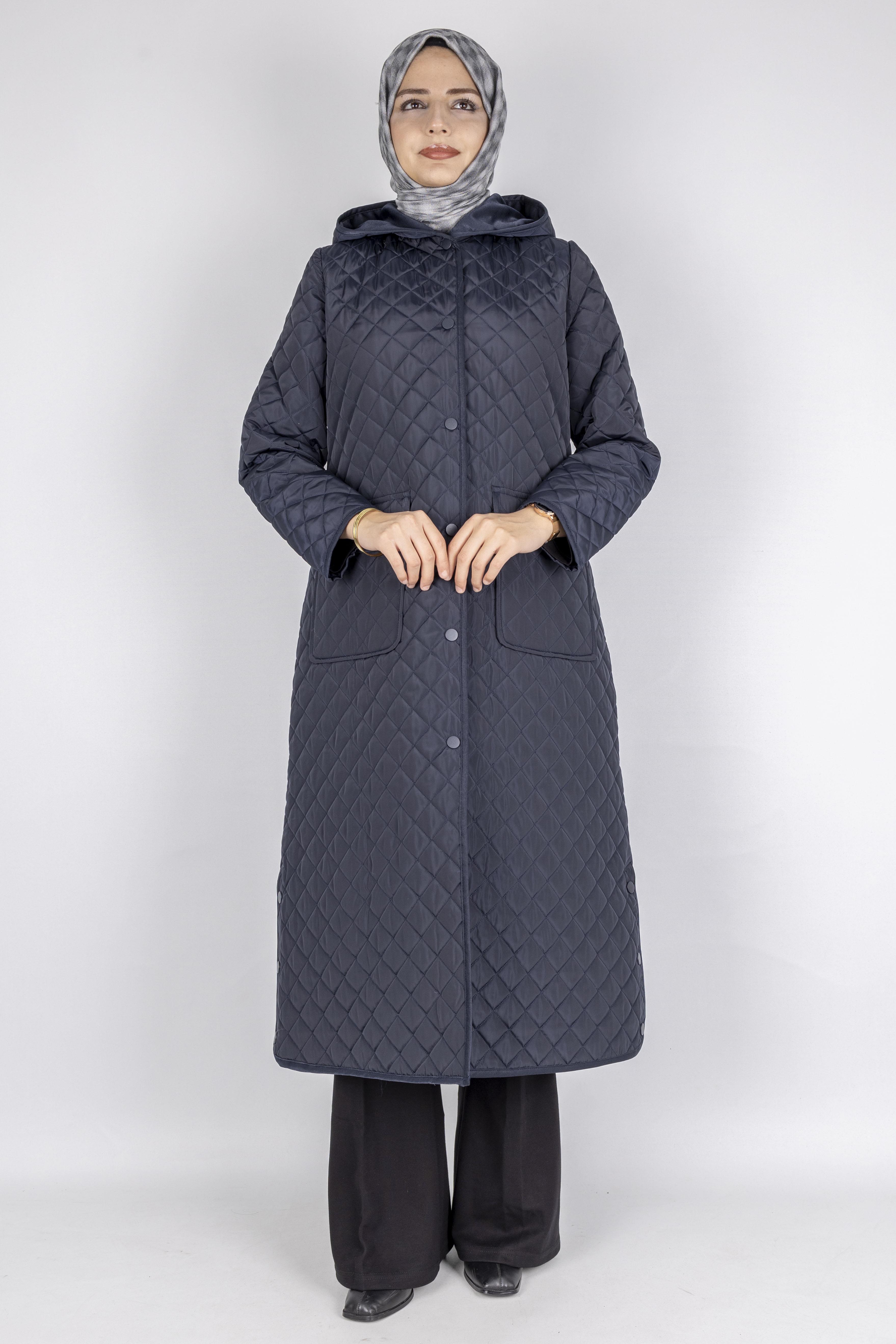 Kapüşonlu Çıtçıtlı Kapitone Tesettür Kap Lacivert OTW36309