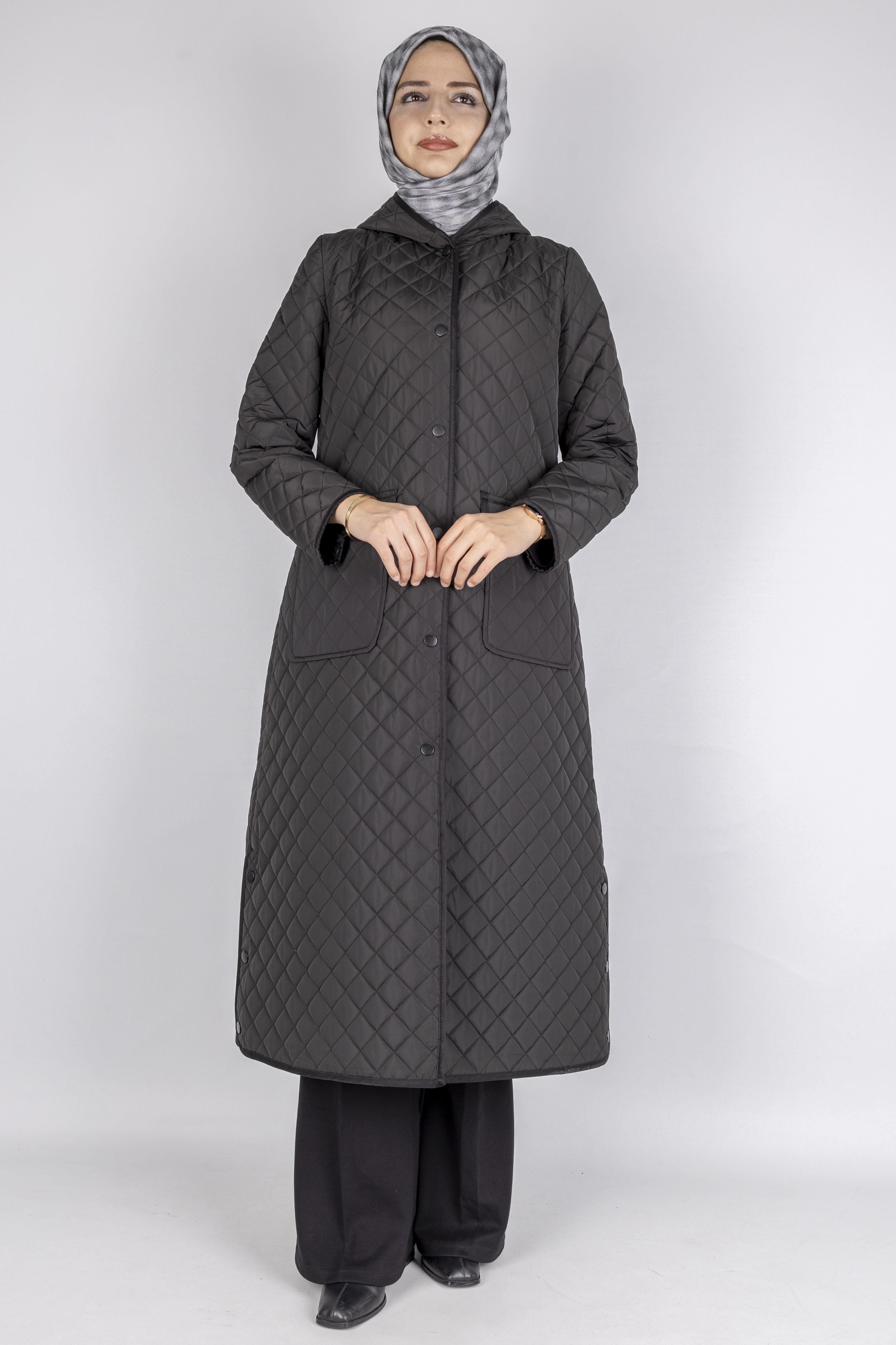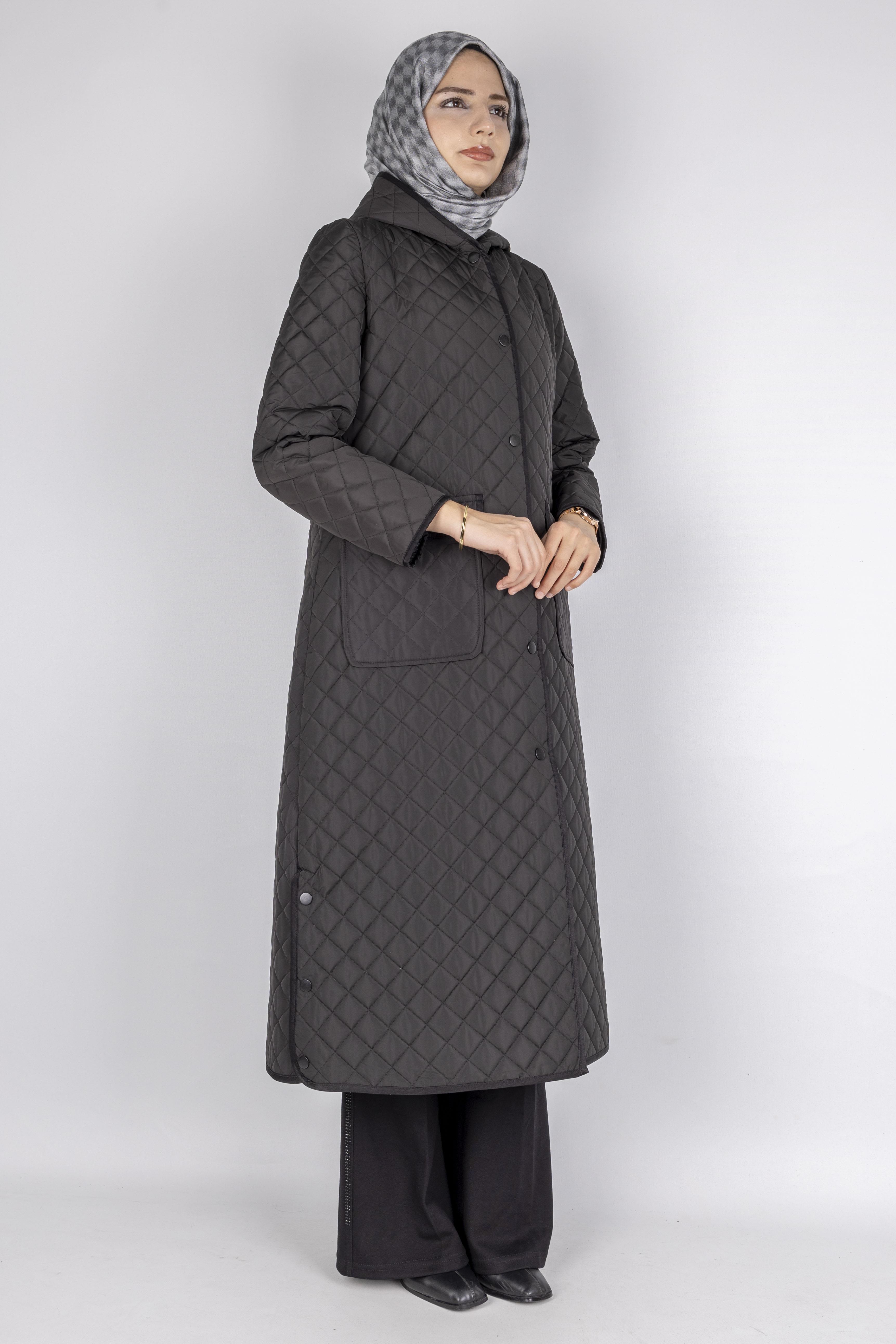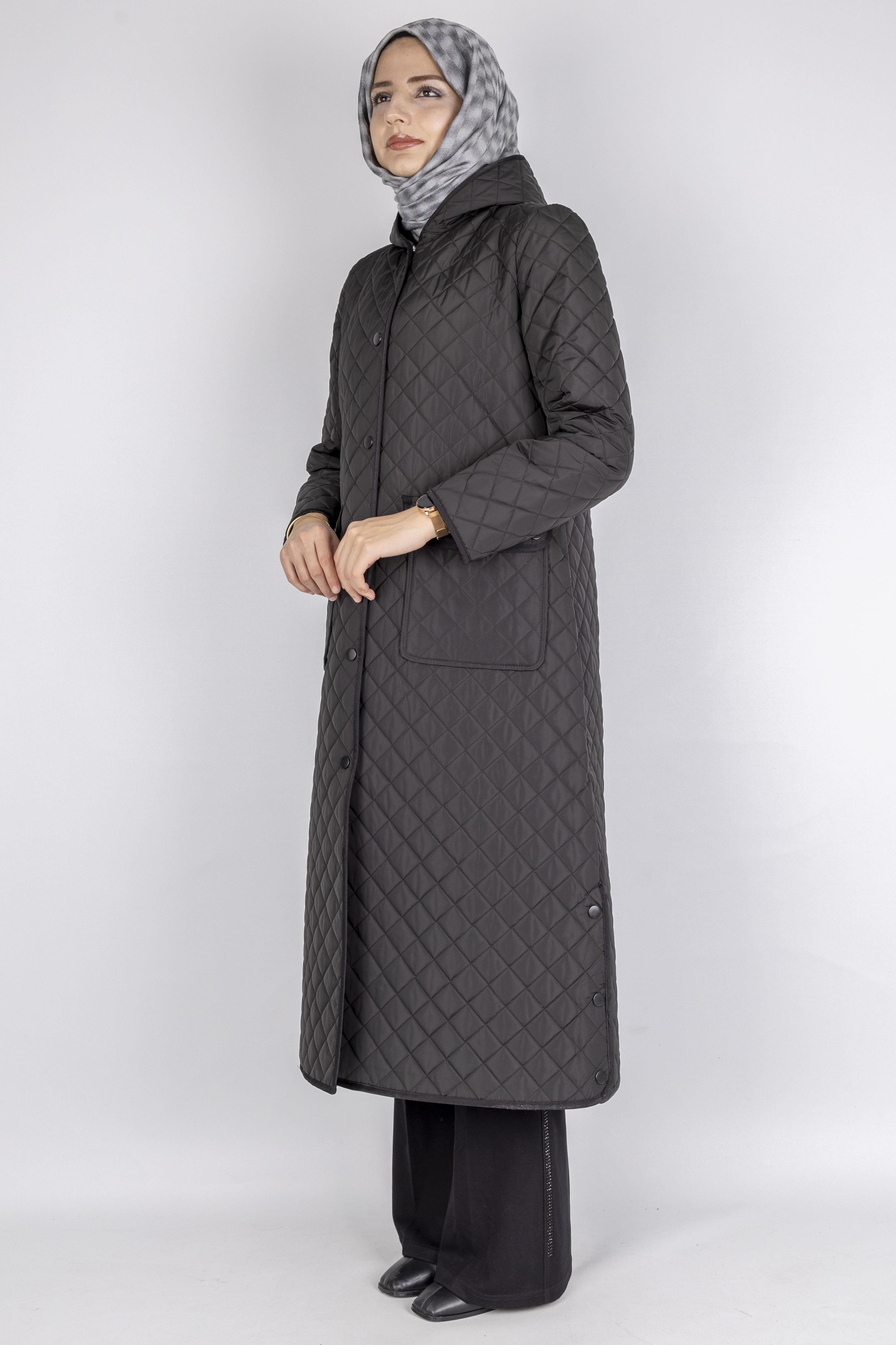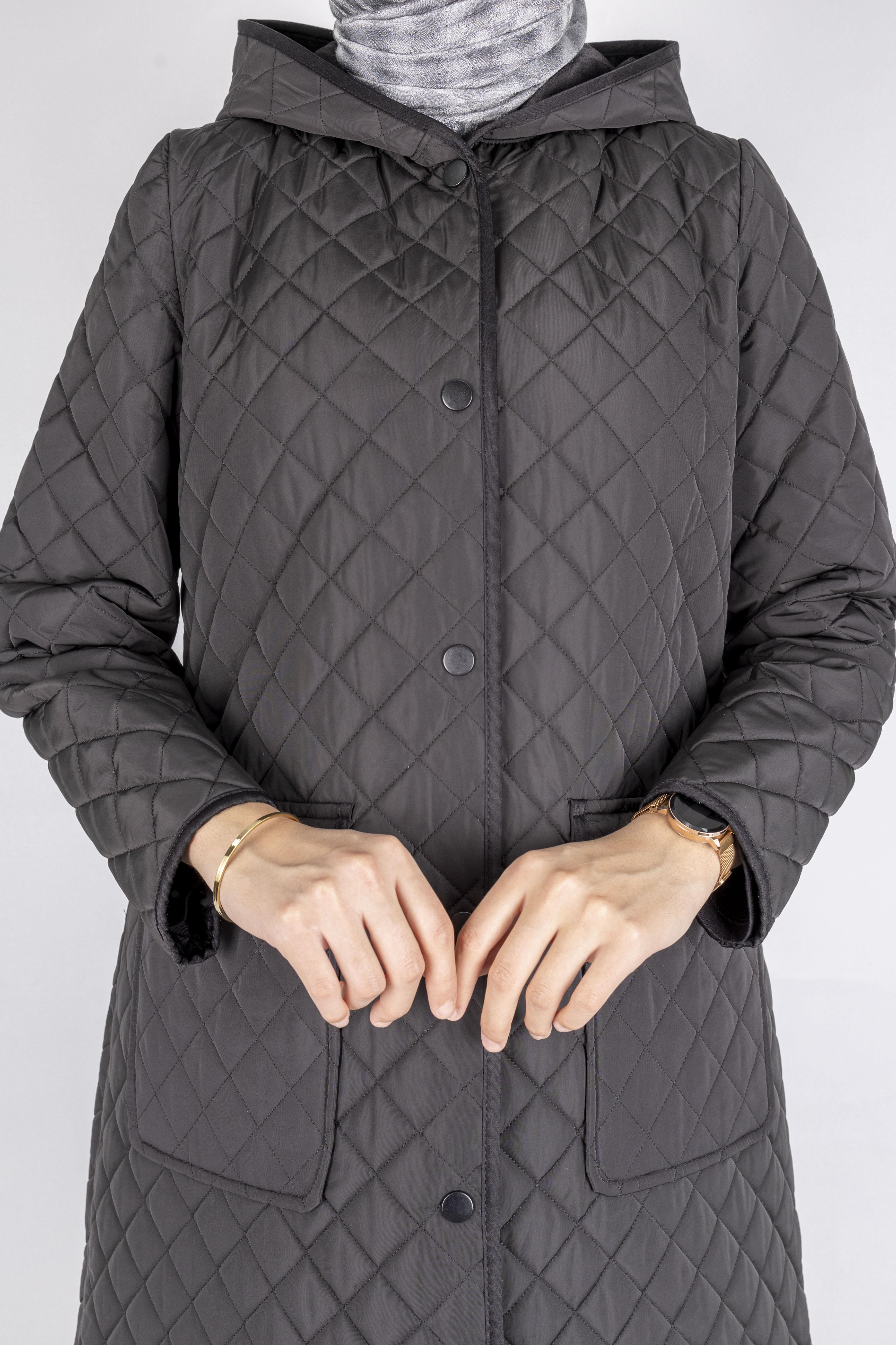 Kapüşonlu Çıtçıtlı Kapitone Tesettür Kap Siyah OTW36309