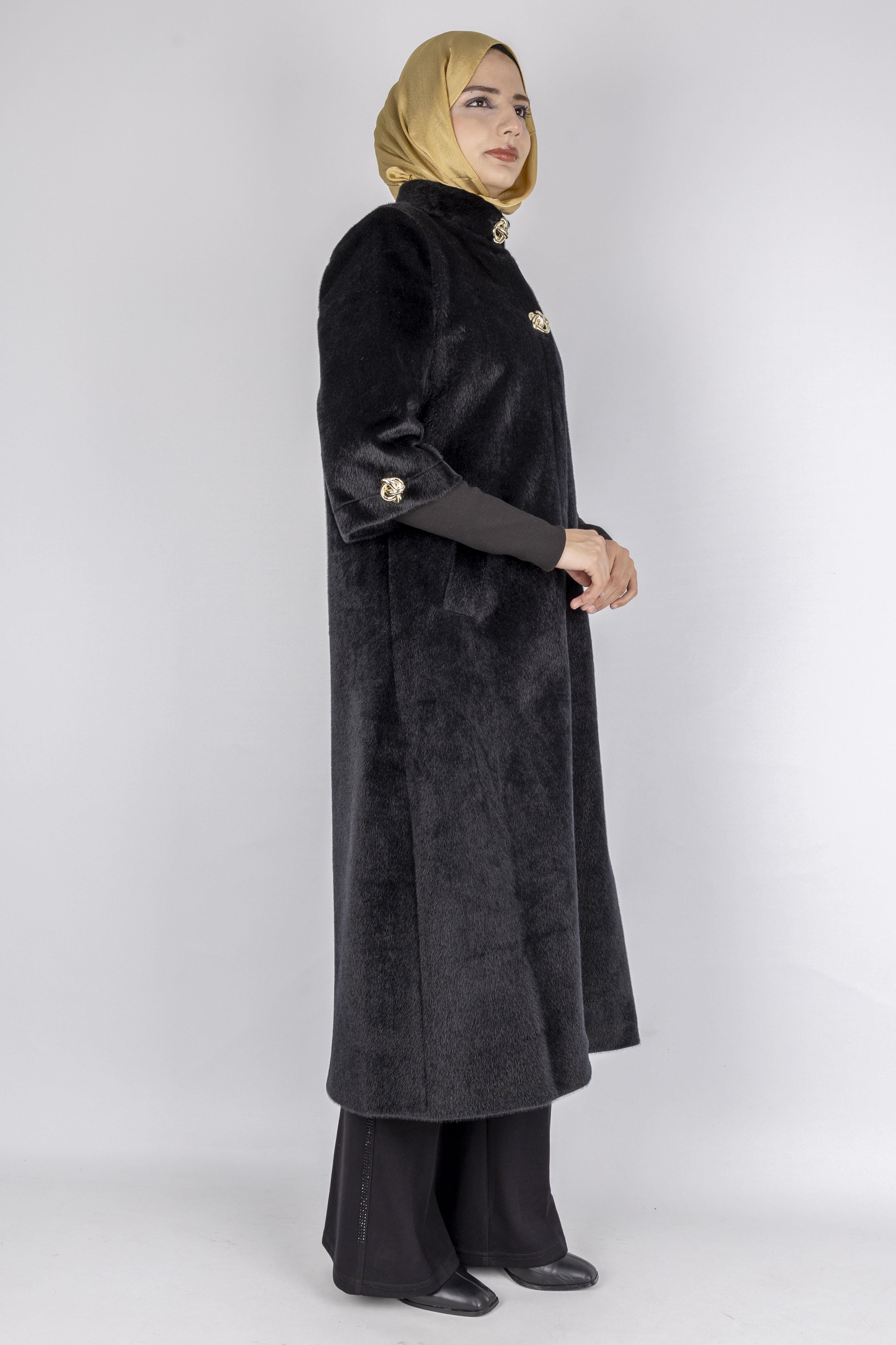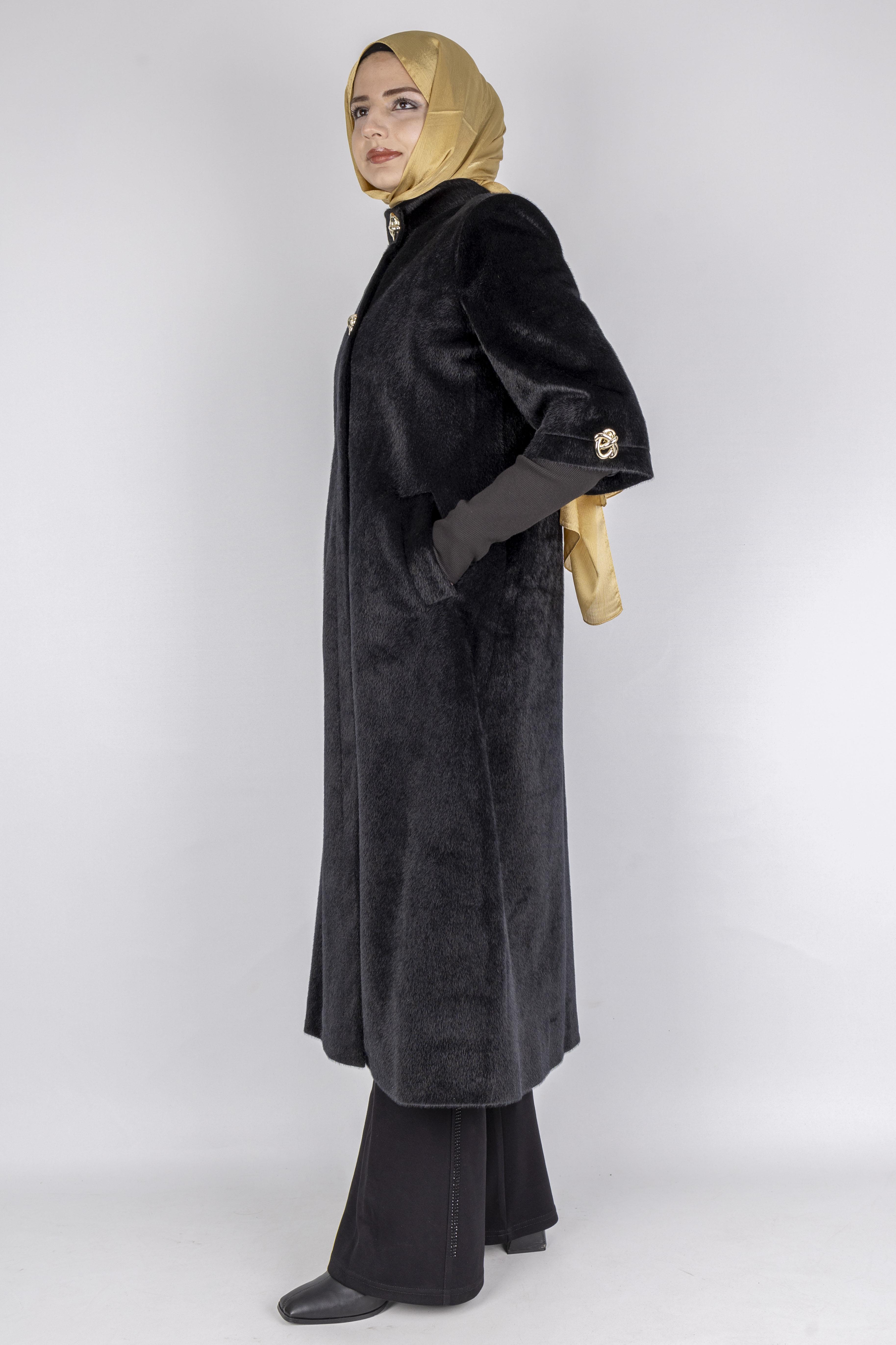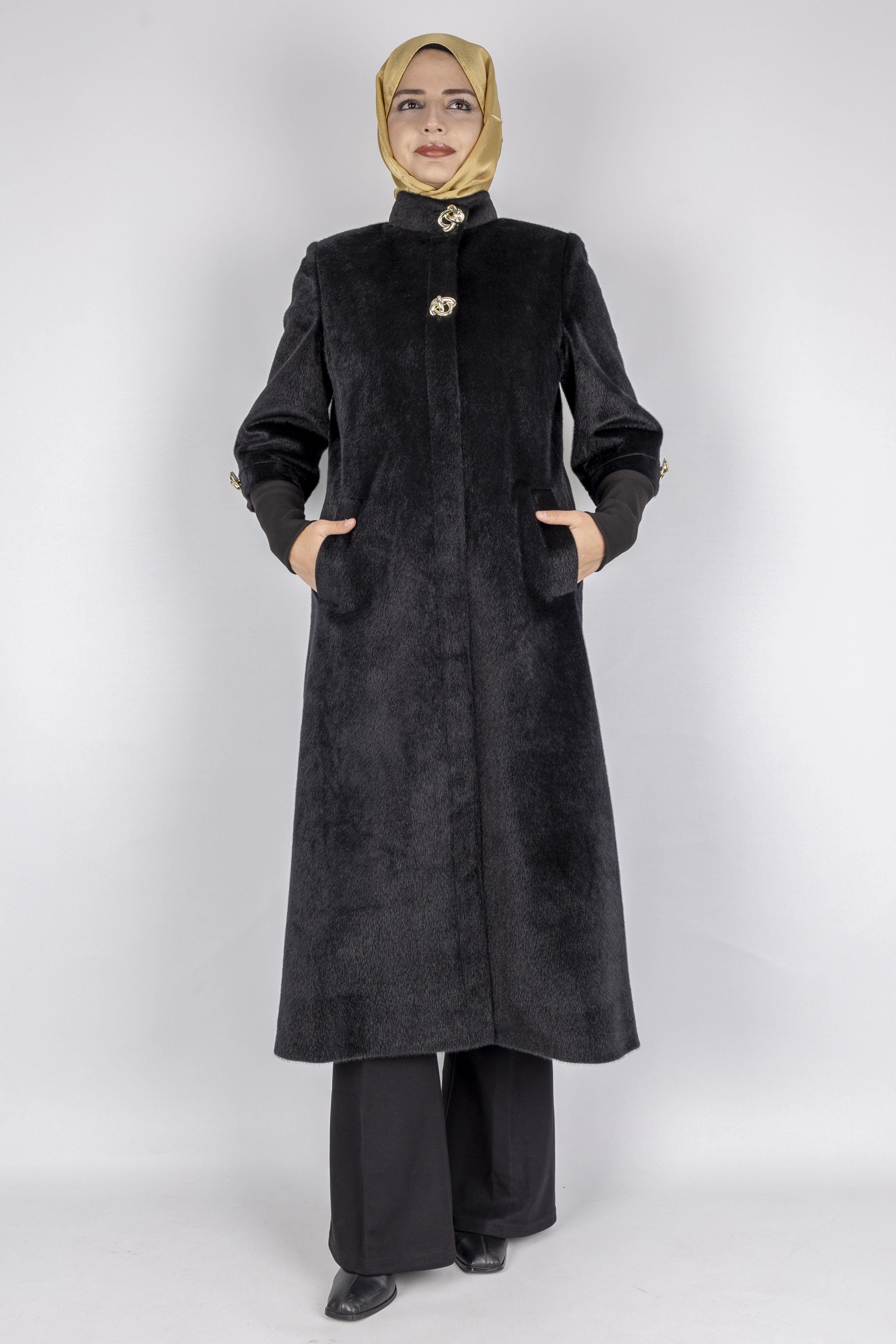 Kışlık Kadın Uzun Tay Tüyü Kaban Siyah OTW36307