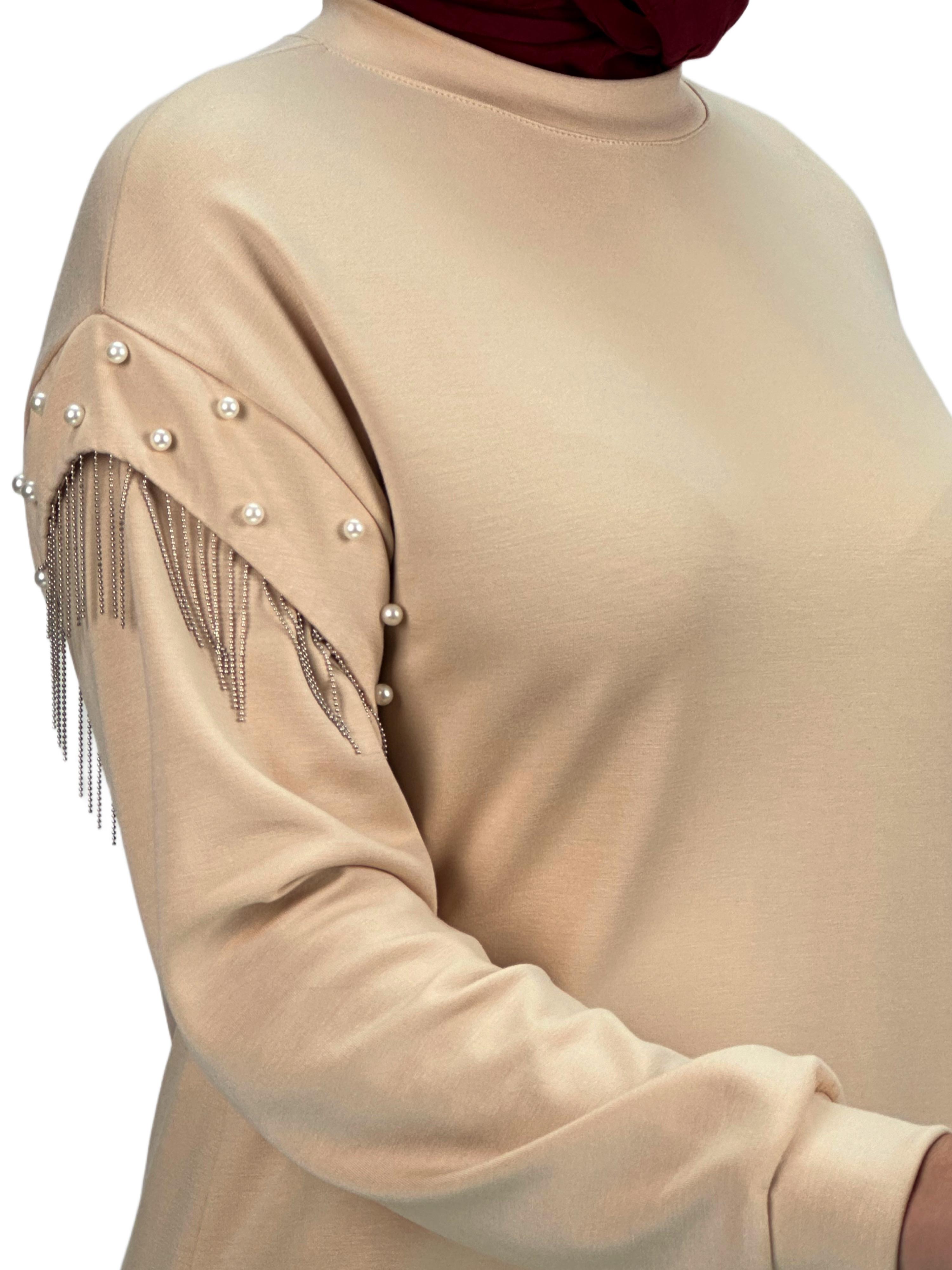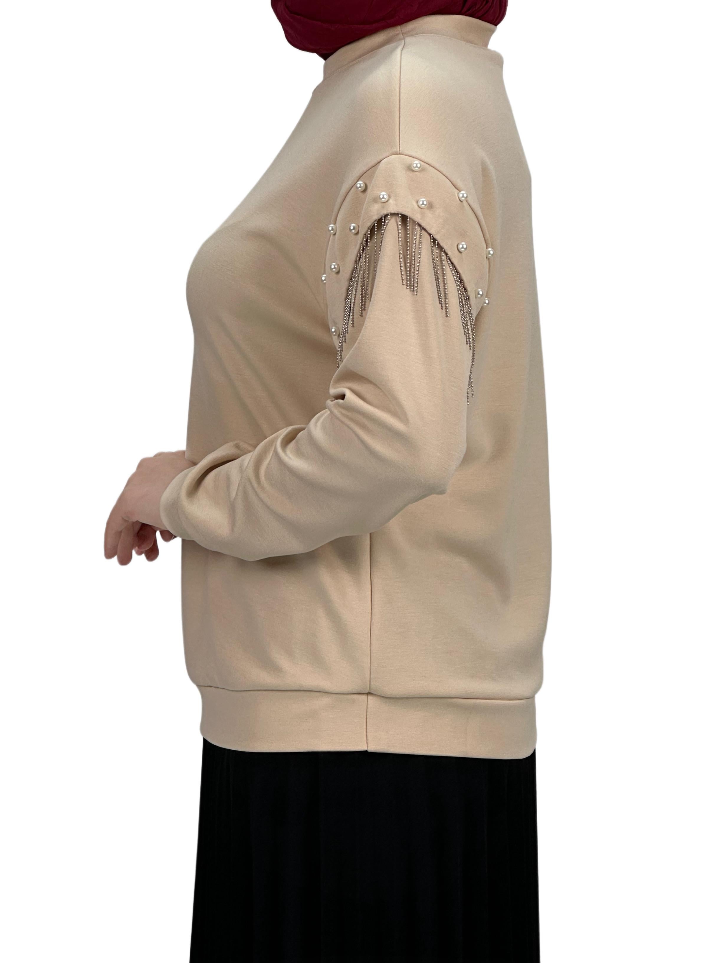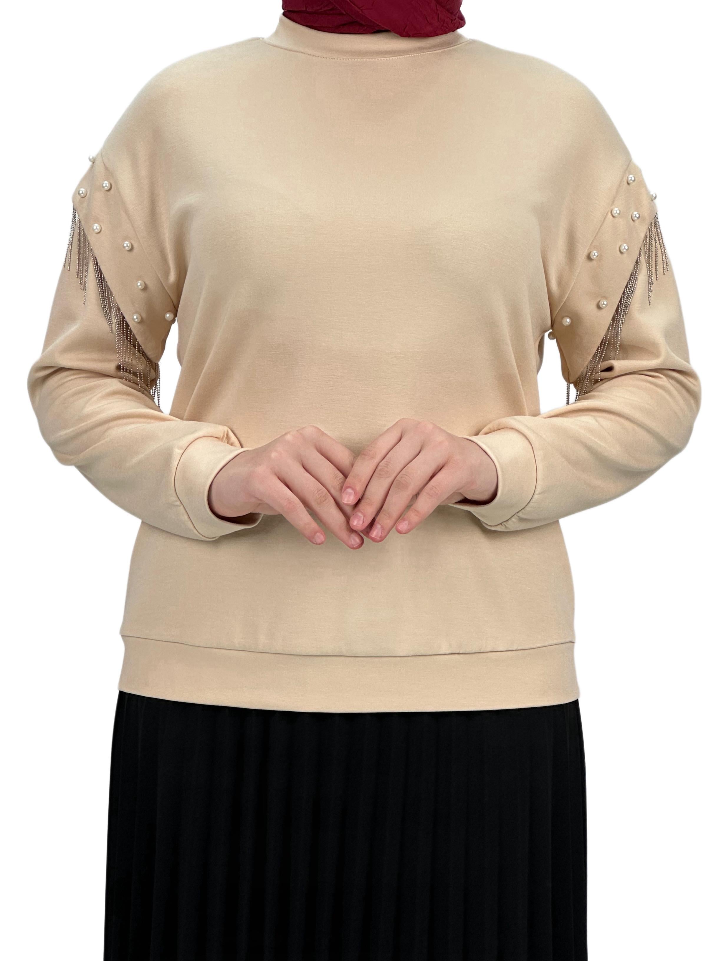 Orhan Store Kolları Boncuklu Bluz Bej OTW1248
