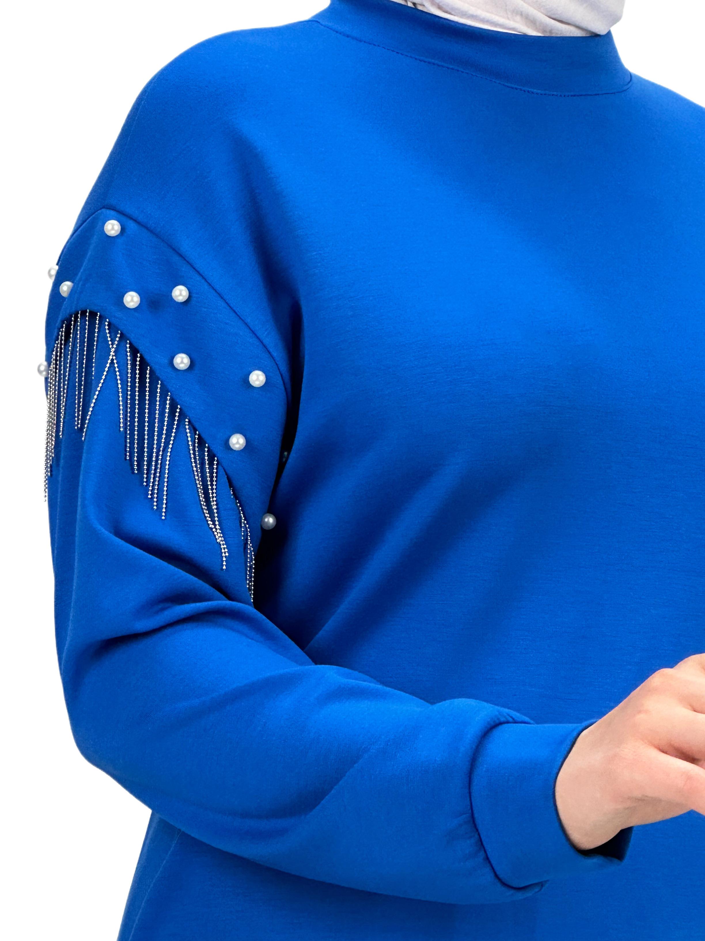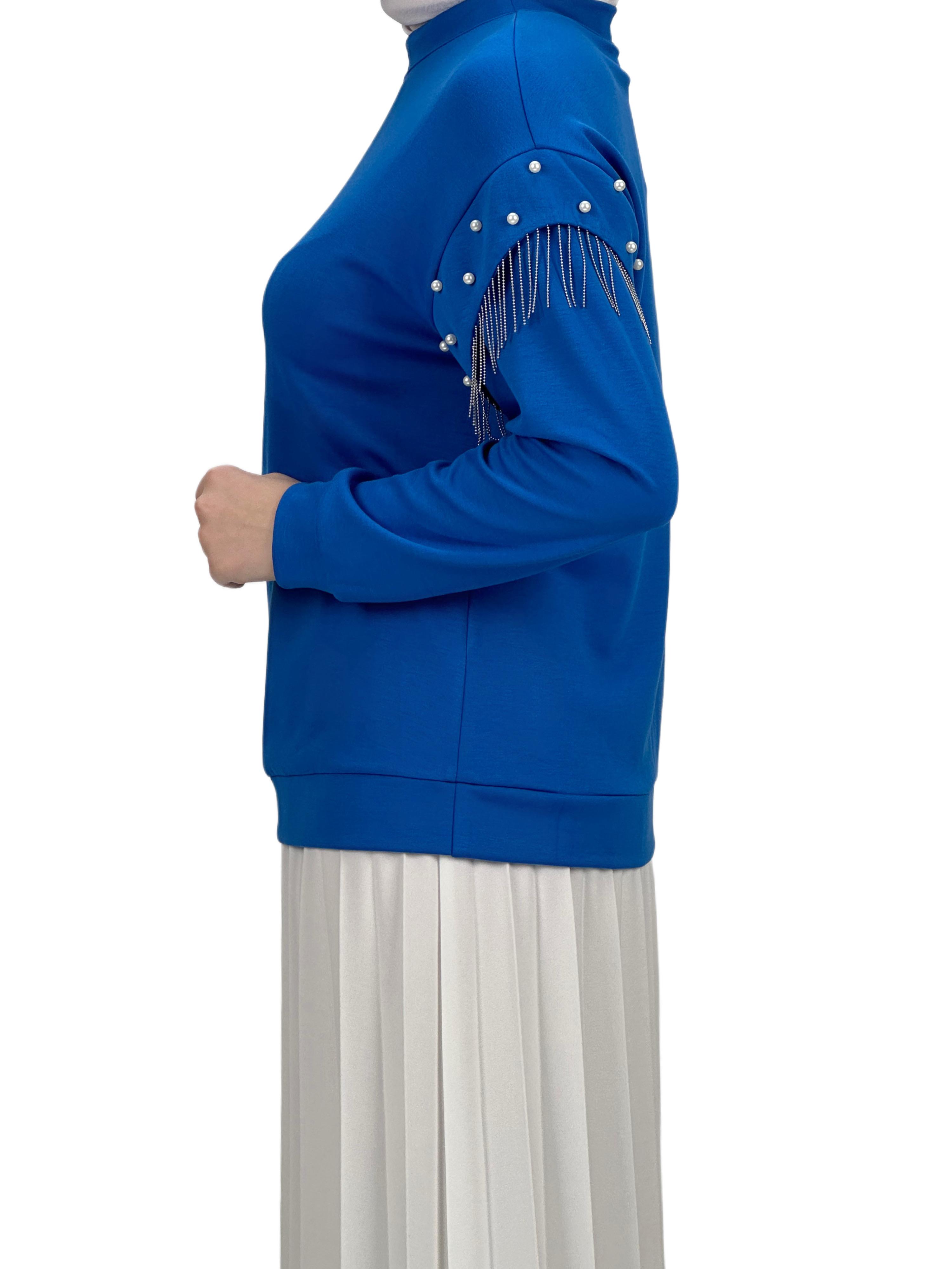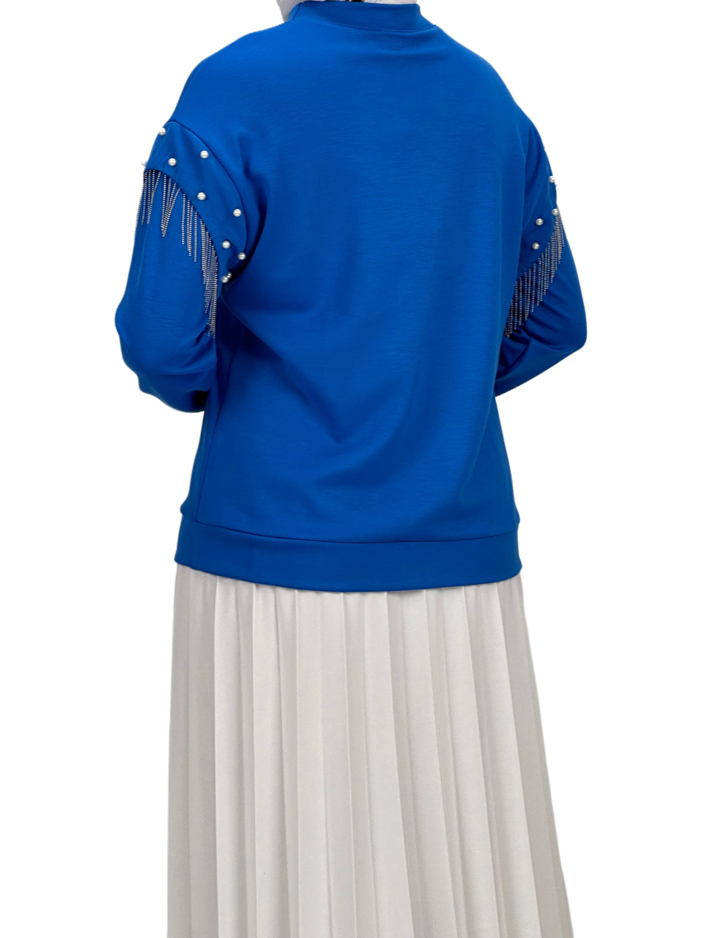 Orhan Store Kolları Boncuklu Bluz Saks OTW1248