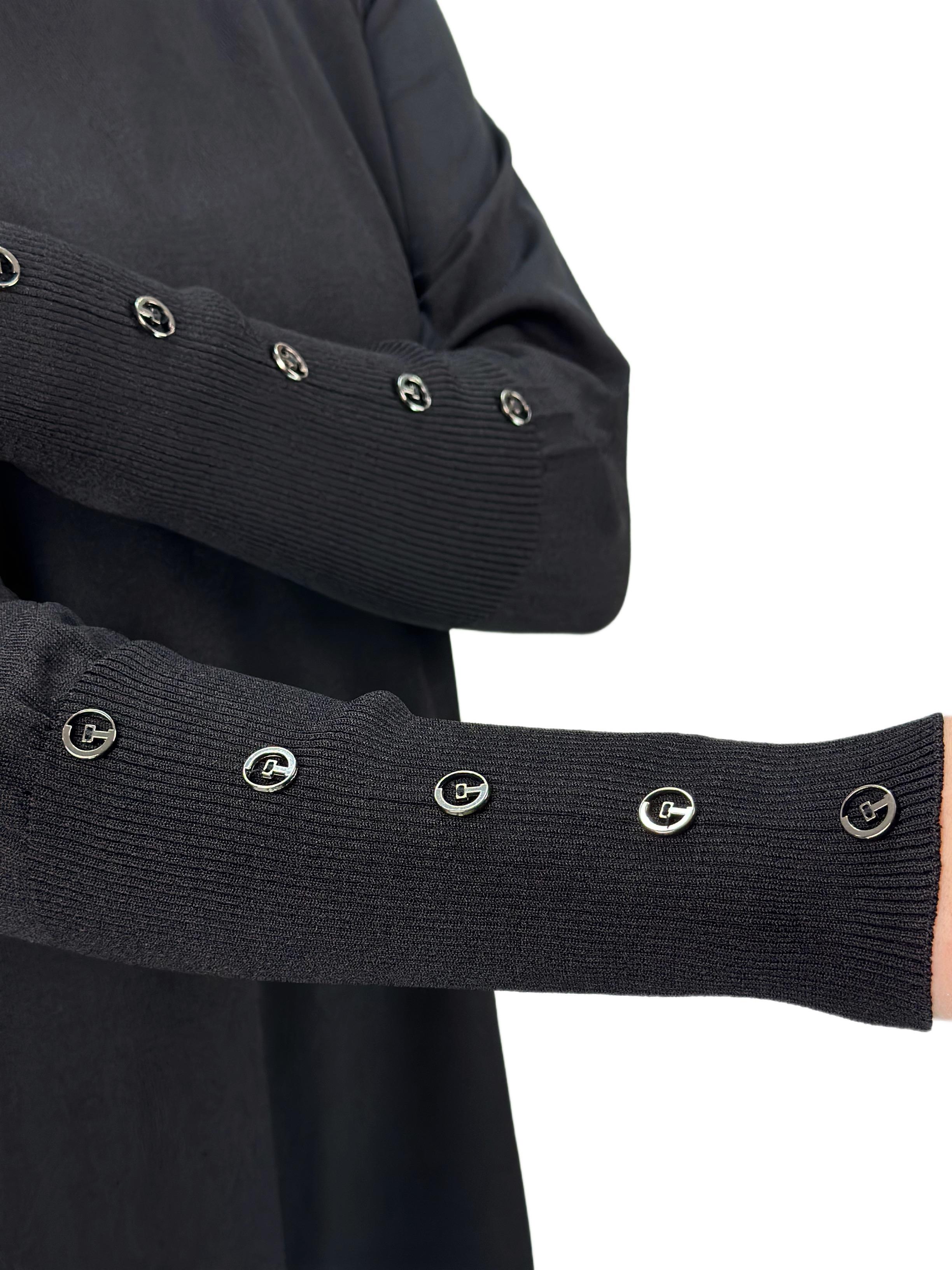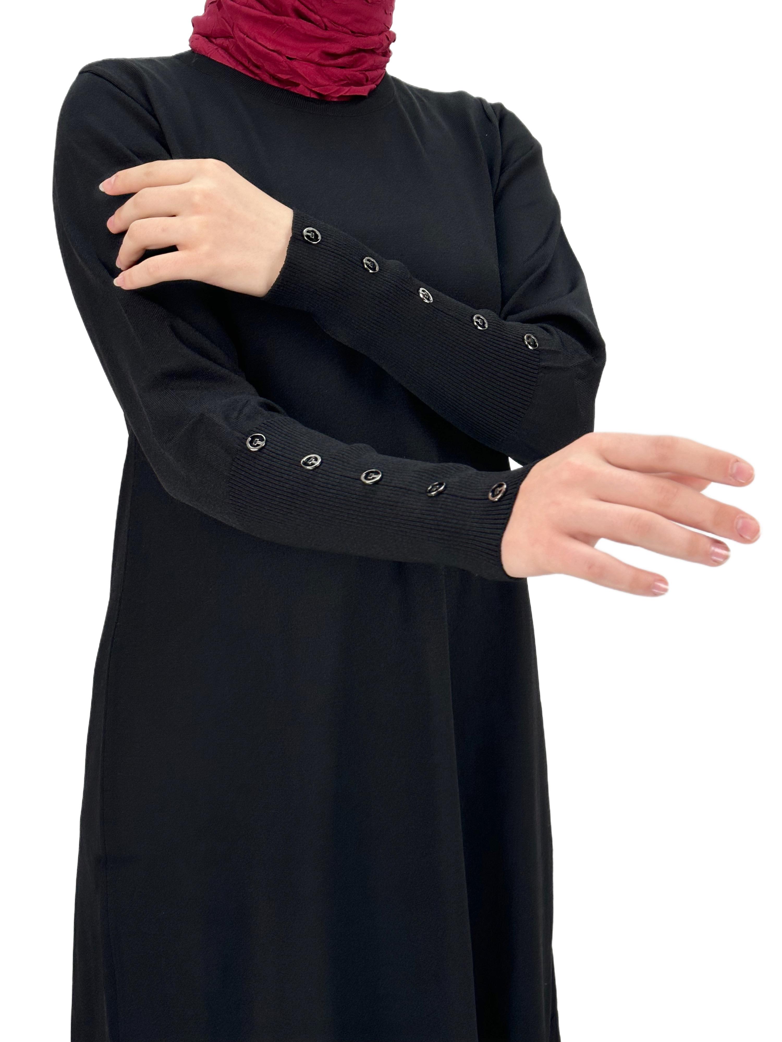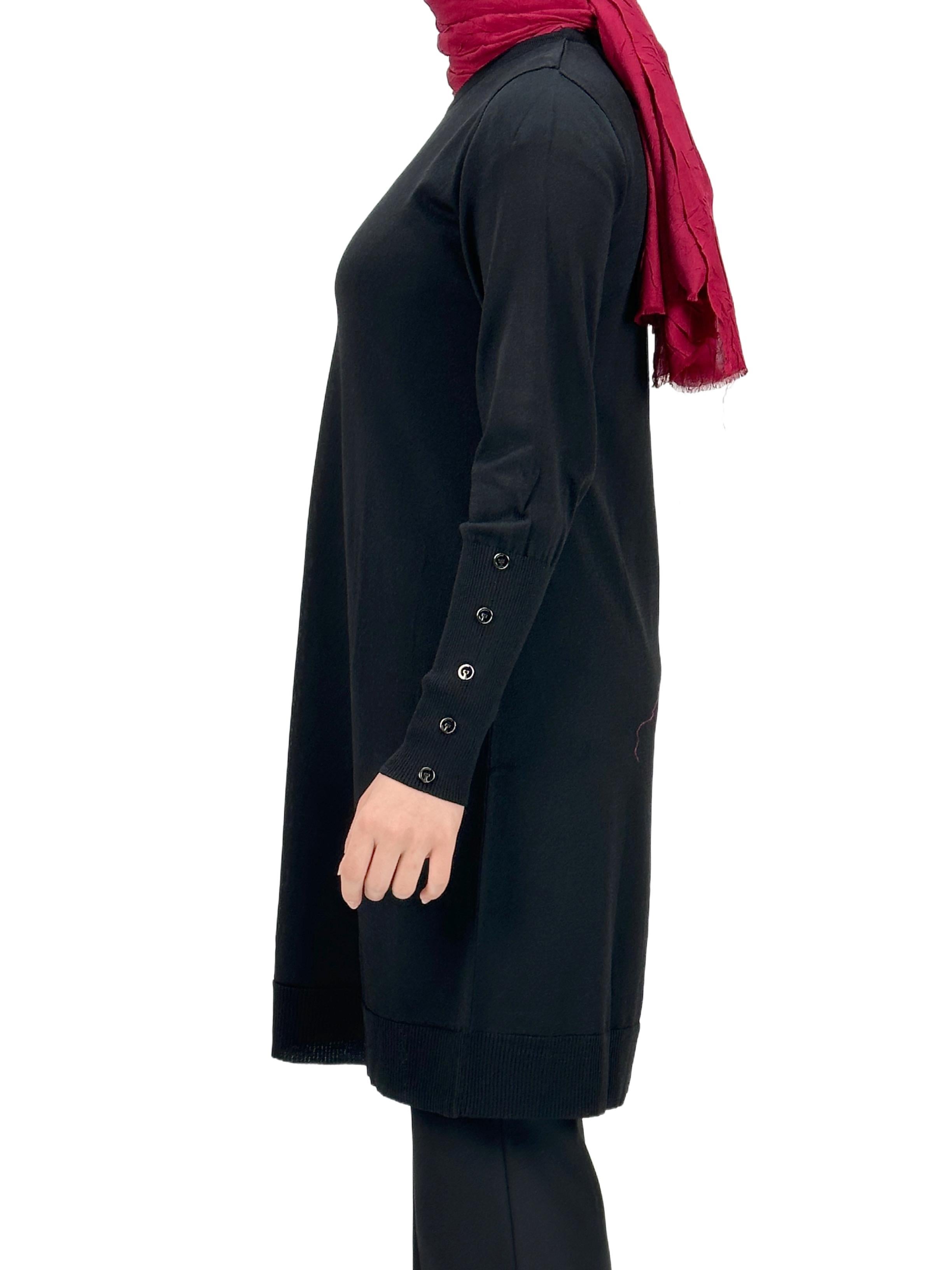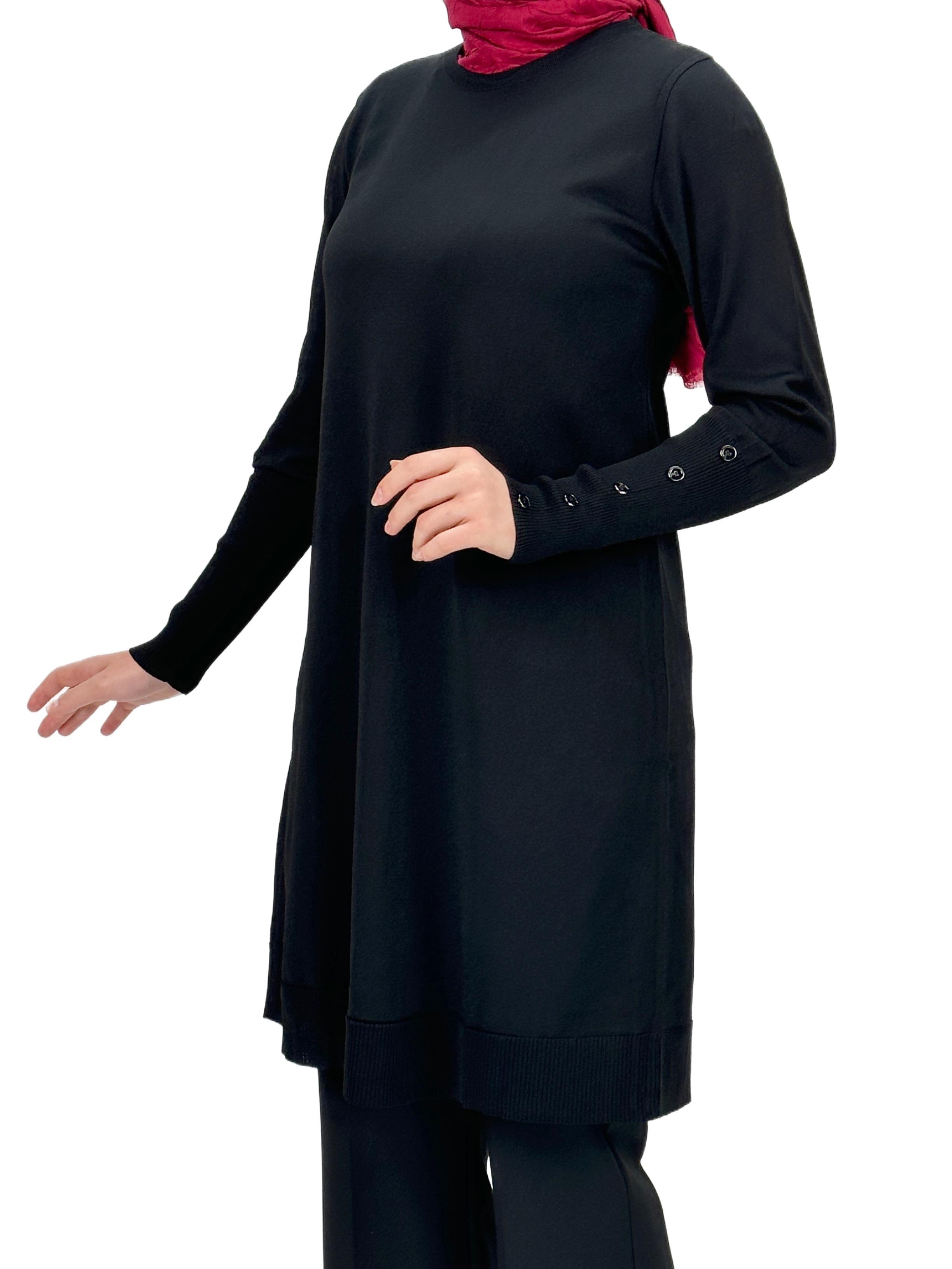 Kolları Düğmeli Merserize Triko Tunik Siyah OTW2769,2