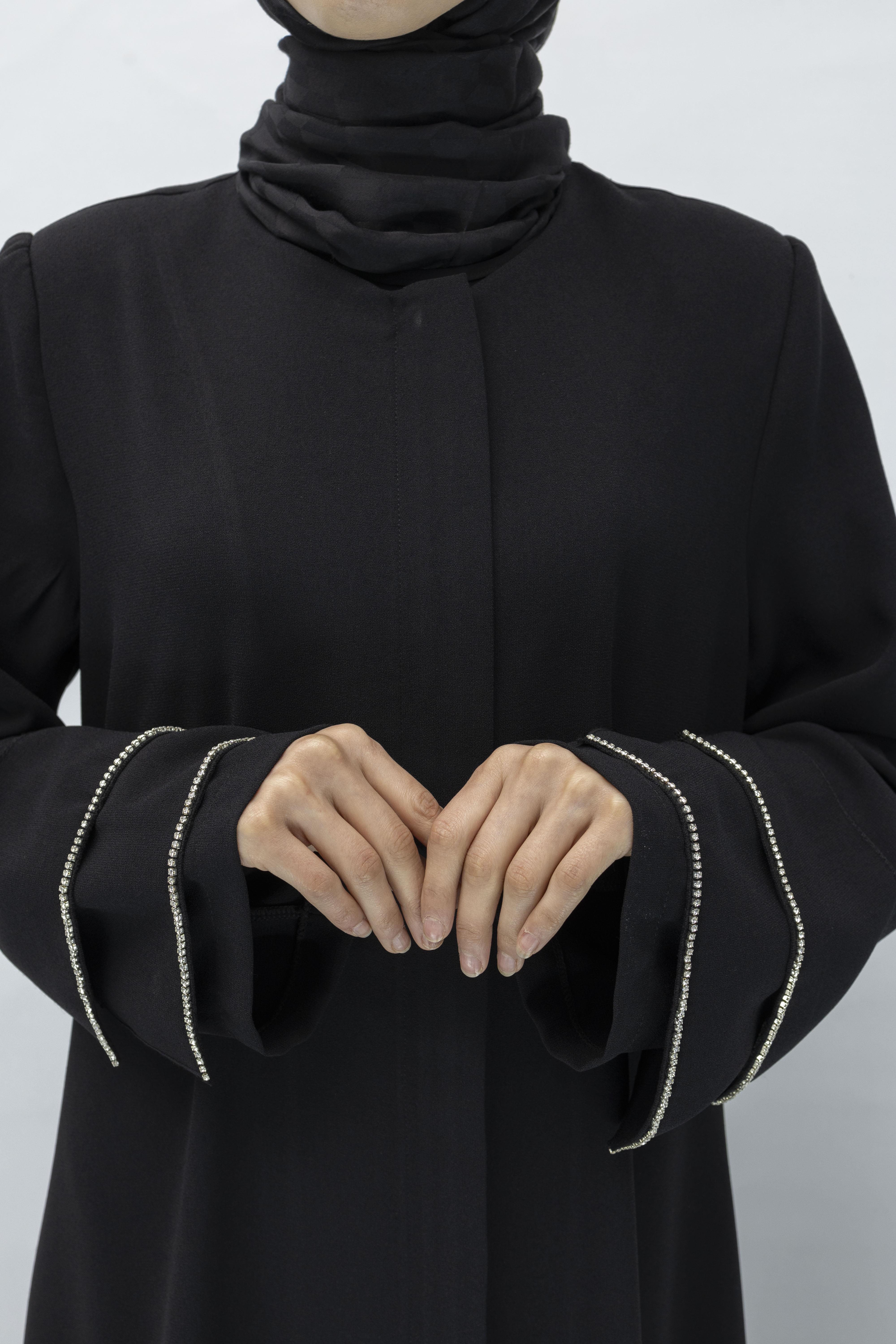 Taş Detaylı Krep Kumaş Ferace Siyah OTW36223