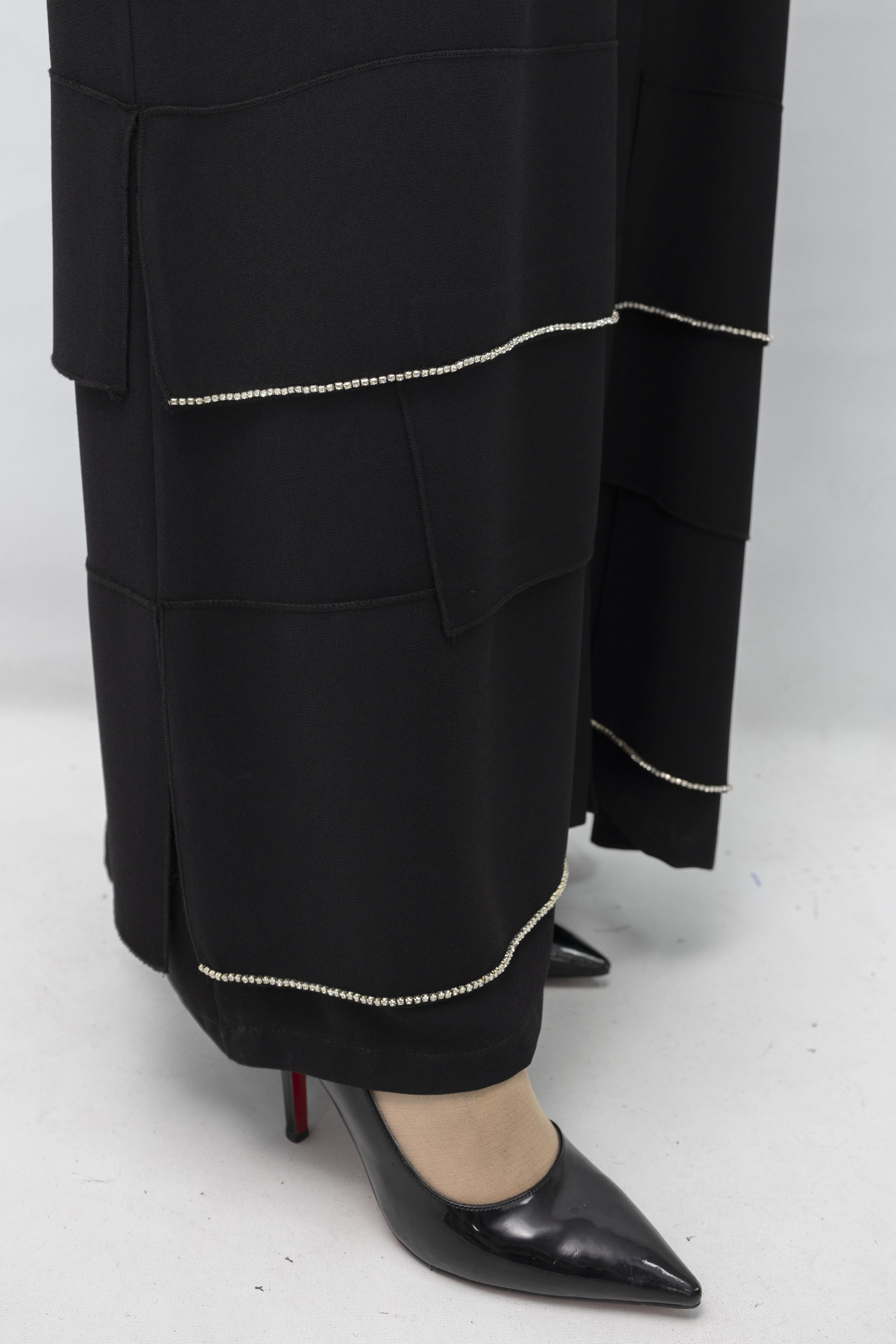 Taş Detaylı Krep Kumaş Ferace Gri OTW36223 Taş Detaylı Krep Kumaş Ferace Lacivert OTW36223 Taş Detaylı Krep Kumaş Ferace Siyah OTW36223