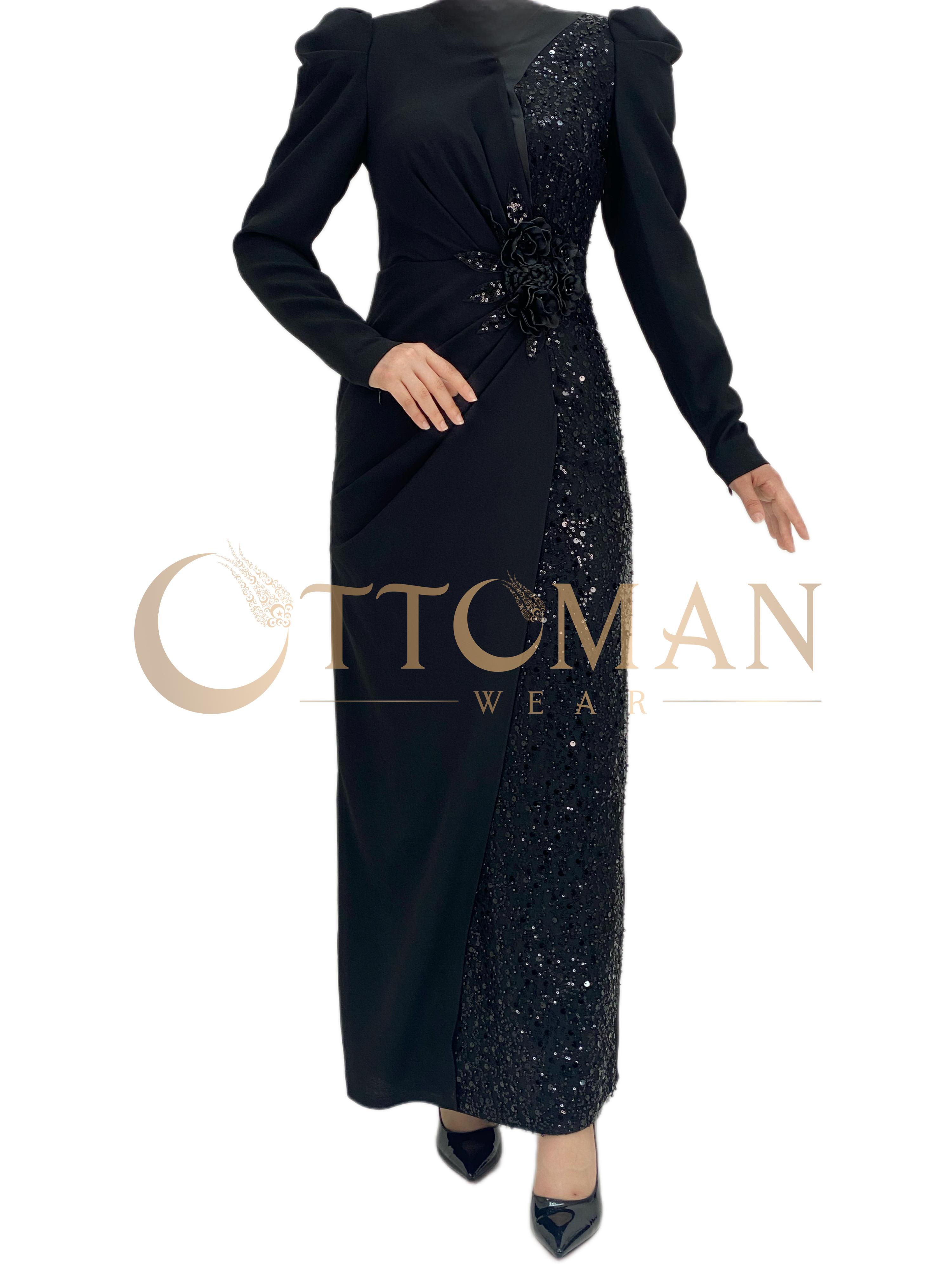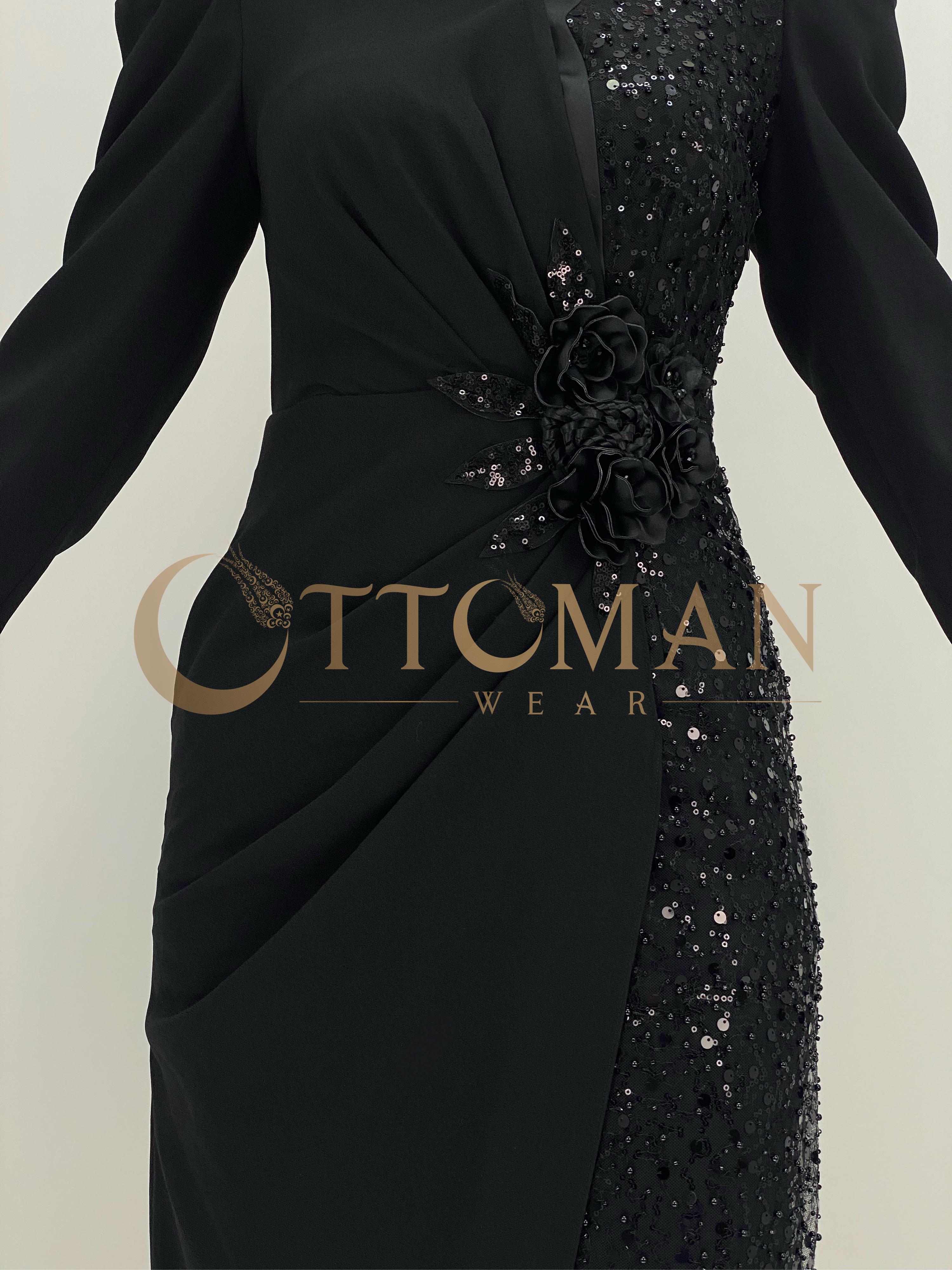 Kumaş Türü: Pul Payet Detaylı Krep Kumaş Abiye Elbise