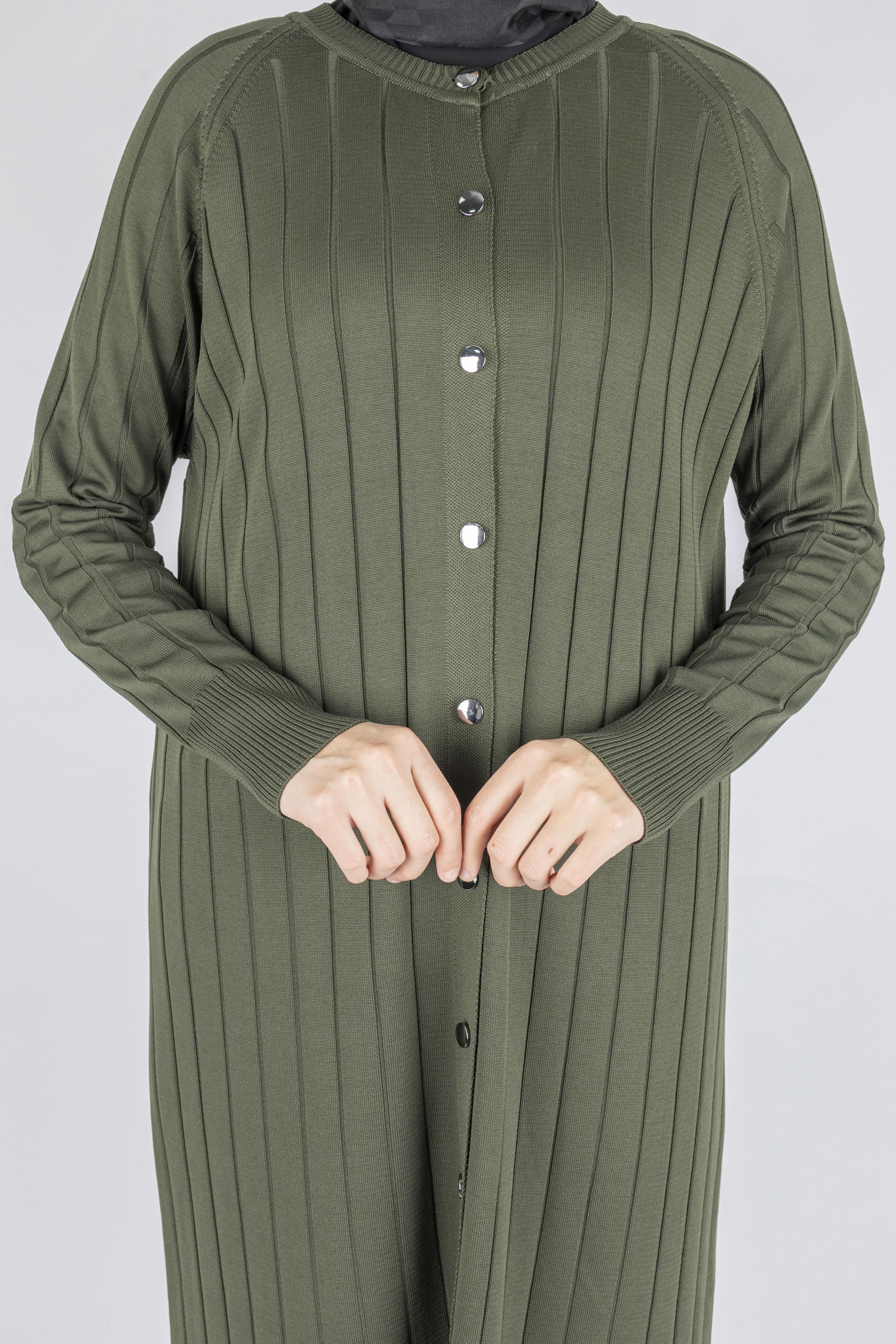 Merserize Fitilli Uzun Hırka Haki OTW1036