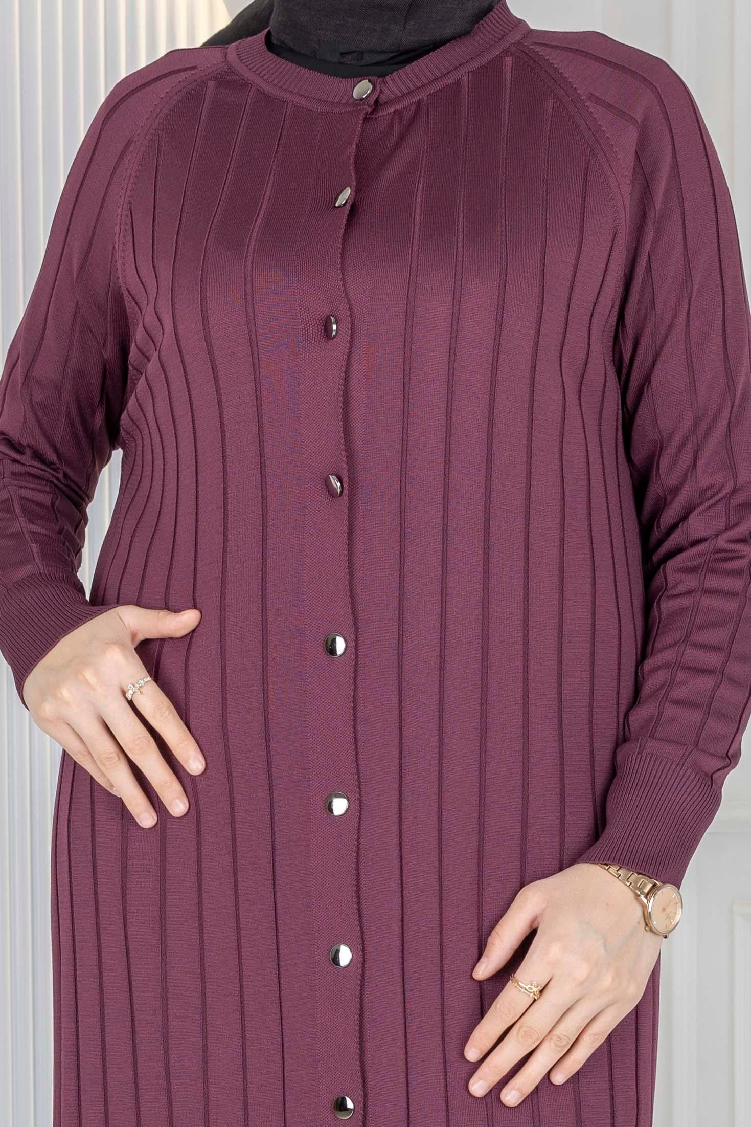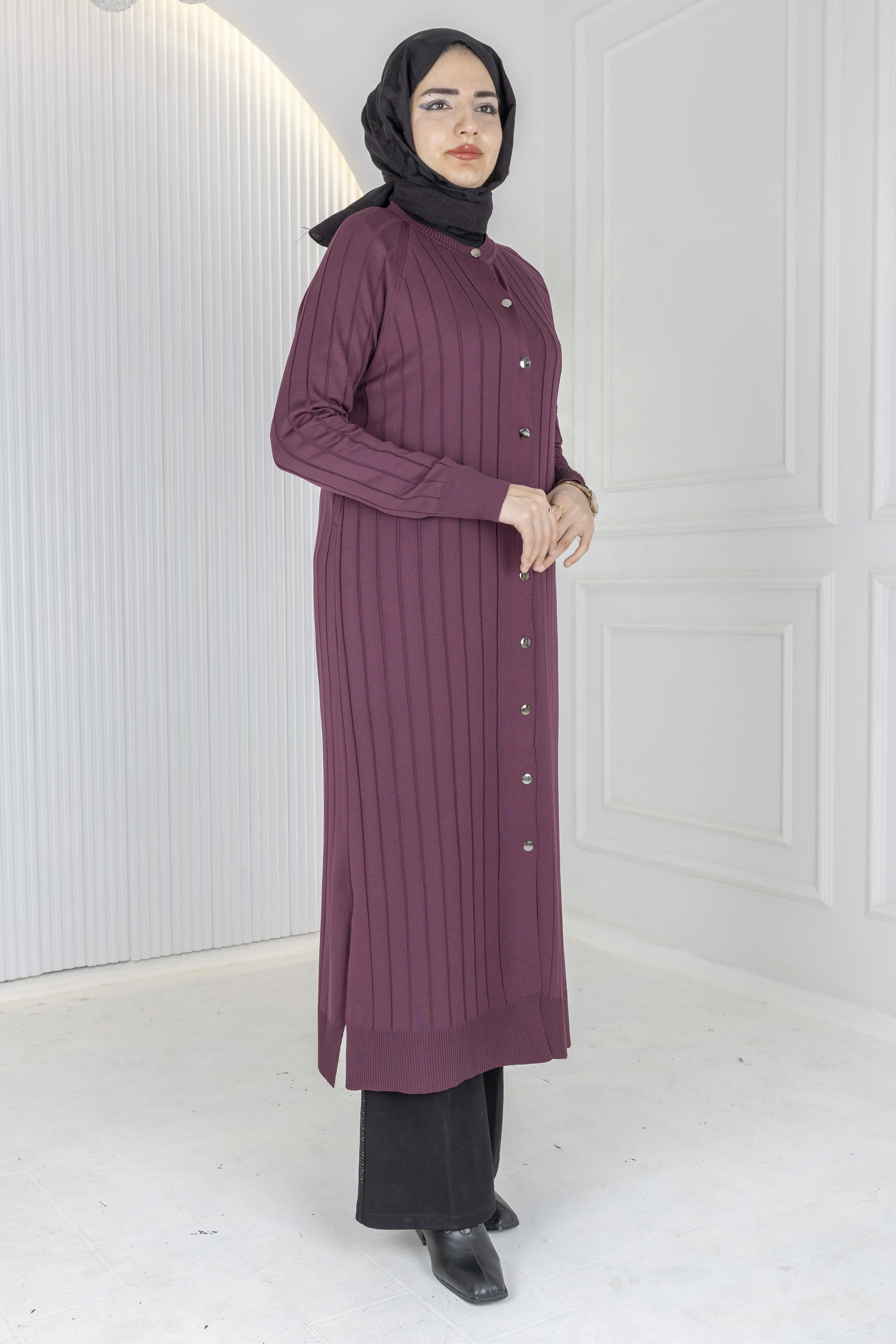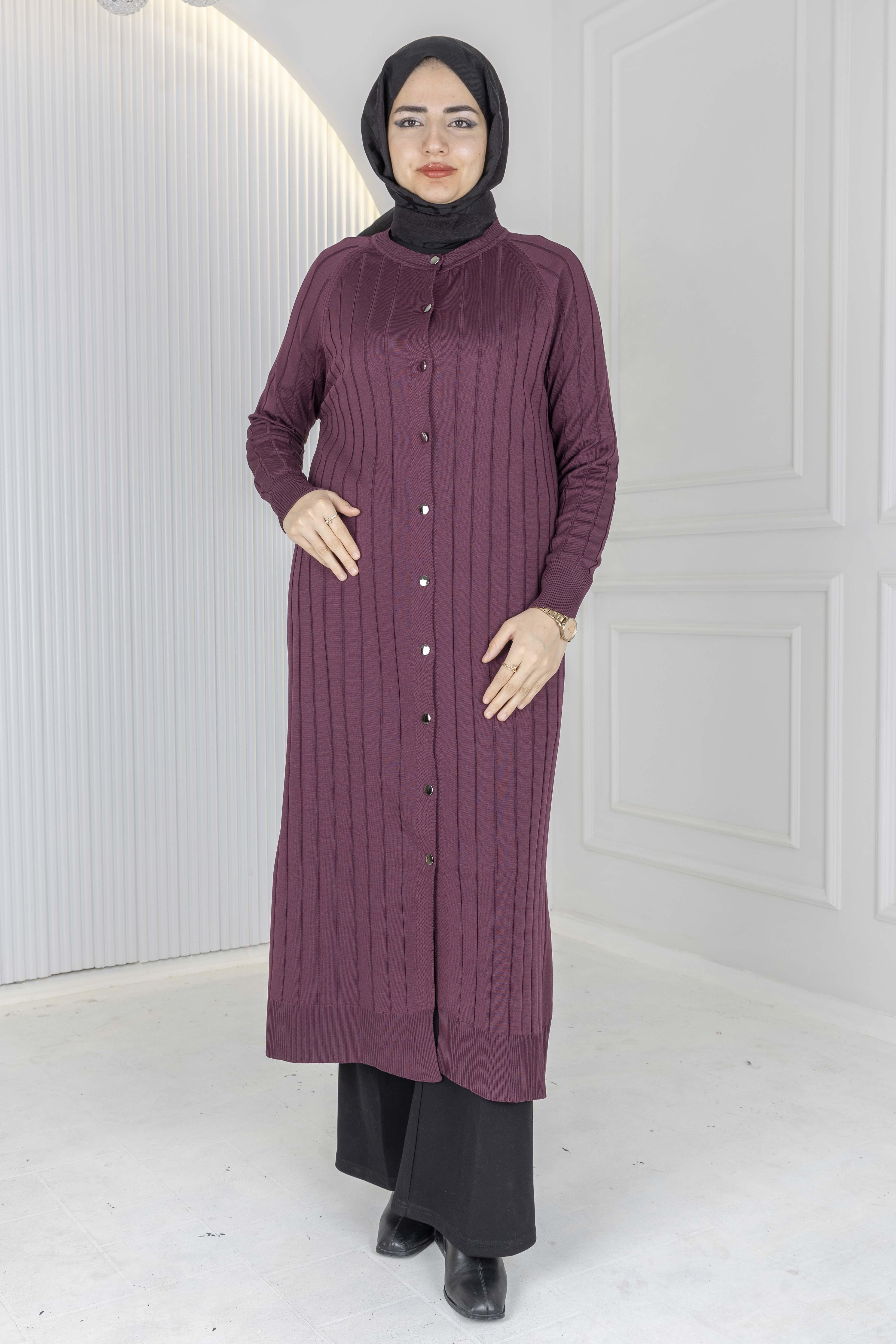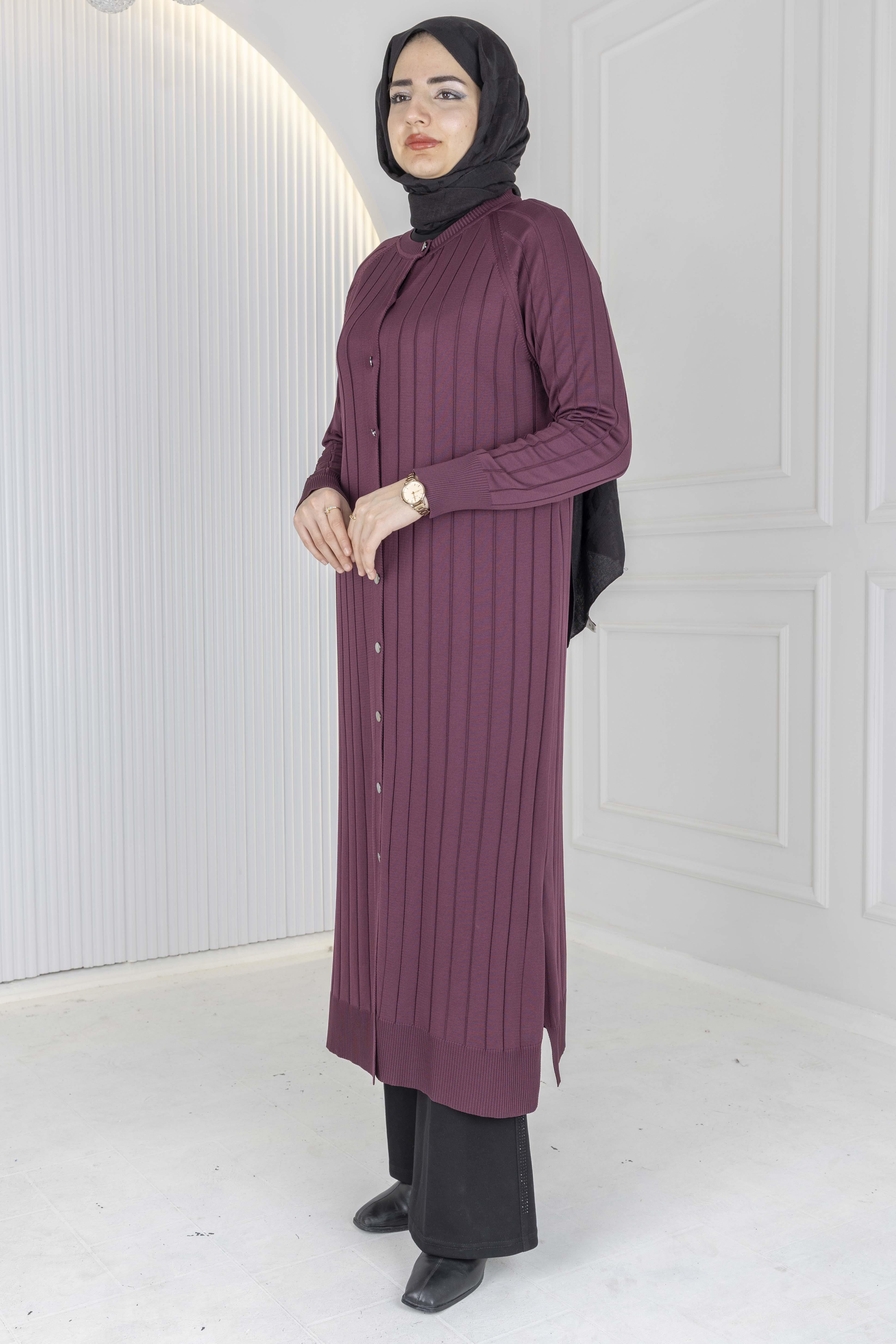 Merserize Fitilli Uzun Hırka Mürdüm OTW1036