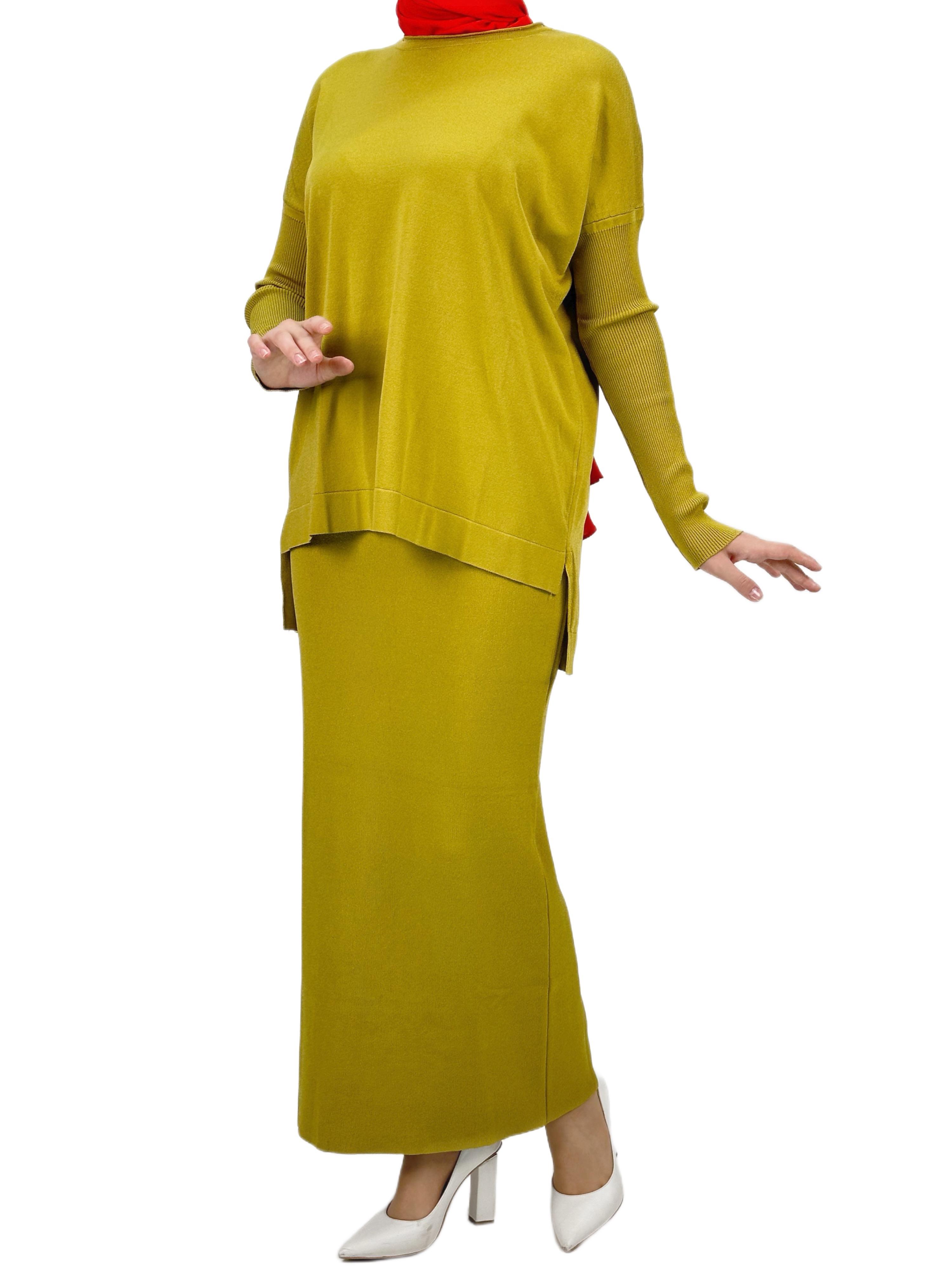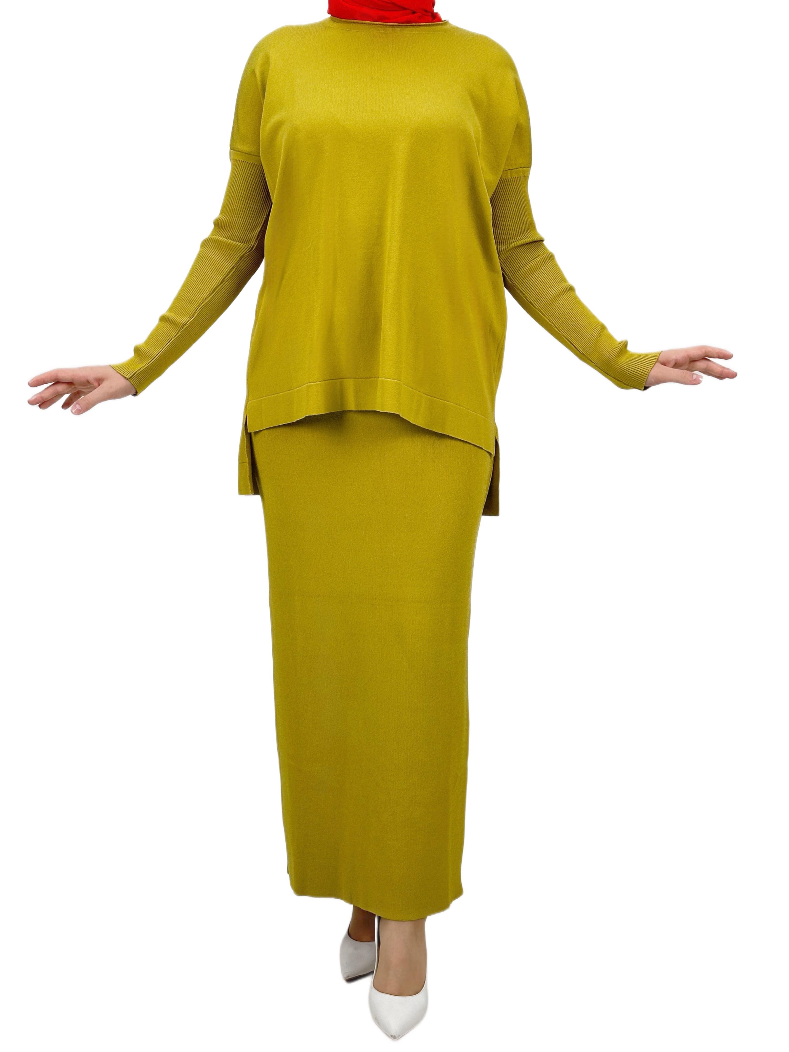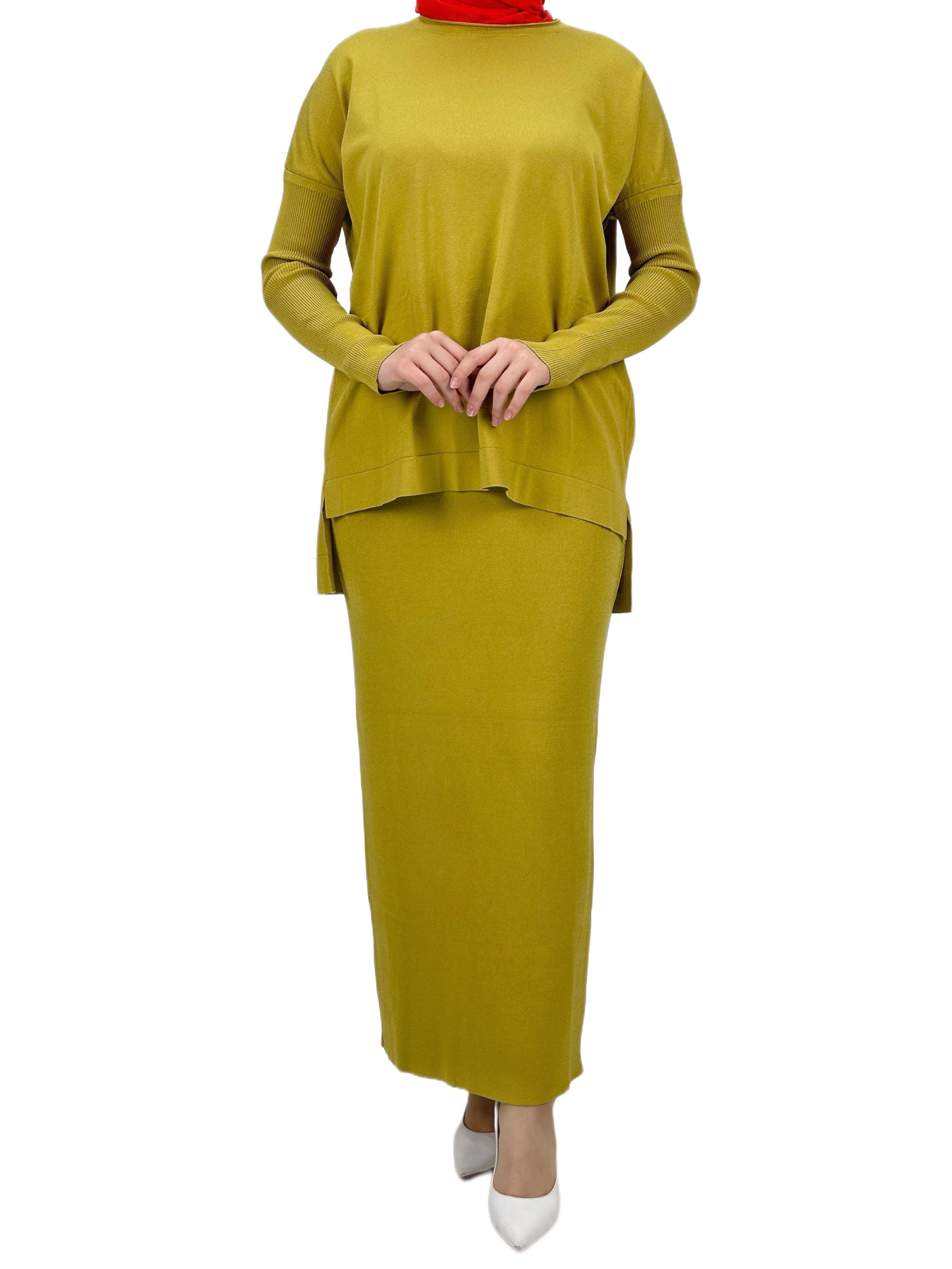Merserize Triko Etekli Takım Camel OTW0224 Merserize Triko Etekli Takım Saks OTW0224 Merserize Triko Etekli Takım Hardal OTW0224