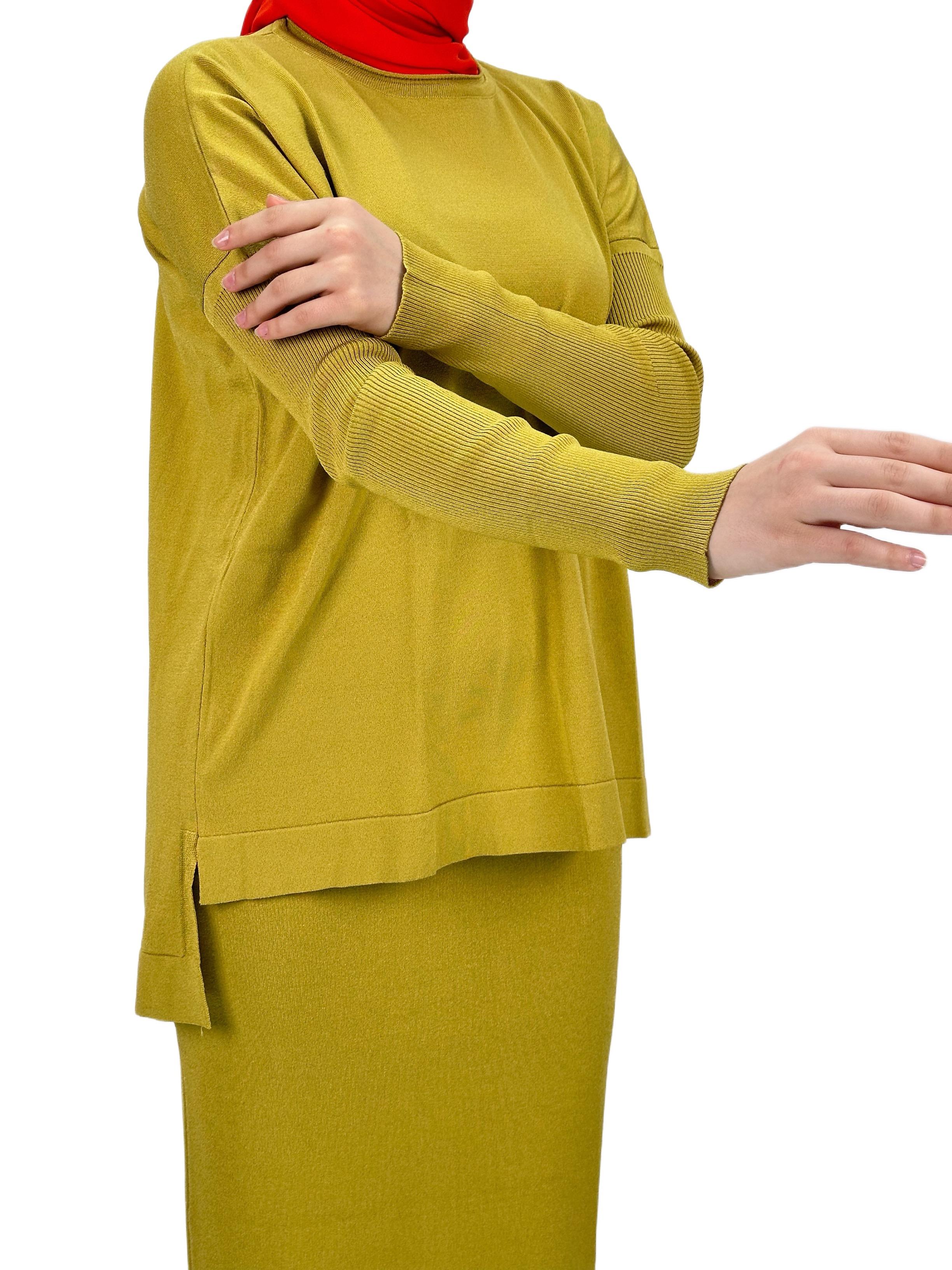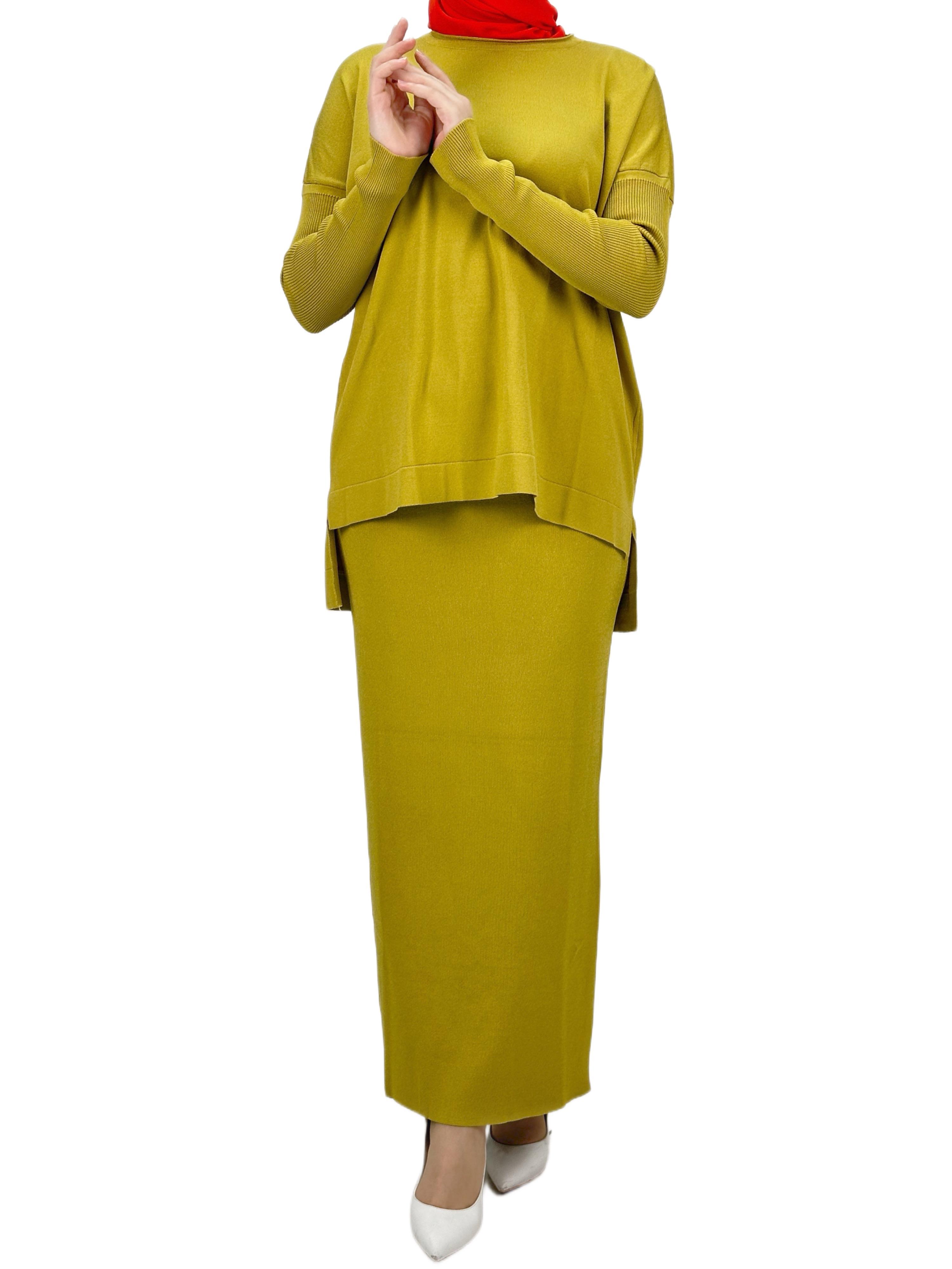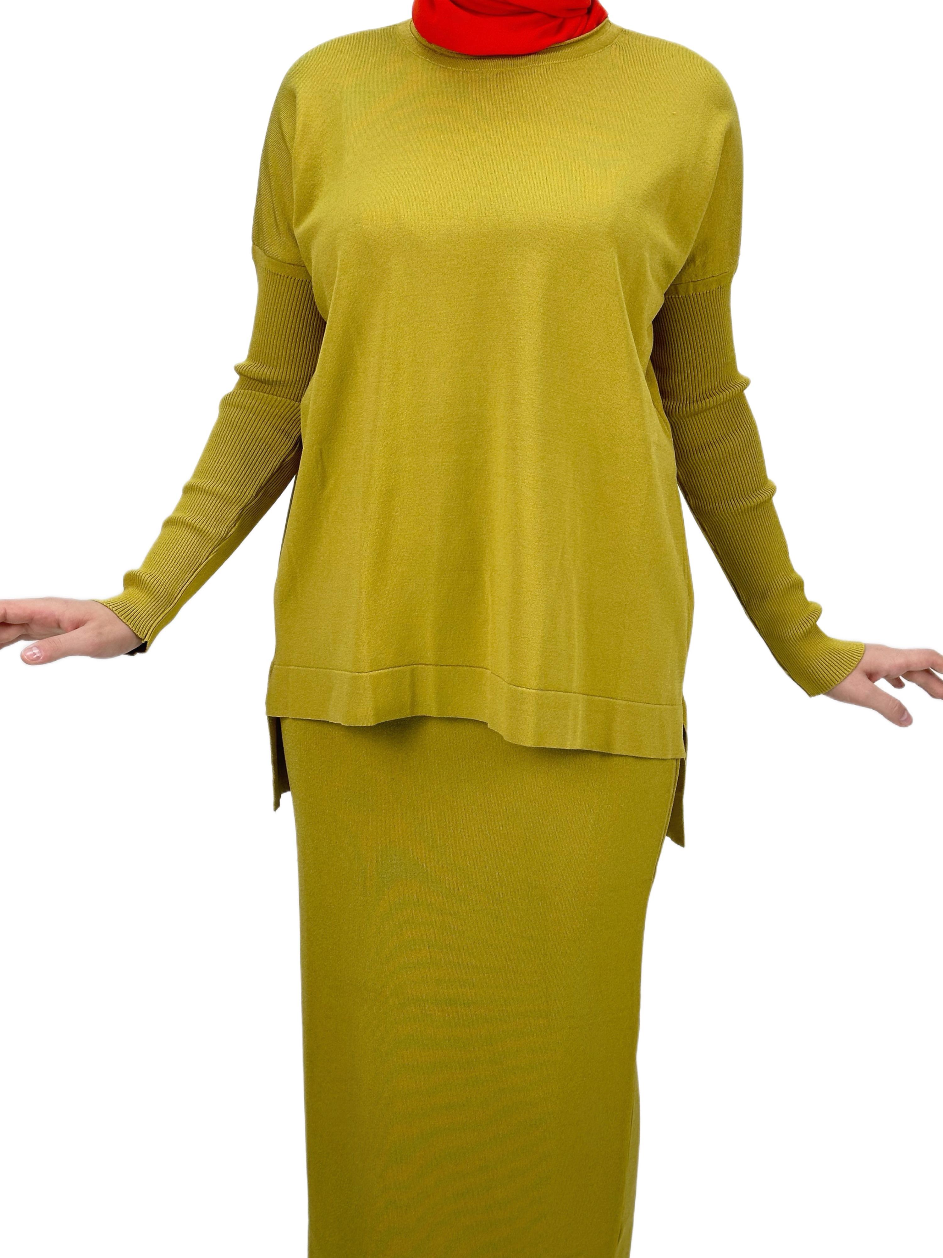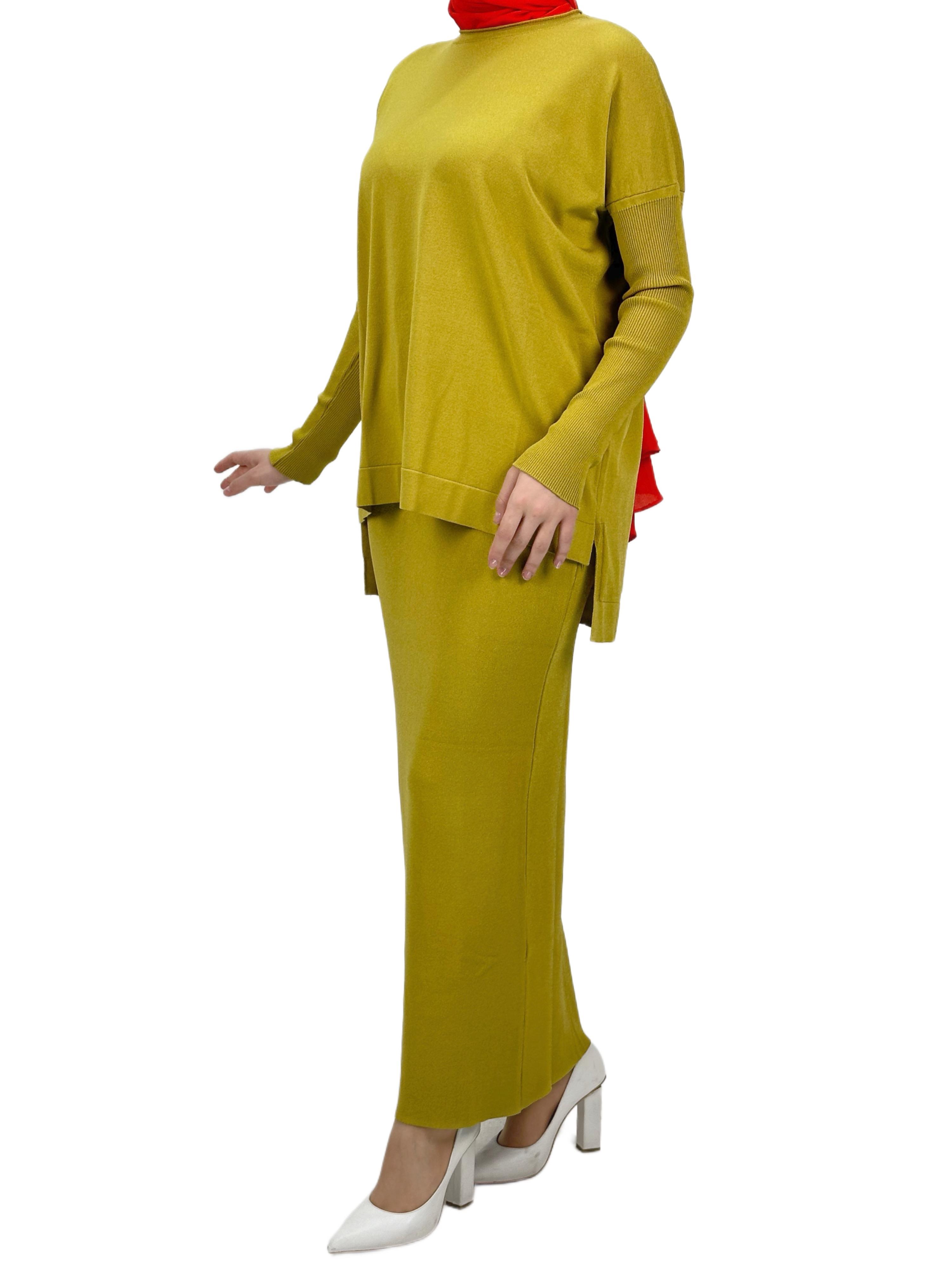 Merserize Triko Etekli Takım Camel OTW0224 Merserize Triko Etekli Takım Saks OTW0224 Merserize Triko Etekli Takım Hardal OTW0224