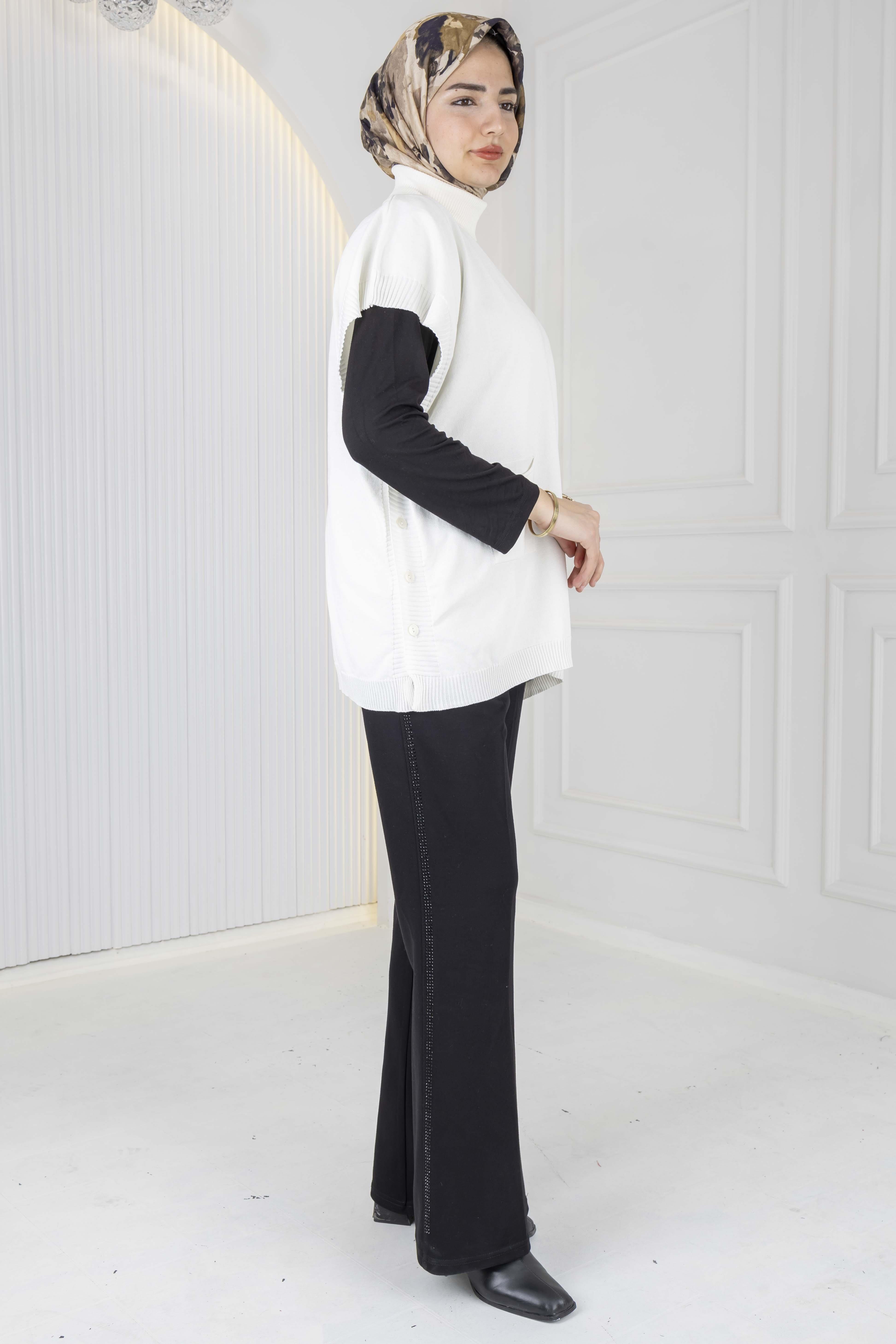 Merserize Triko Kolsuz Tunik Ekru OTW127