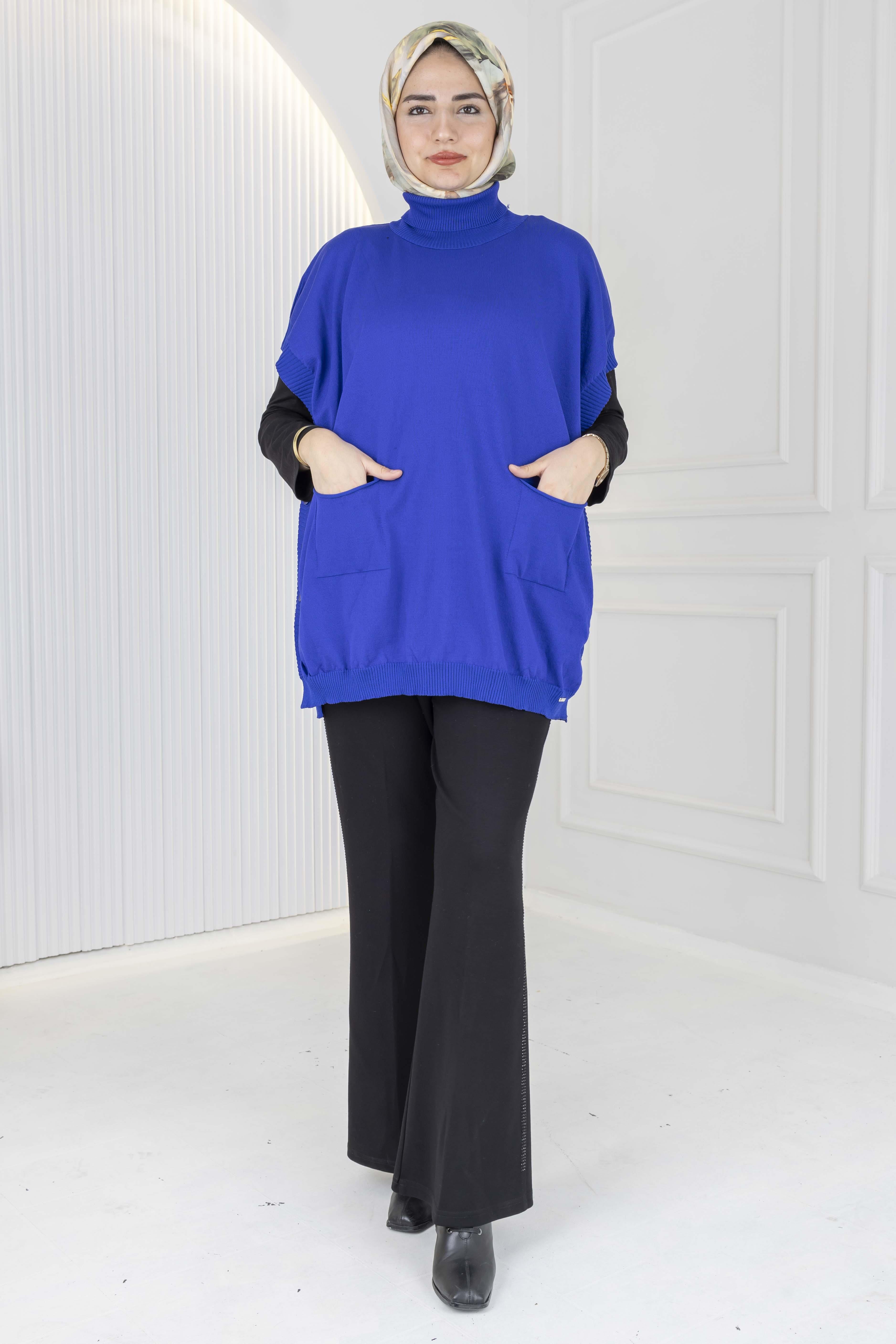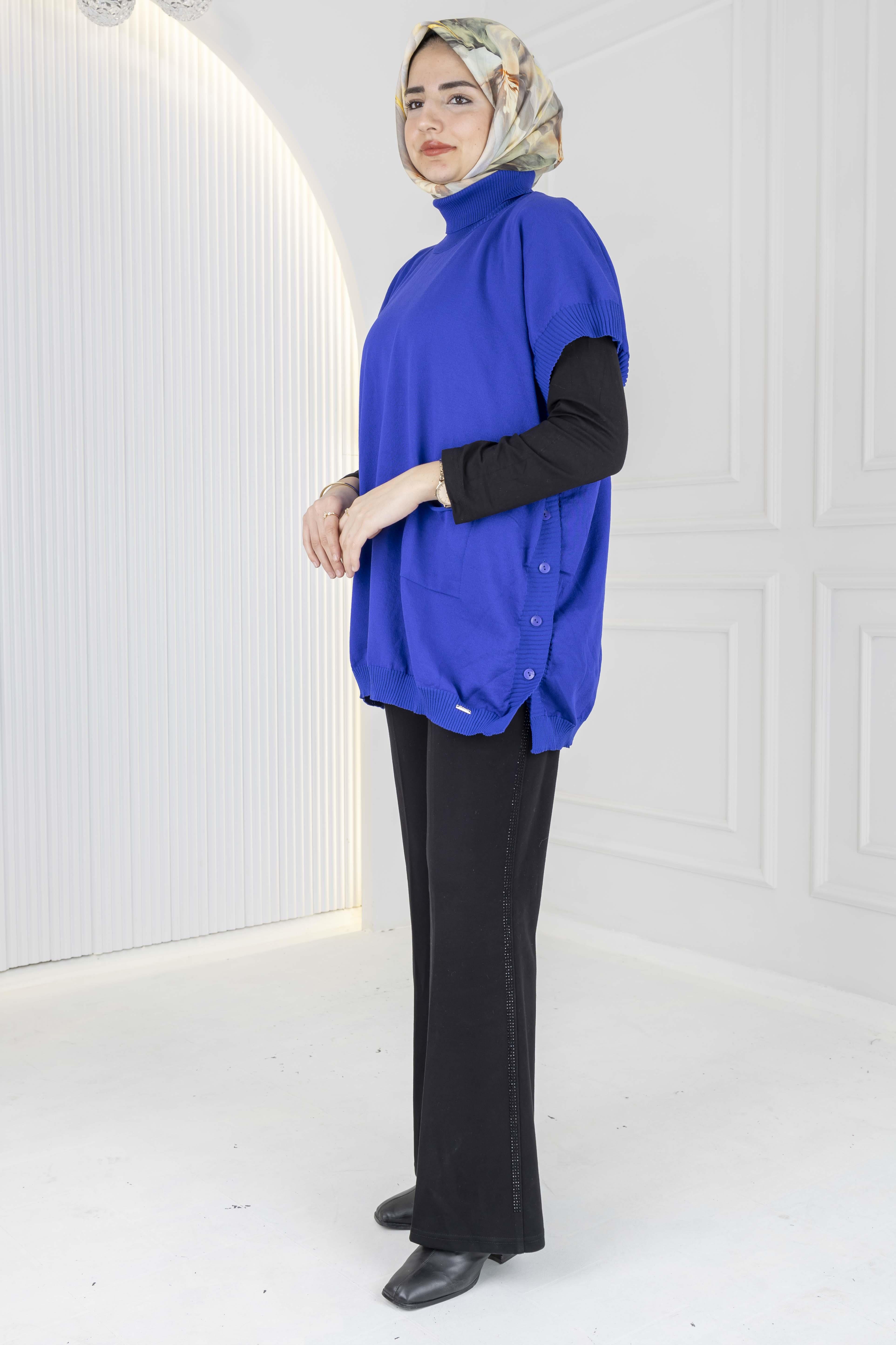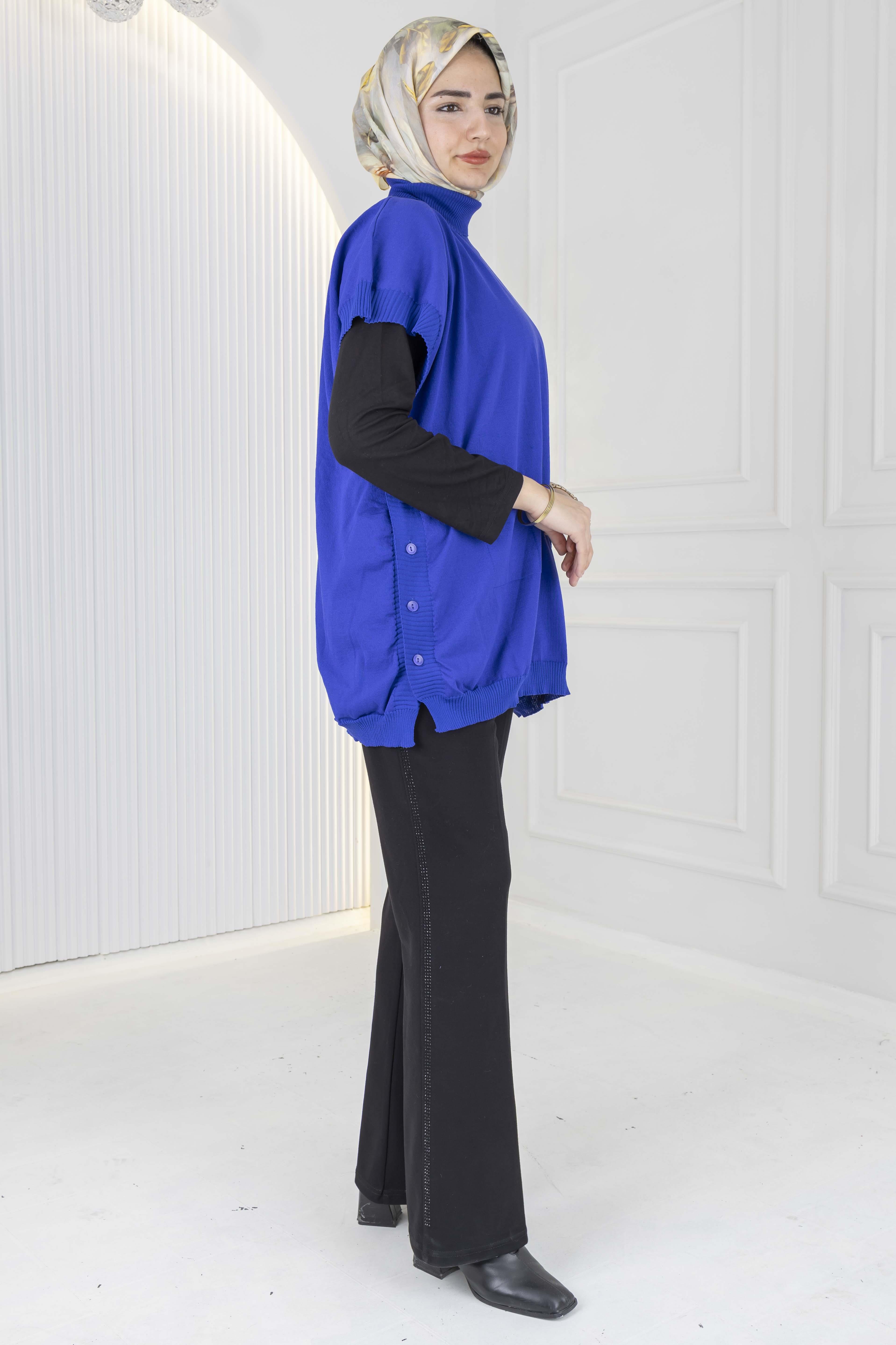 Merserize Triko Kolsuz Tunik Saks OTW127
