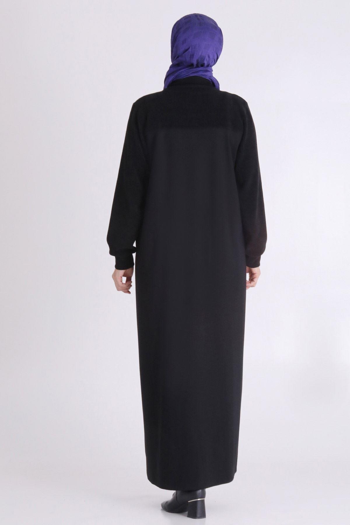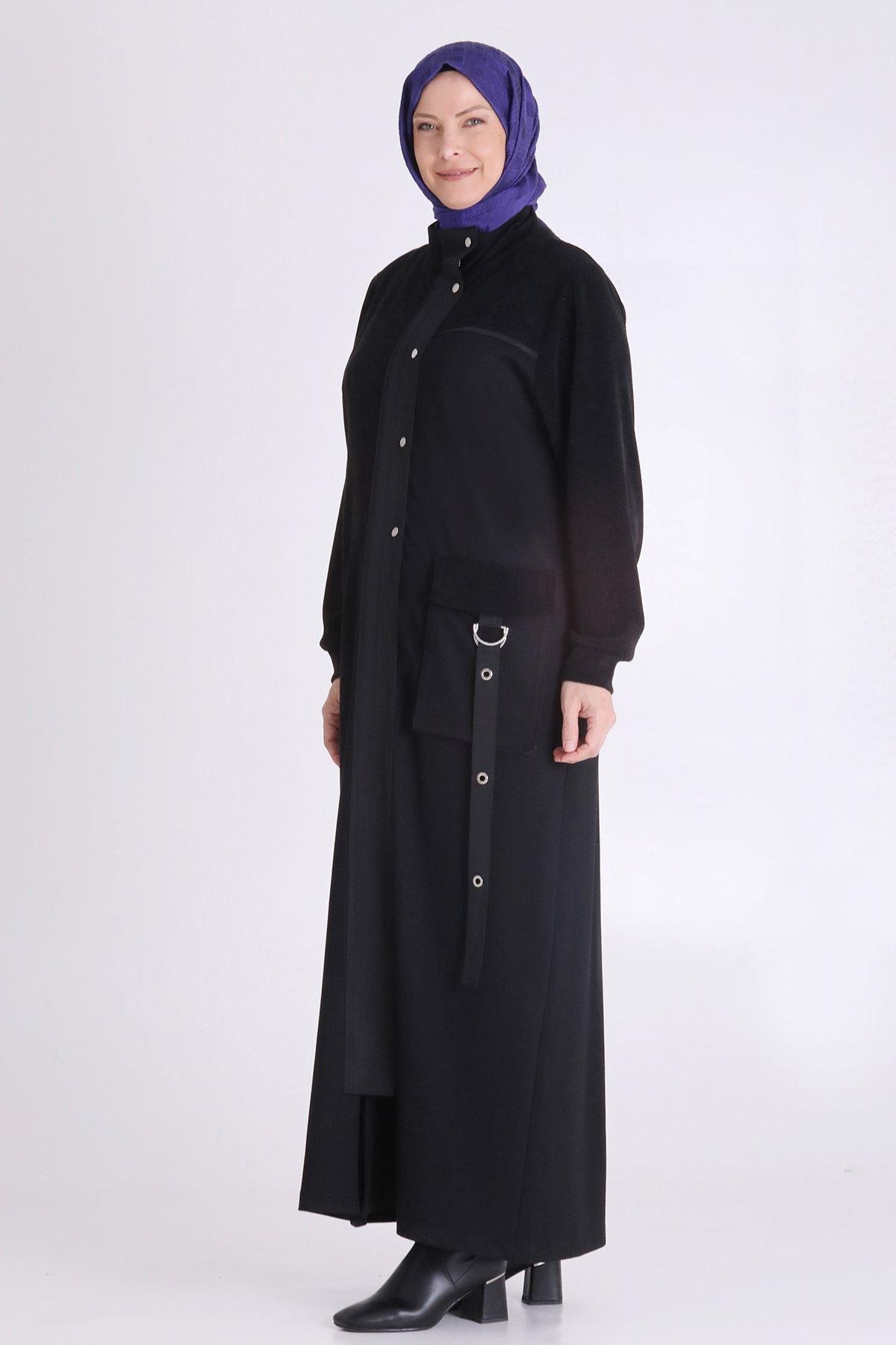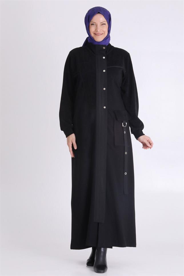 Metal Halkalı Cep Detaylı Büyük Beden Ferace Siyah OTW28077