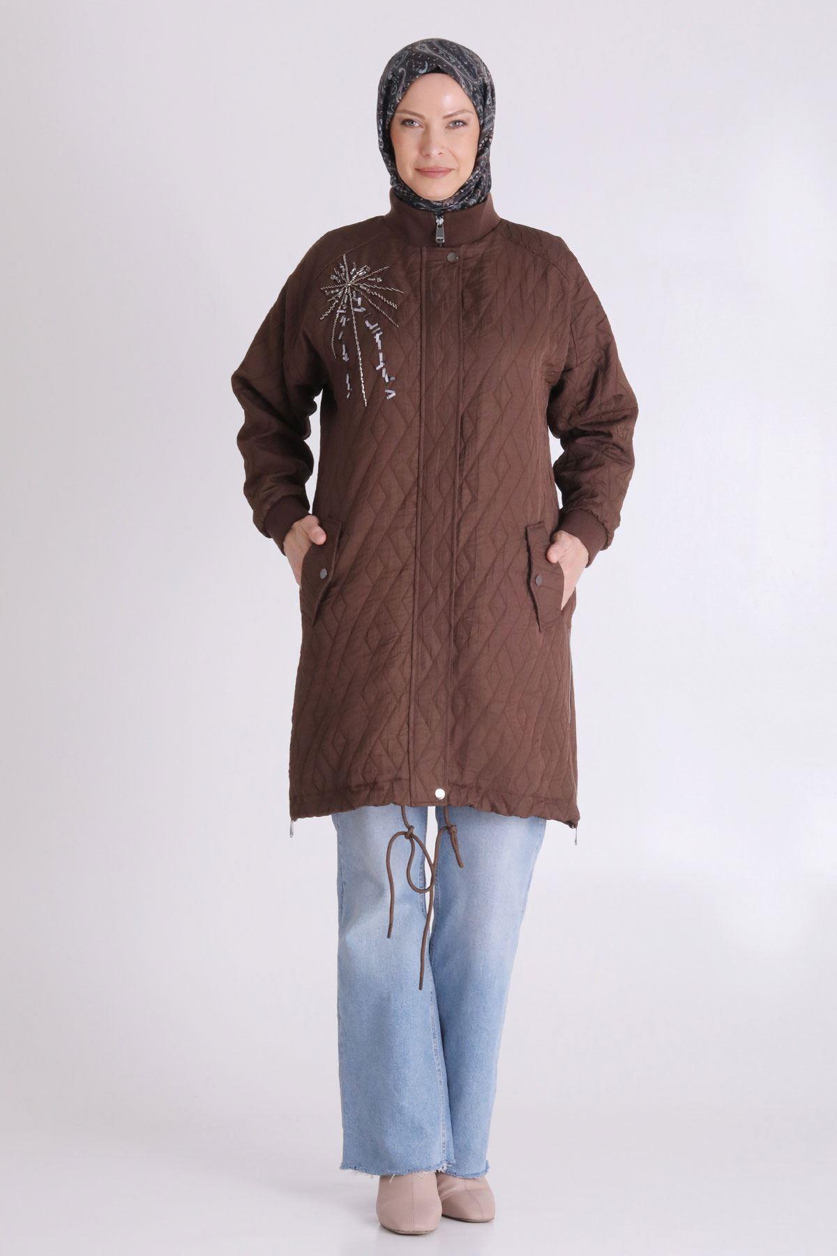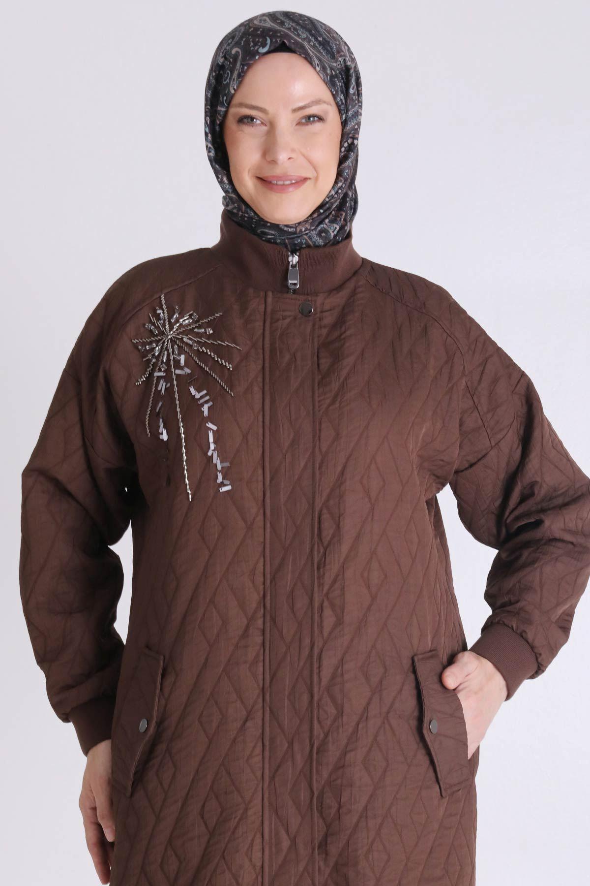 Nakış İşlemeli Spor Tarz Büyük Beden Kapitone Kap Kakao OTW25134