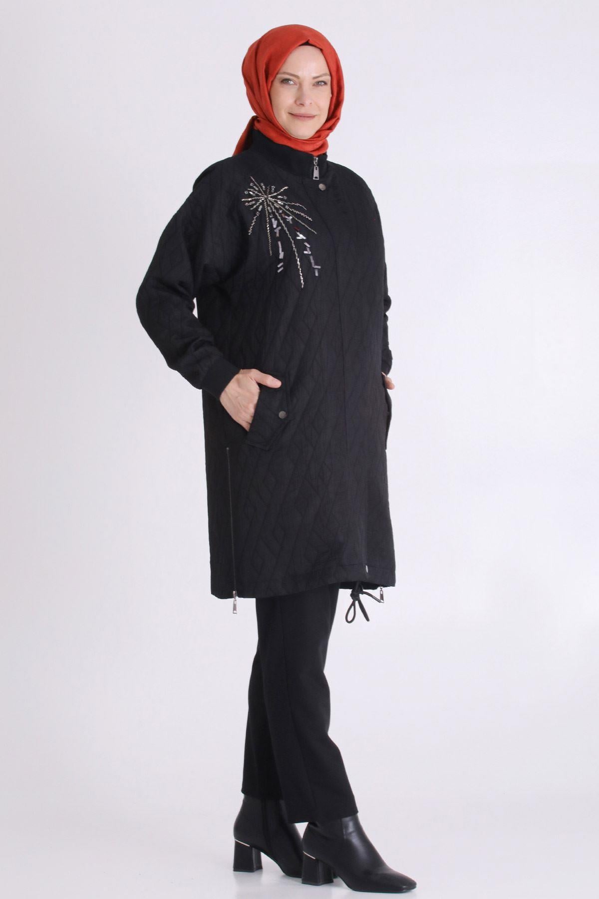 Behrem Nakış İşlemeli Spor Tarz Büyük Beden Kapitone Kap Kakao OTW25134 Behrem Nakış İşlemeli Spor Tarz Büyük Beden Kapitone Kap Siyah OTW25134