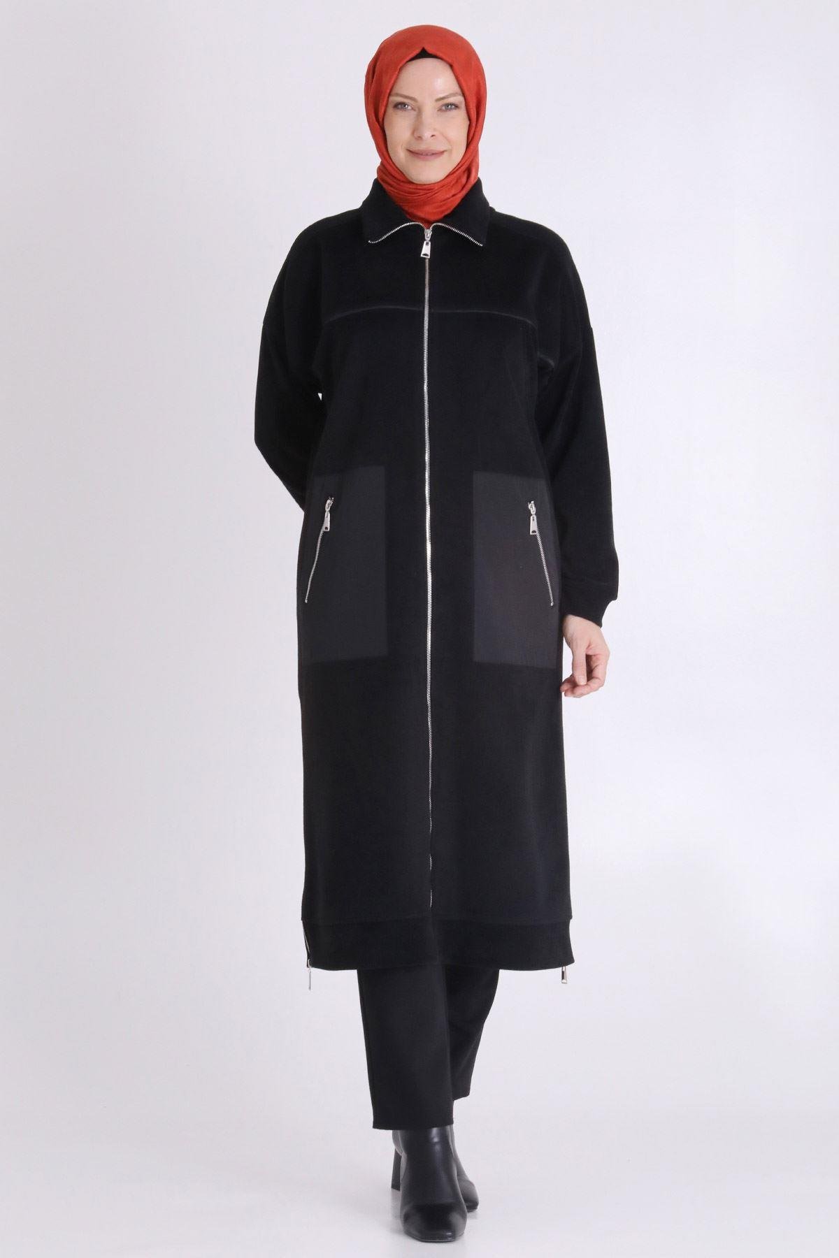 Önü Fermuarlı Çelik Örme Kap Siyah OTW25137