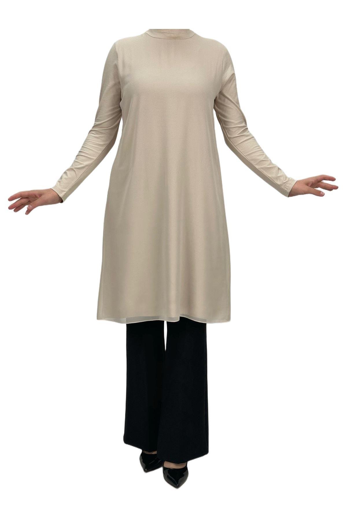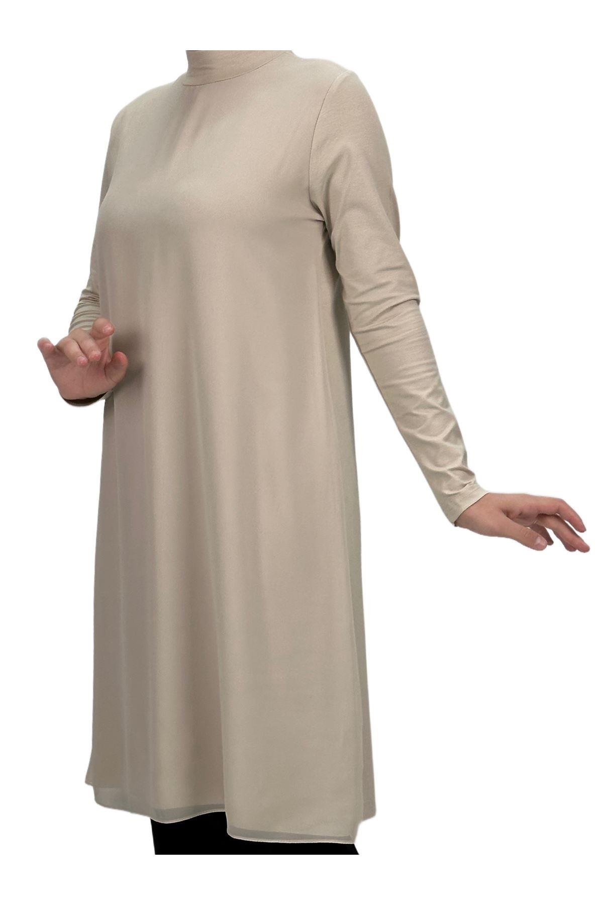 Ürün Detayı: İçlik modelimizin ön iç kısmı ve arkası penye kumaştır. Önünde ayrıca şifon kumaş olup hem şık hem de spor bir kombin oluşturmanızı sağlamaktadır, ürünümüz iç göstermez, boy uzunluğu tesettüre uygundur.