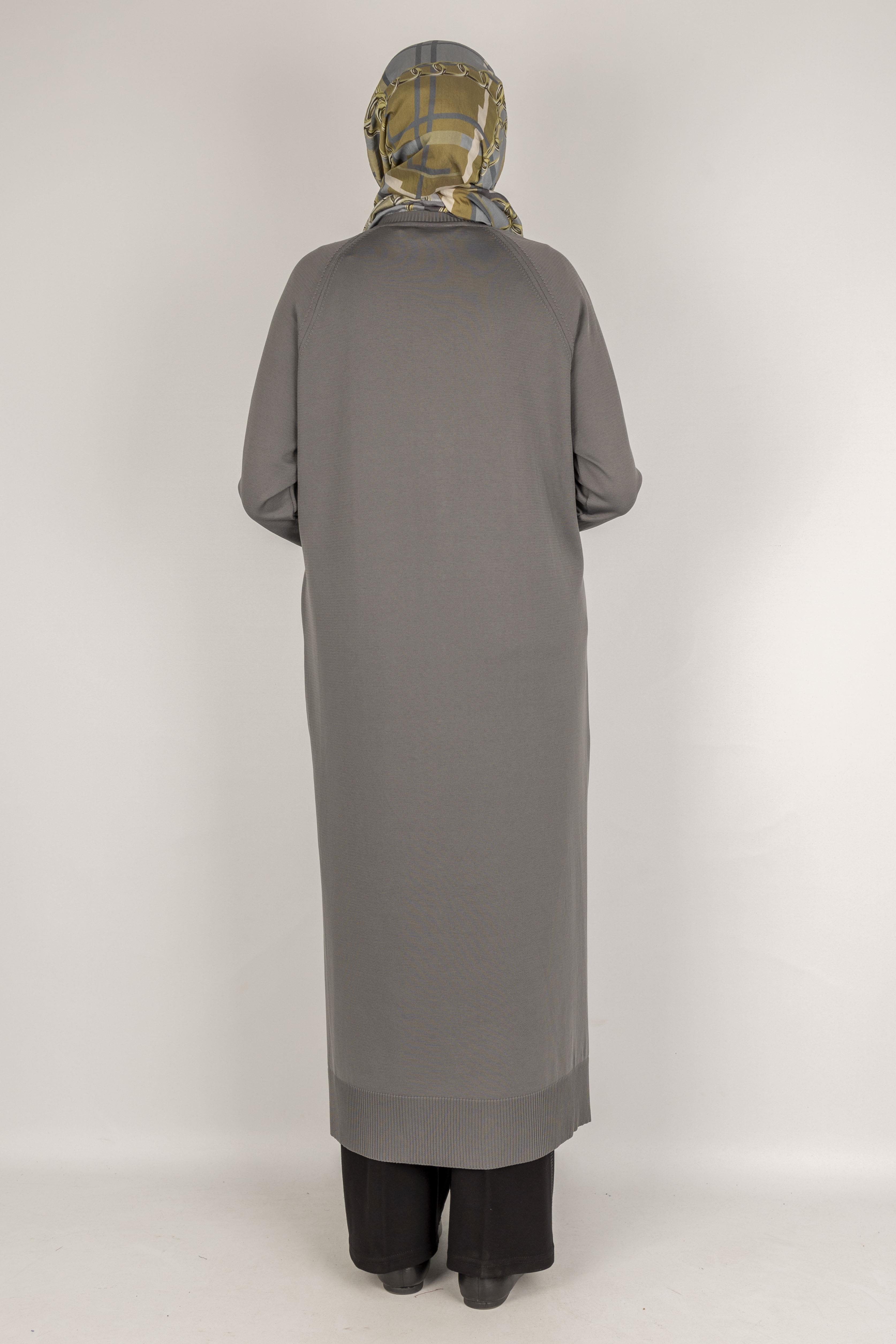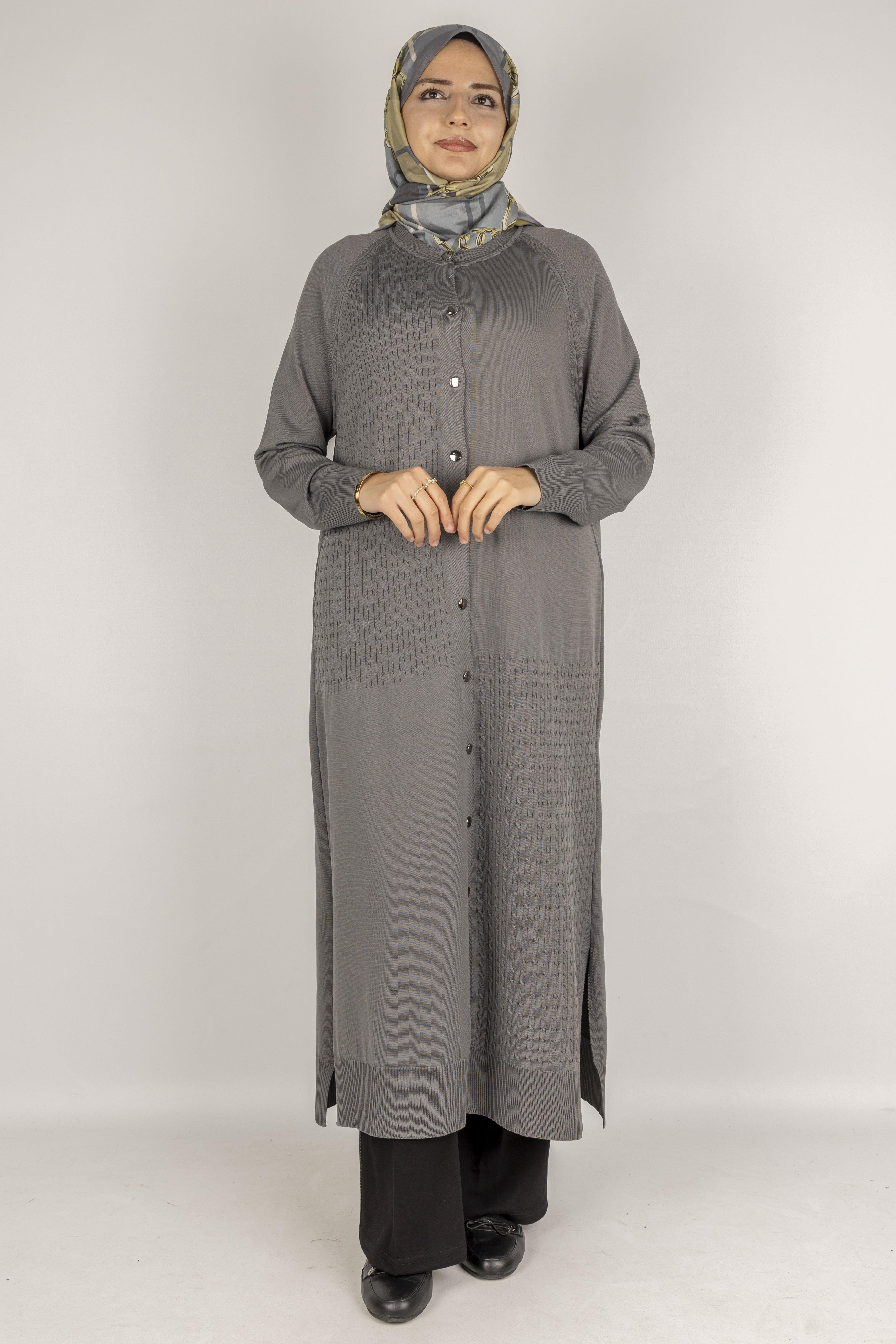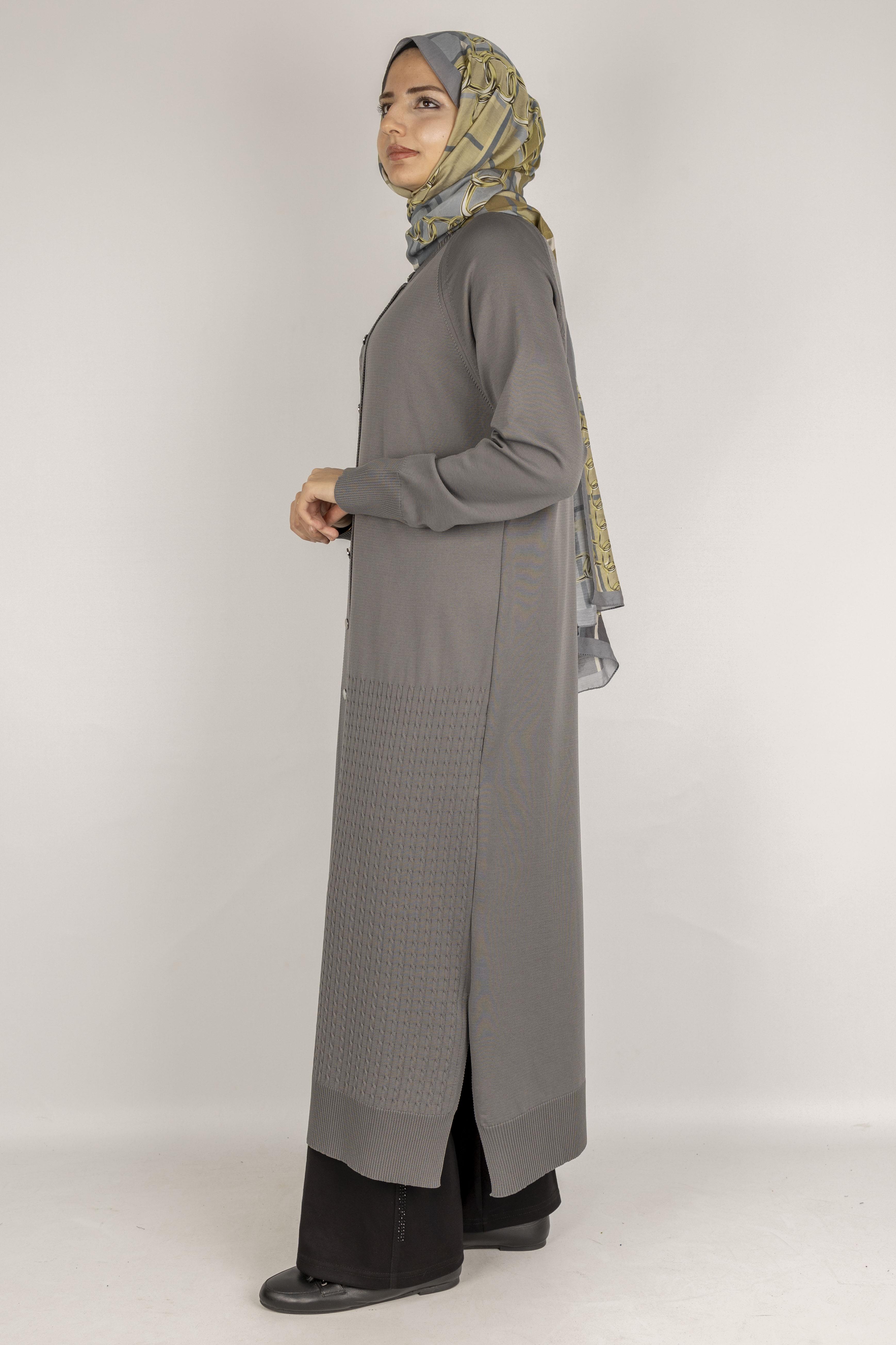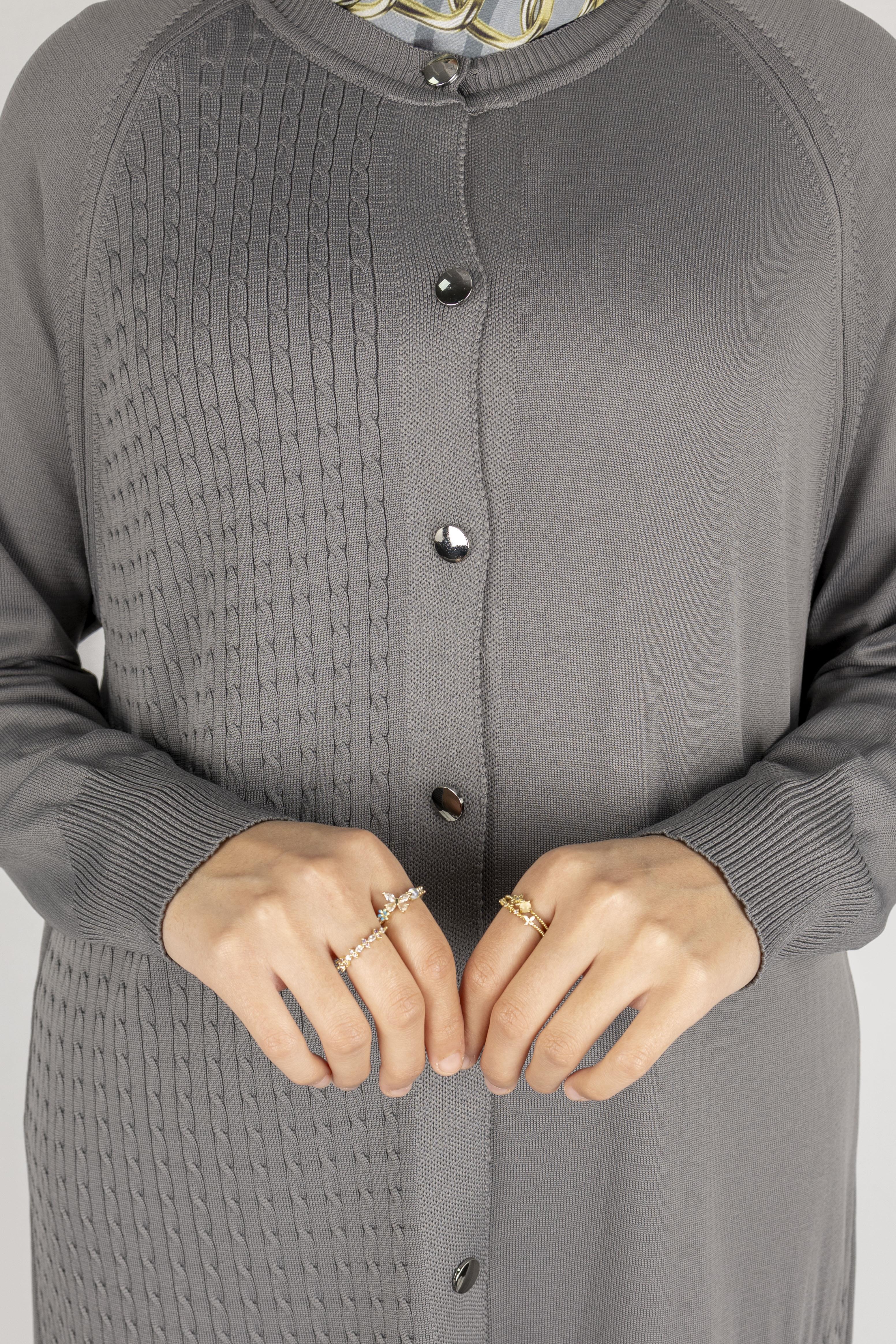 Örgü Desenli Merserize Hırka Gri OTW1037