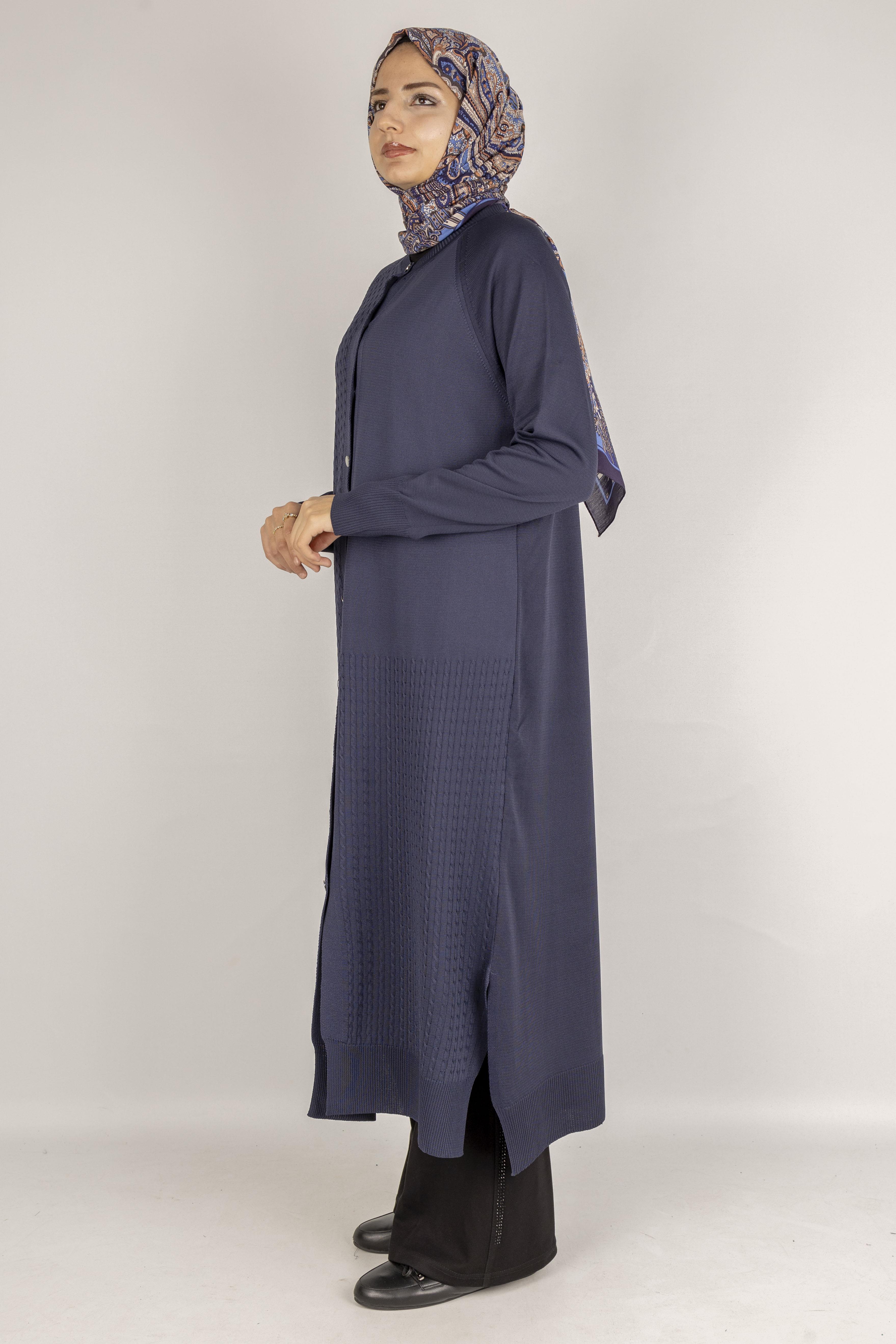 Örgü Desenli Merserize Hırka Lacivert OTW1037