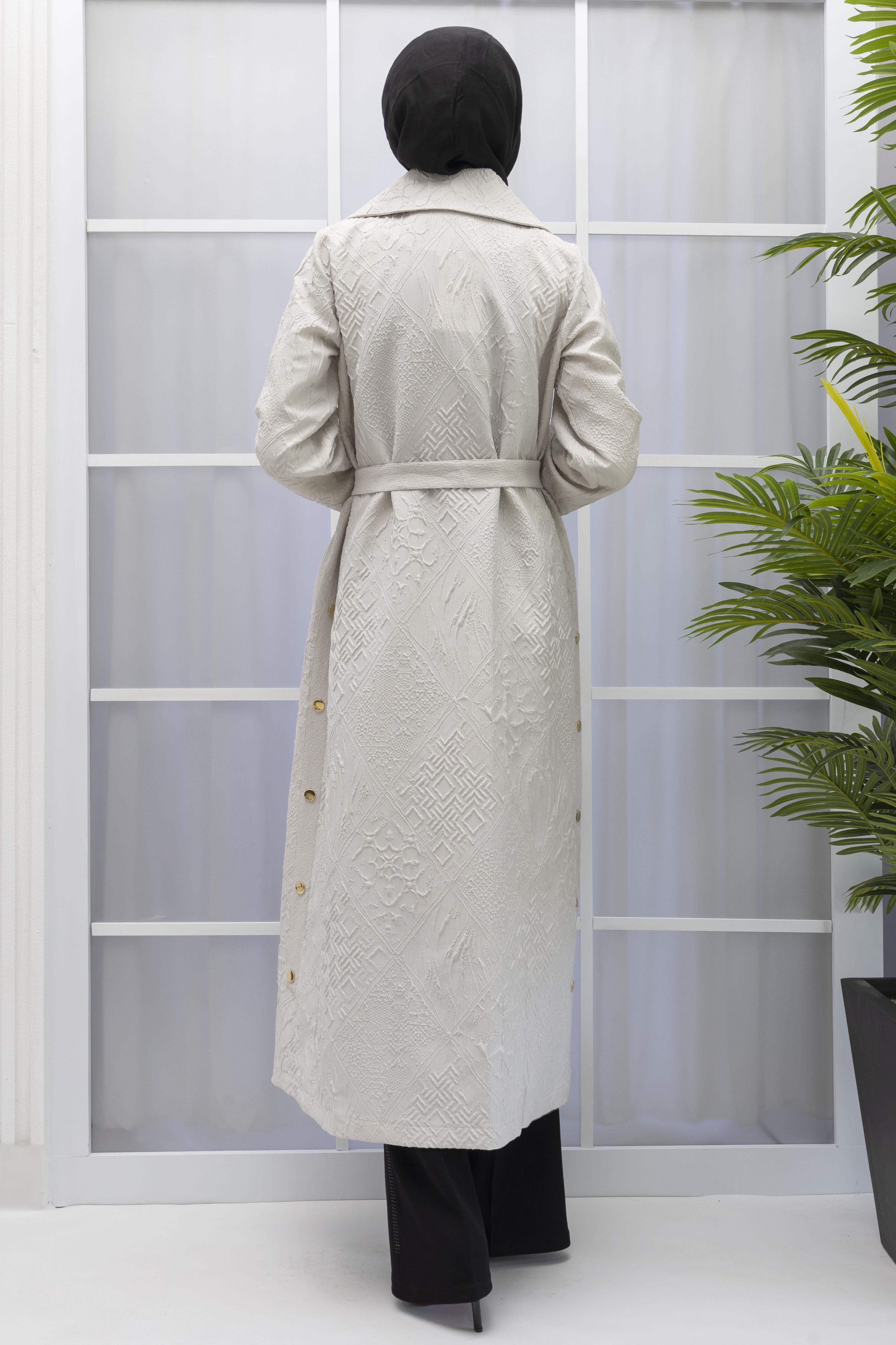 Ürün Detayları: Simli jakar kumaş büyük beden kap modelimiz kemerli ve kemersiz kullanım seçeneğiyle hatları belli etmez kalıbı ile tesettüre uygun olarak tasarlanmıştır.