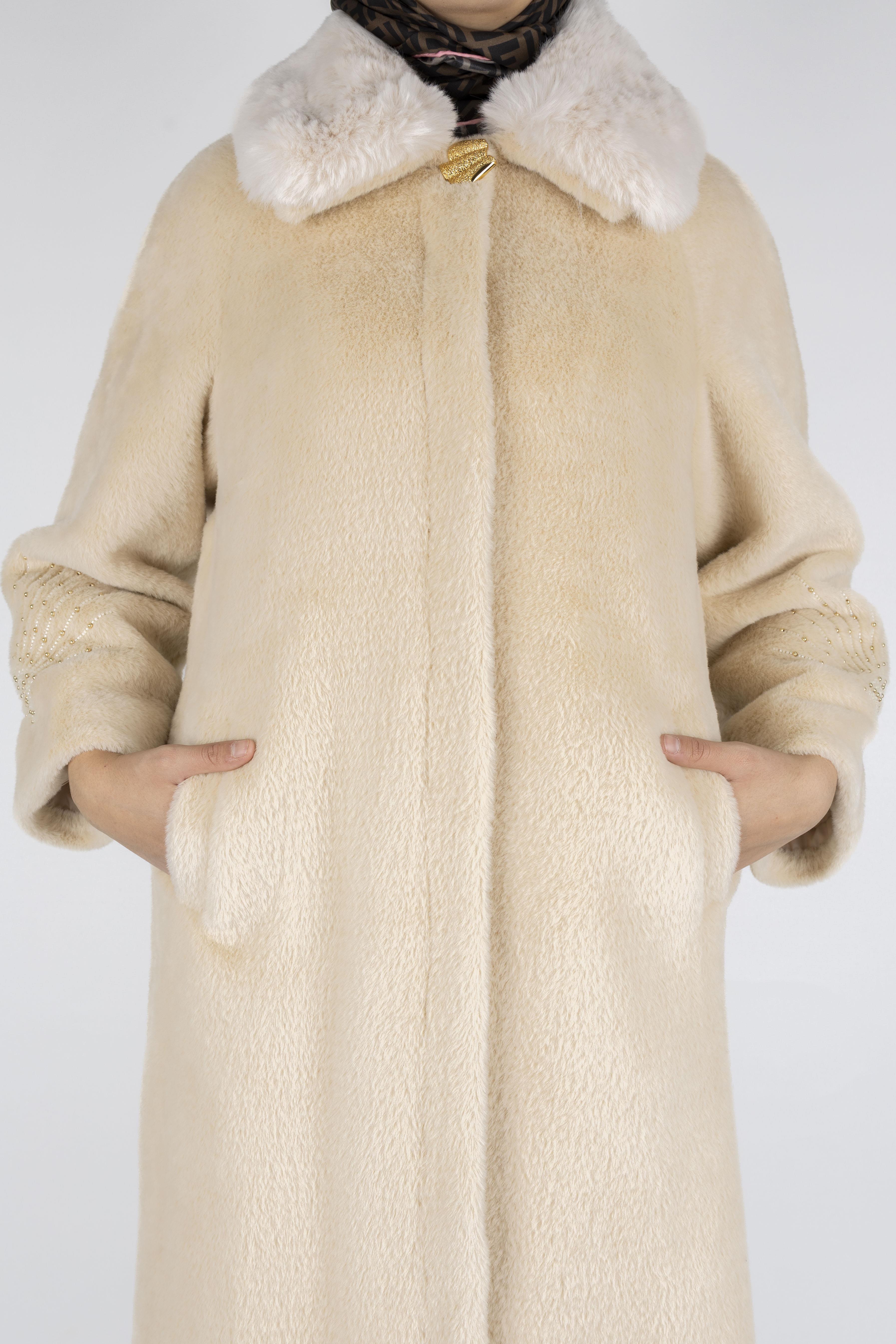 Yumuşak angora dokusu ve sıcak tutan iç yapısıyla bu kürk yakalı angora kap, soğuk havalarda hem şık hem konforlu bir görünüm sunar. Peluş görünümlü kumaşı teni rahatsız etmez, astarlı oluşu sayesinde rüzgâr ve soğuğa karşı ekstra koruma sağlar.
