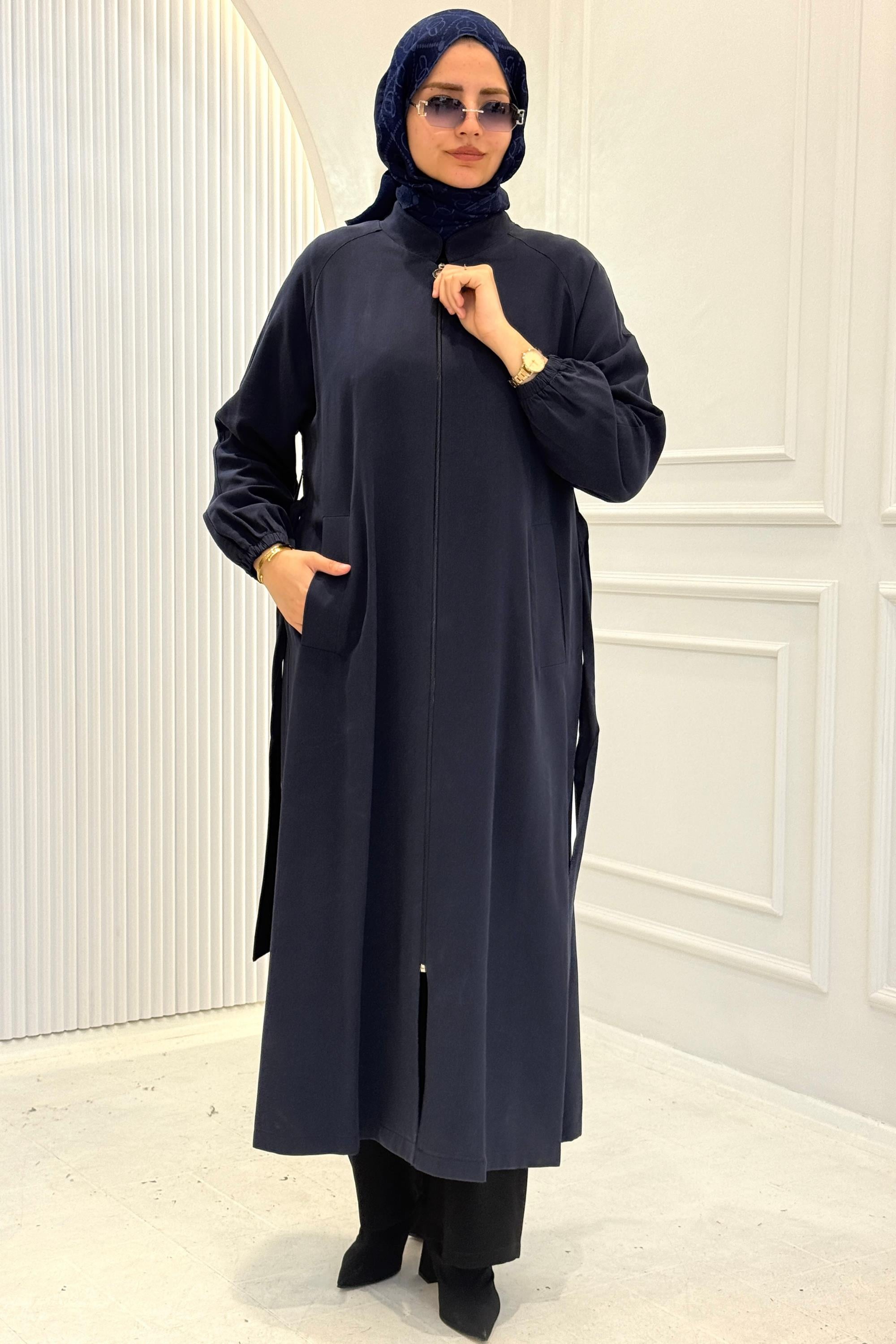 Rahat kesimi ve dökümlü tensel viskon kumaşı ile gün boyu konfor sunan bu uzun tesettür kap, hem günlük kombinlerde hem şehir stilinde şık bir alternatif sunar. Akıcı yapısı sayesinde vücuda yapışmaz, modern ve zarif bir siluet oluşturur.