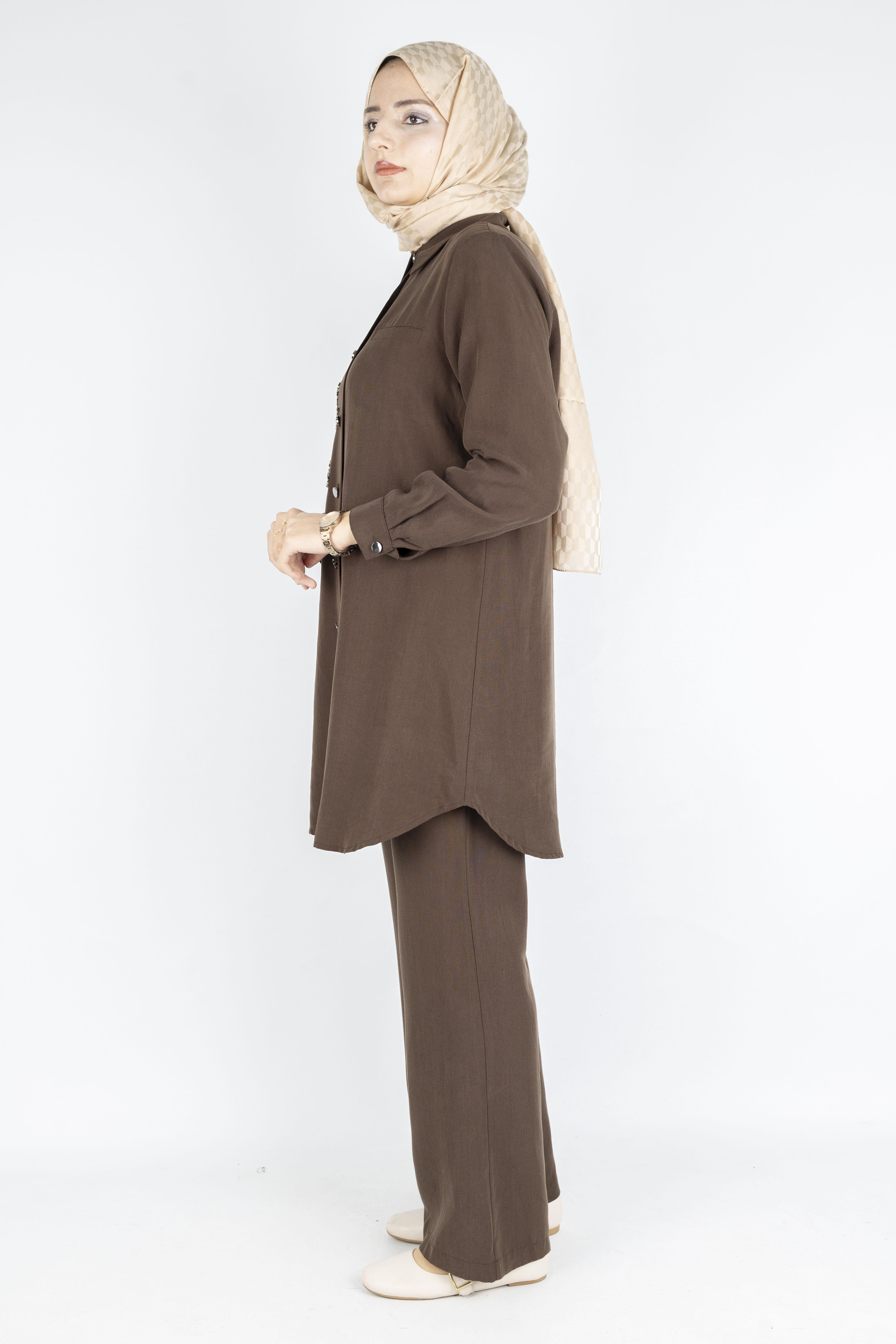 Modern çizgisi ve zarif işlemeli detaylarıyla öne çıkan 2703 tunik pantolon takım, mevsimlik kullanıma uygun dökümlü kumaşıyla gün boyu konfor sunar. Tunik üzerindeki şık işlemeler modele premium bir hava katarken, rahat kesim pantolon hareket özgürlüğü sağlar. M ve L beden seçenekleriyle sunulan takım, vücudu toparlayan kalıbı sayesinde hem günlük kullanımda hem de iş stilinde şık bir görünüm oluşturur.
