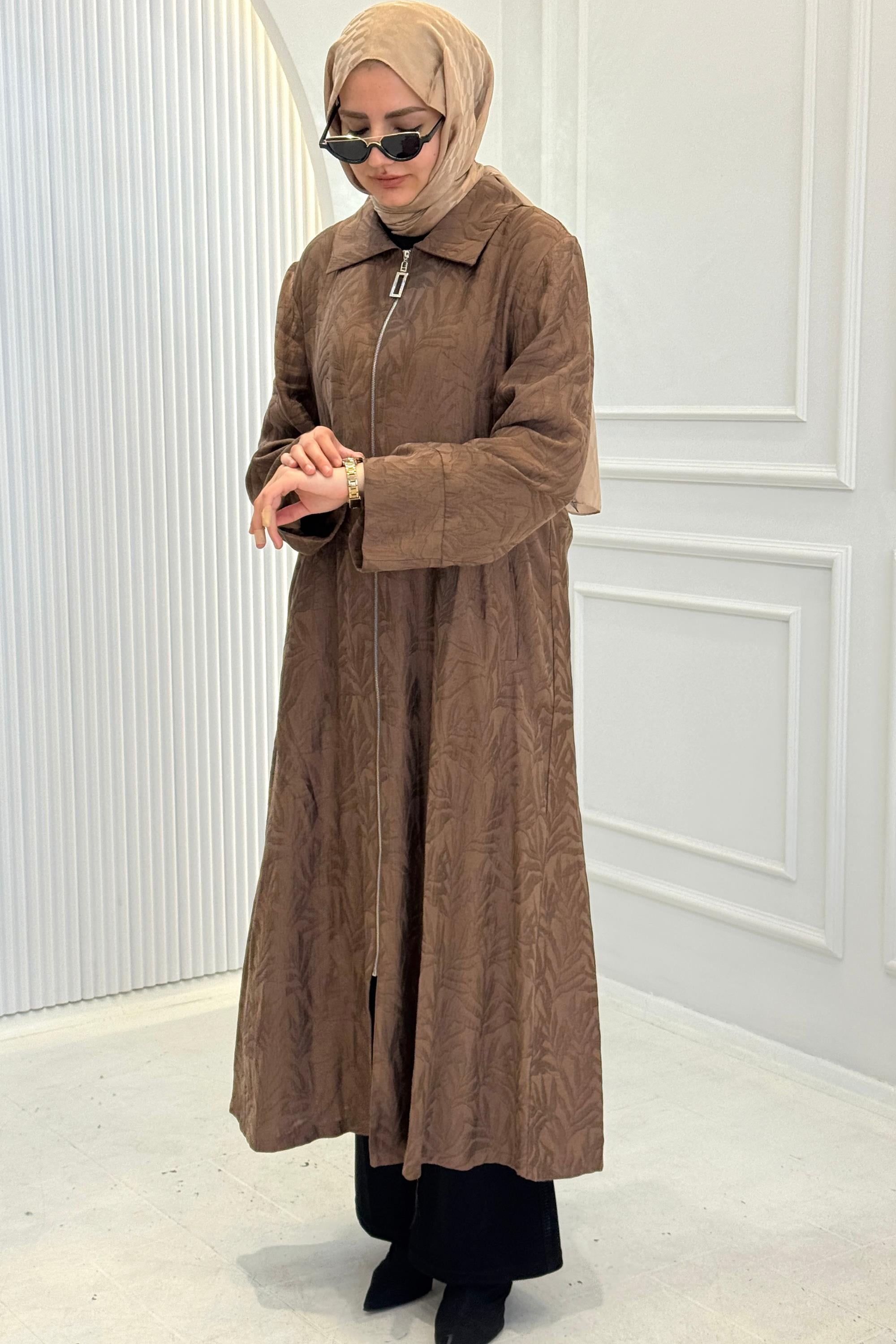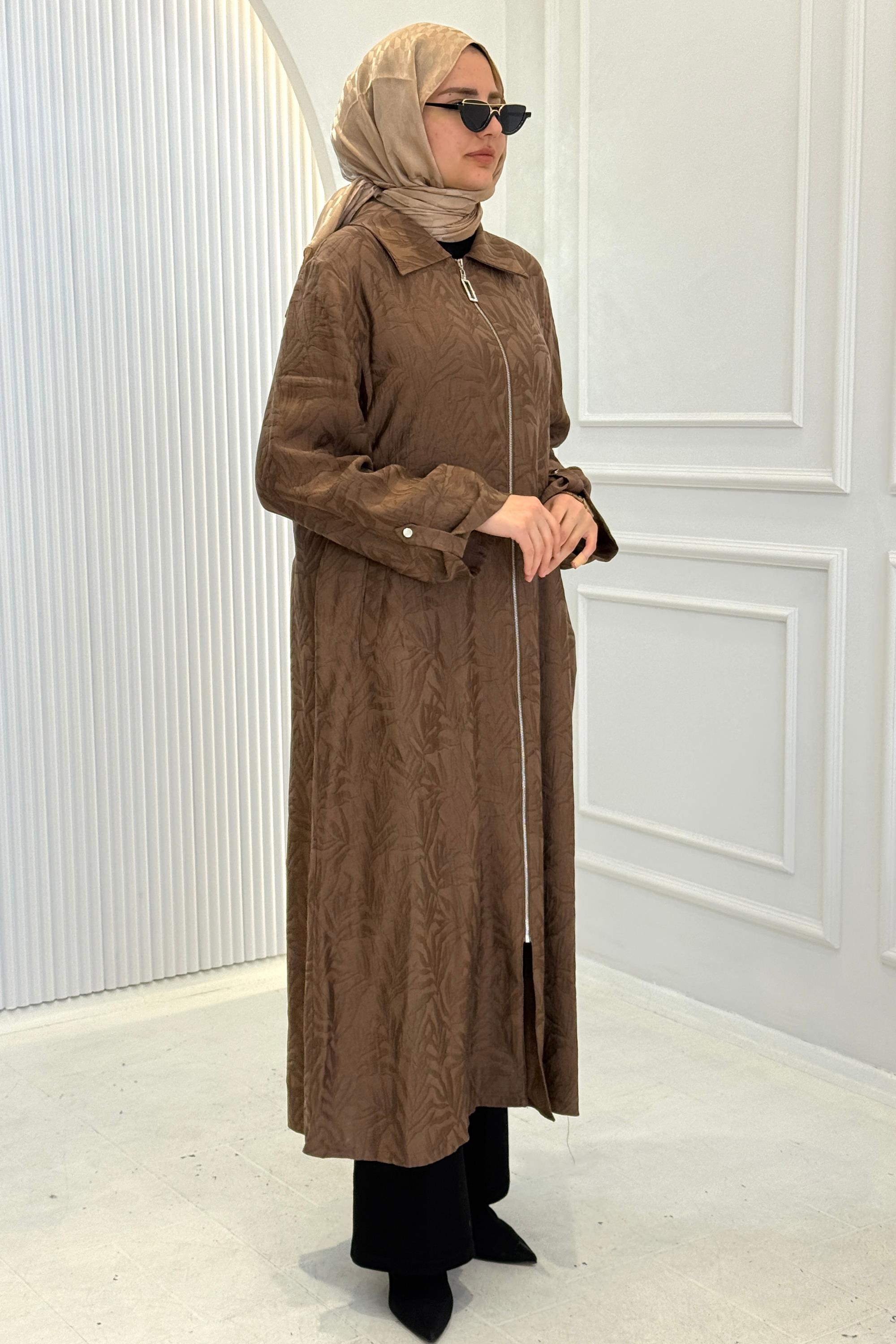 Orhan Store Jakarlı Fermuarlı Uzun Tesettür Kap Acı Kahve OTW1618