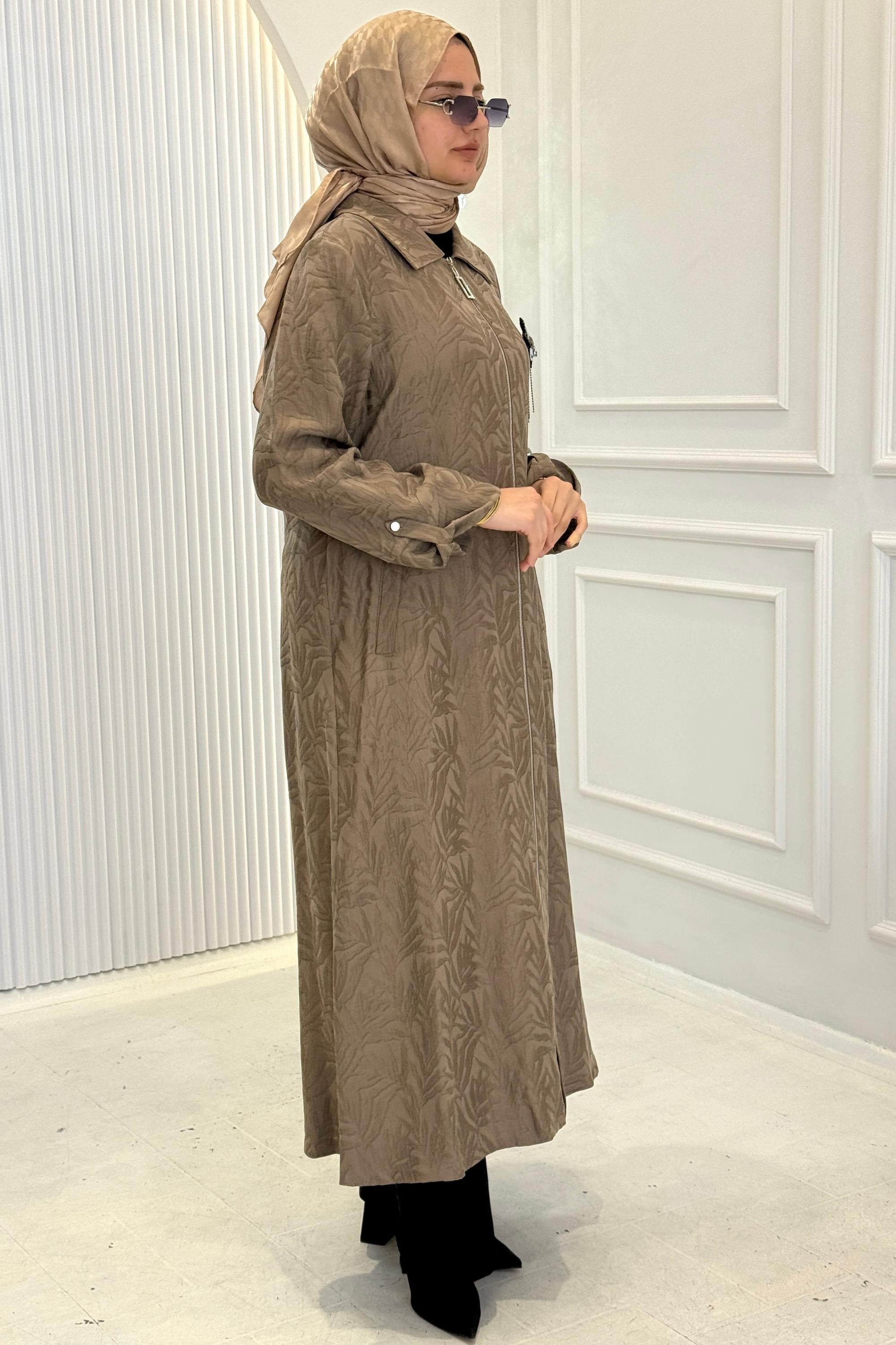Orhan Store Jakarlı Fermuarlı Uzun Tesettür Kap Haki OTW1618