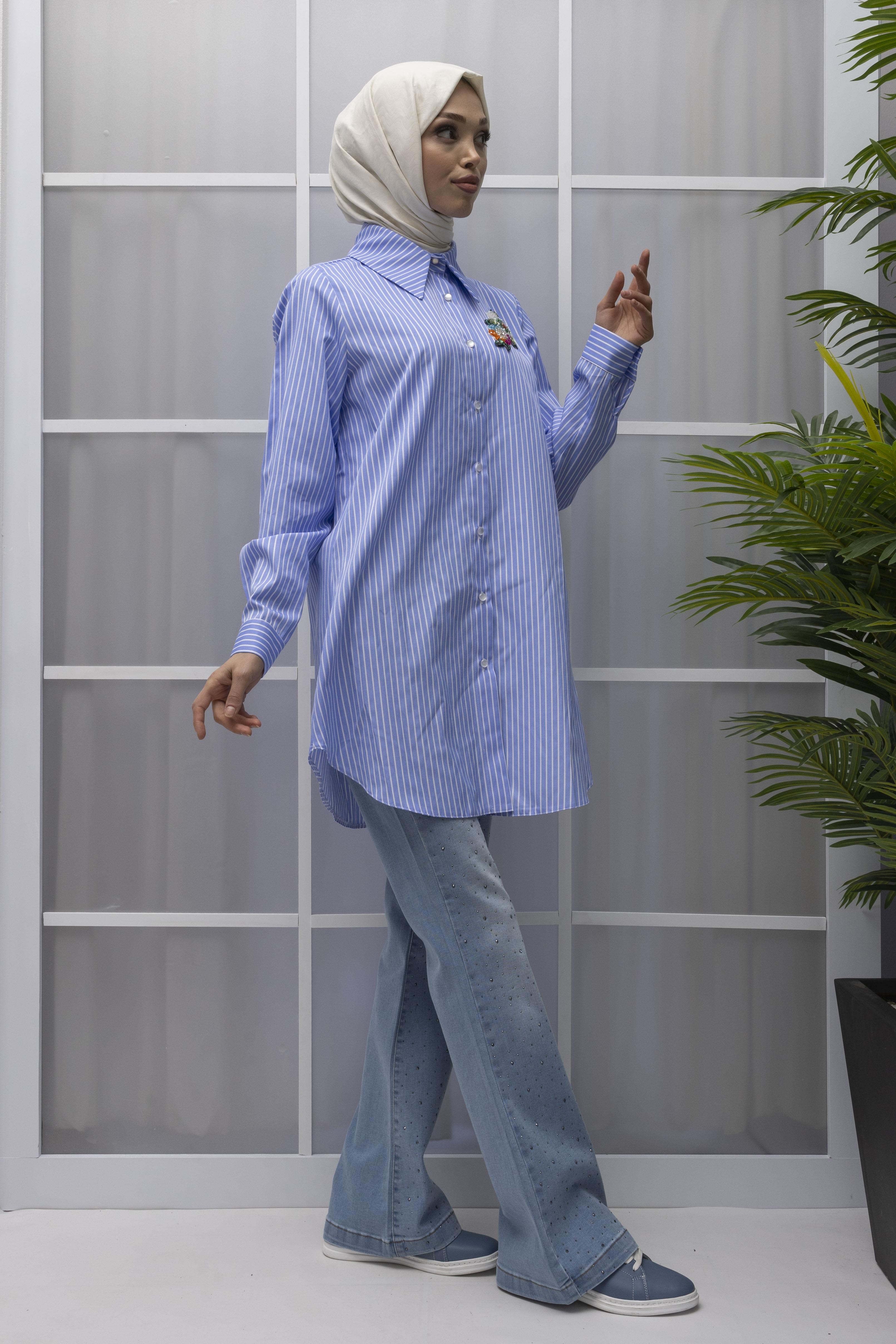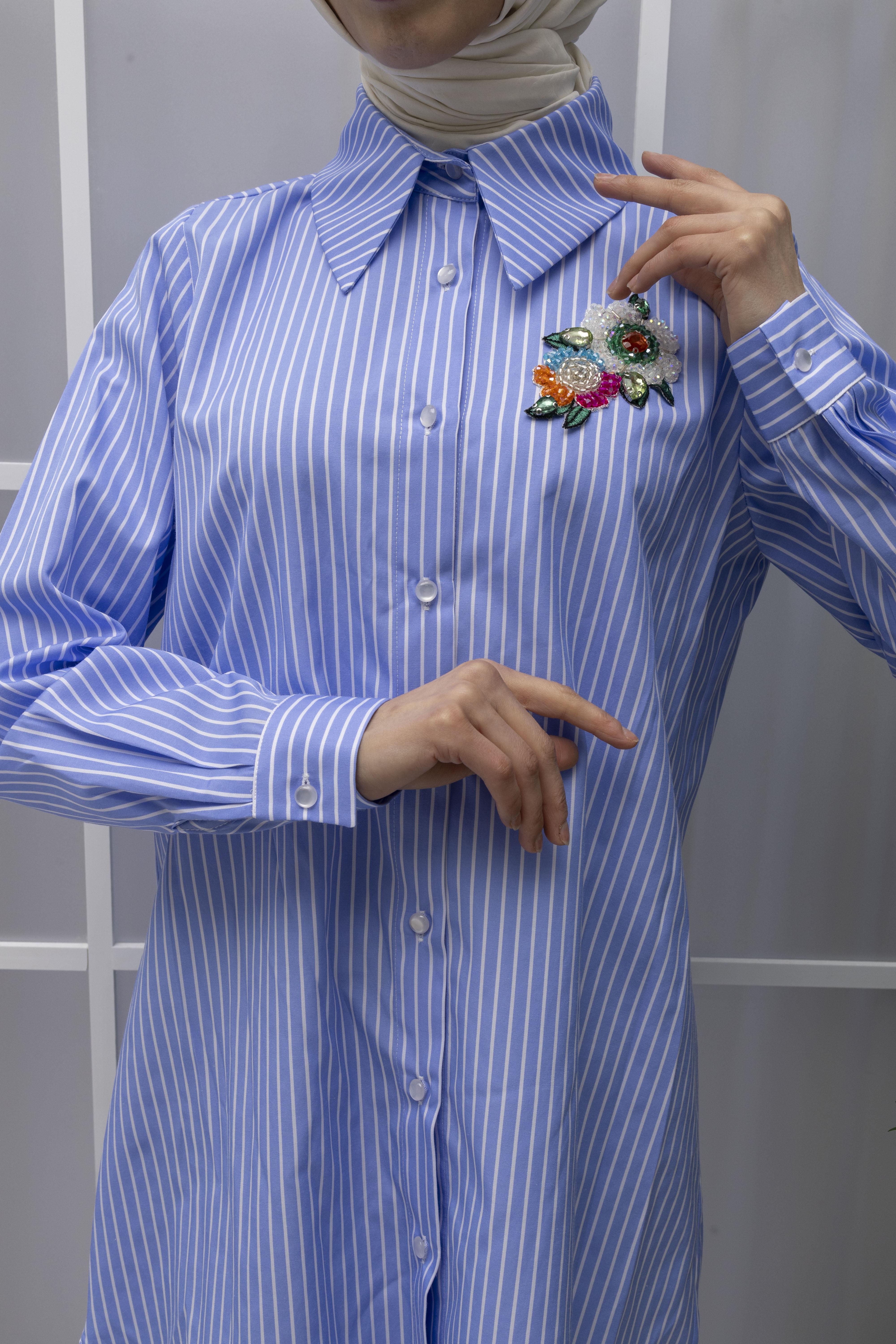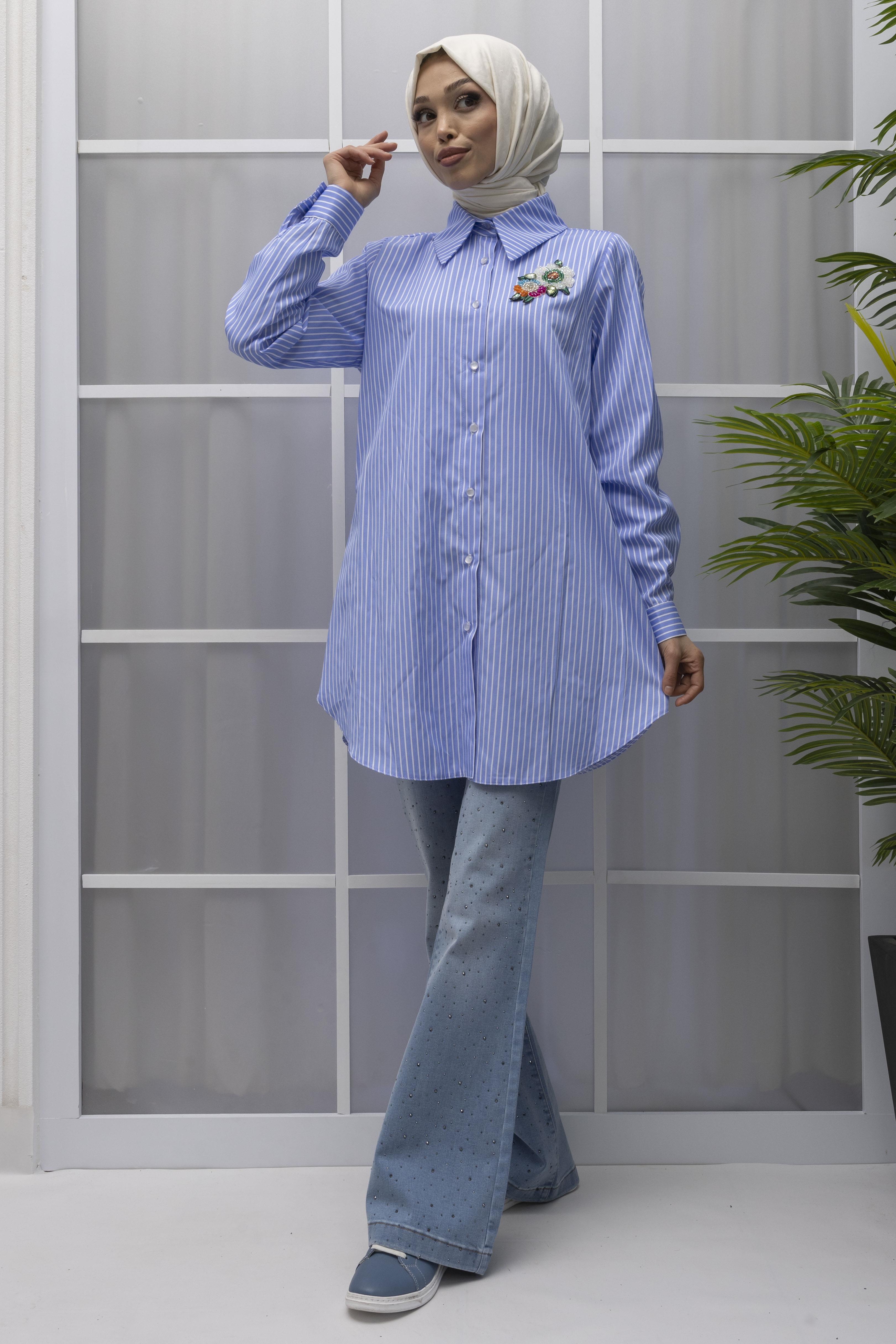 Ürün Detayları: Önündeki boncuk işleme detayıyla hem şık hem spor olarak kullanabileceğiniz gömlek modelimiz kalıbı ve kumaş dokusuyla yaz boyu her ortamda kullanabileceğiniz şekilde tasarlandı.