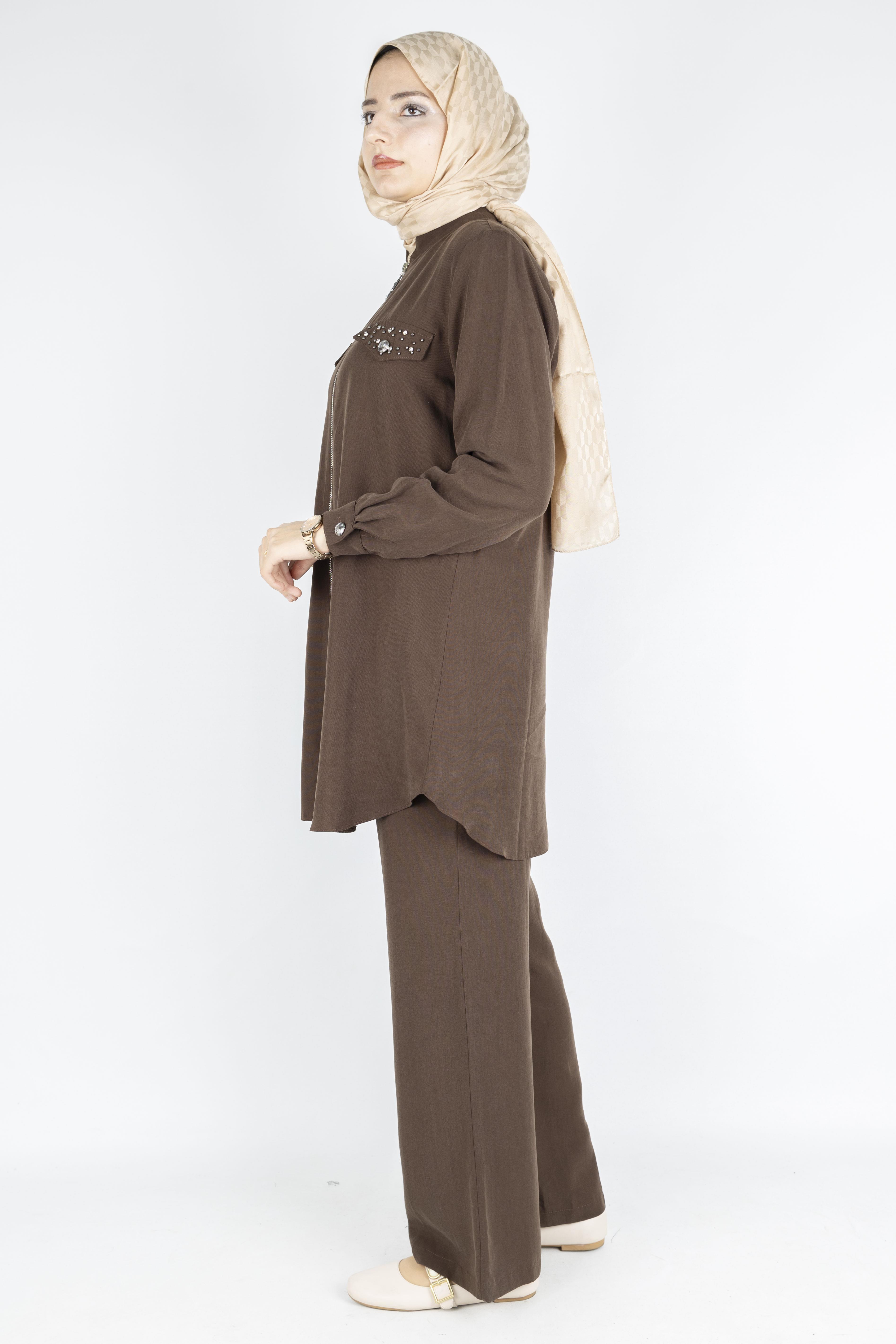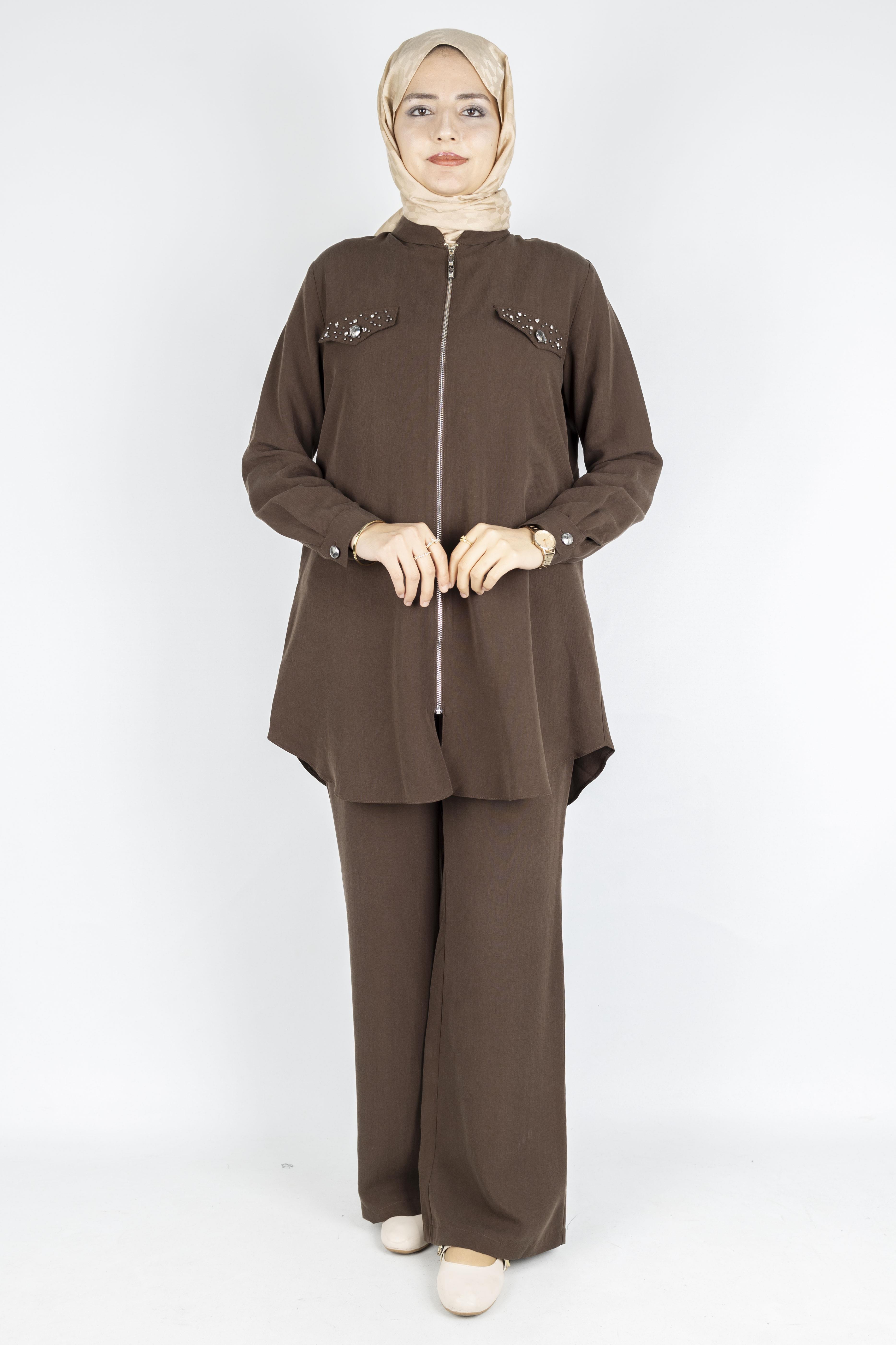 Orhan Store Taş Kapak Cepli Fermuarlı Takım Kahve OTW2714