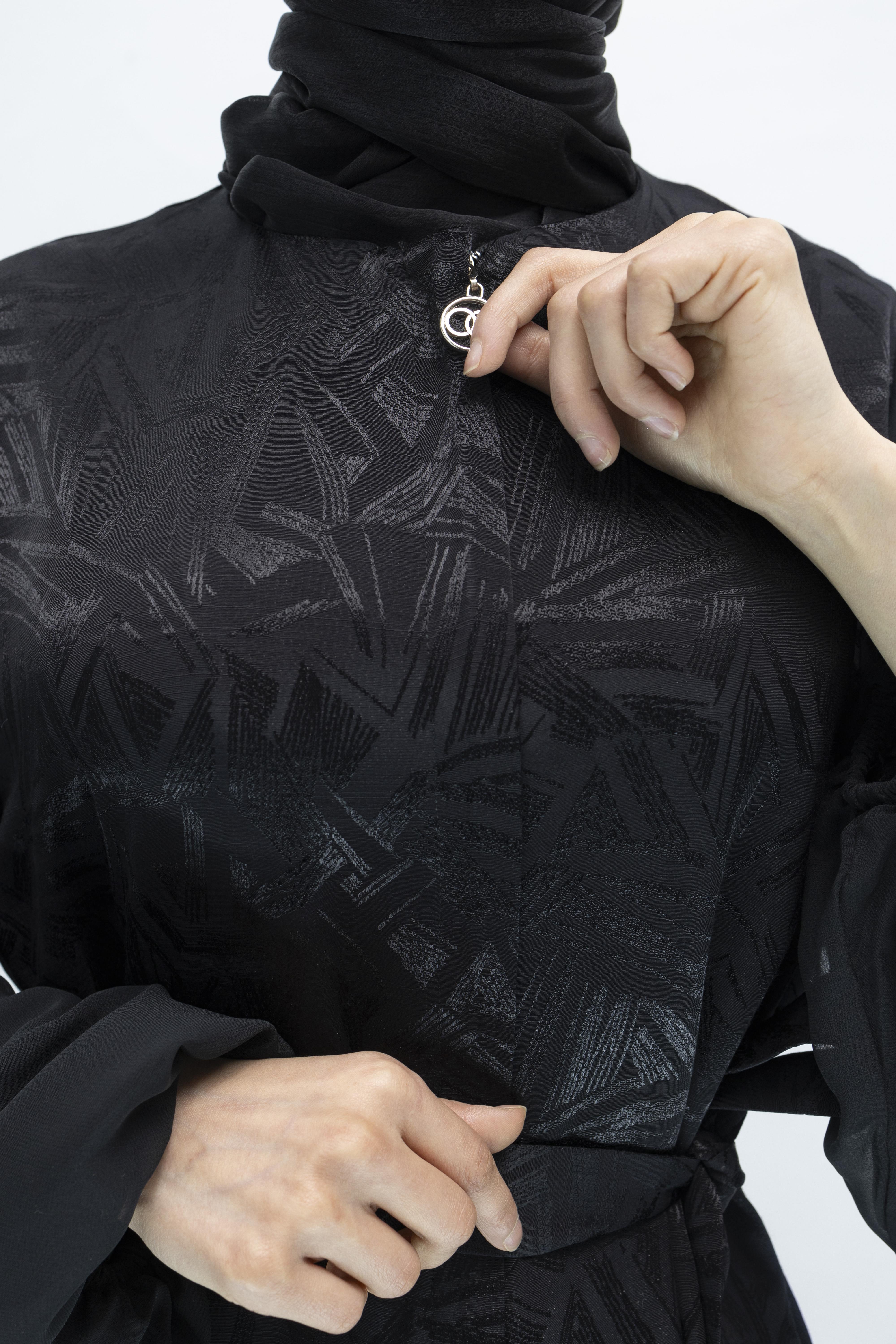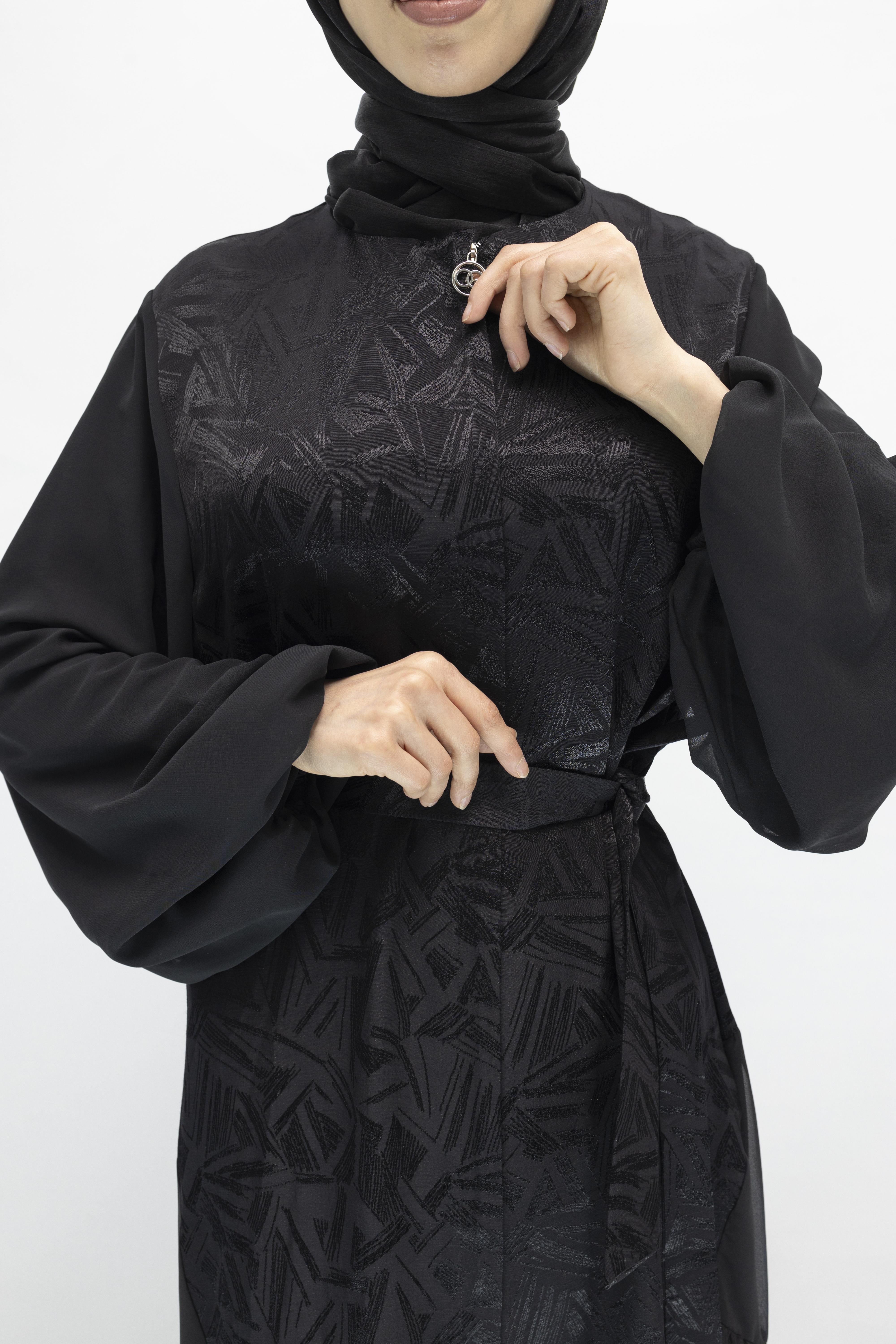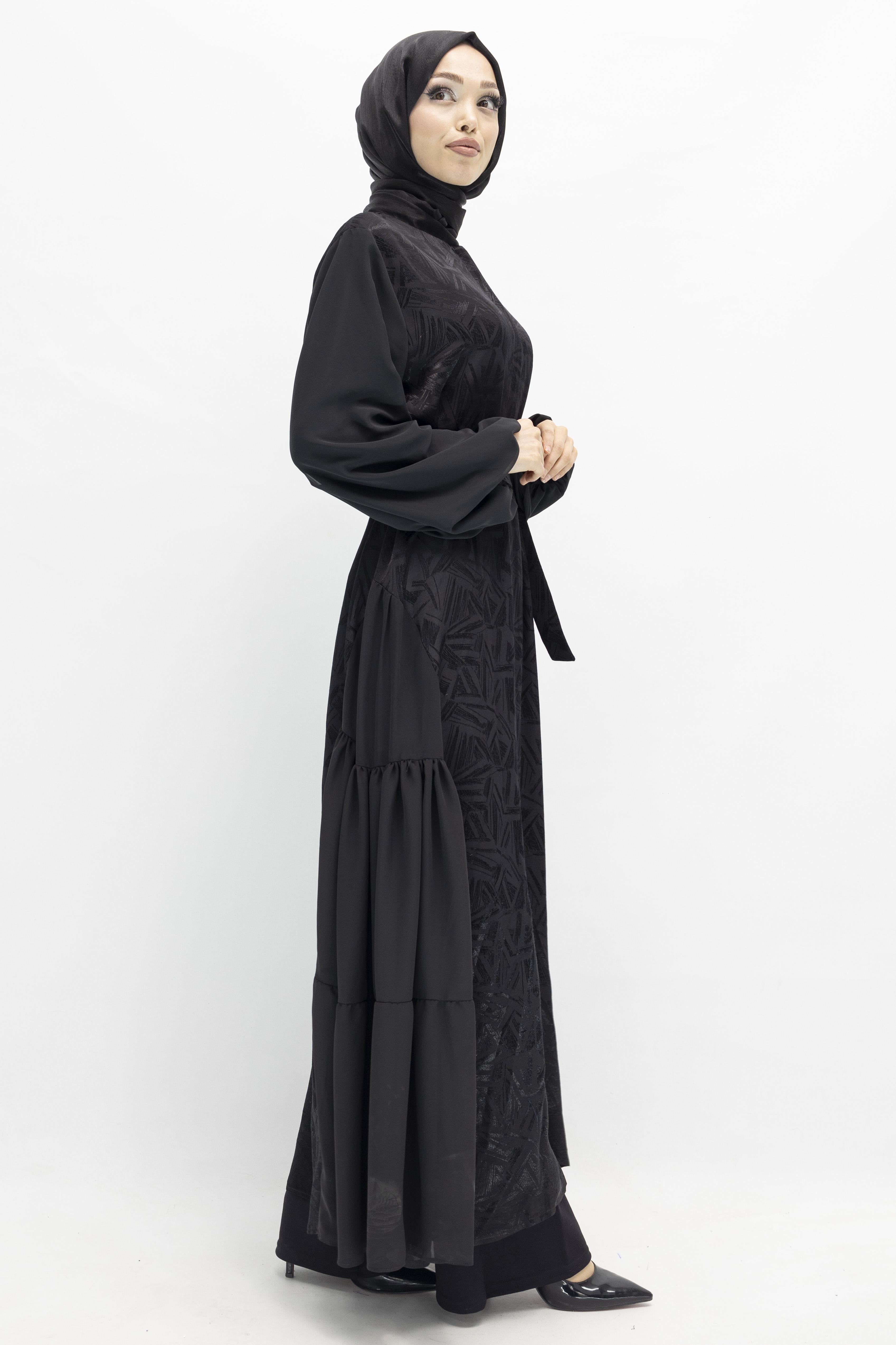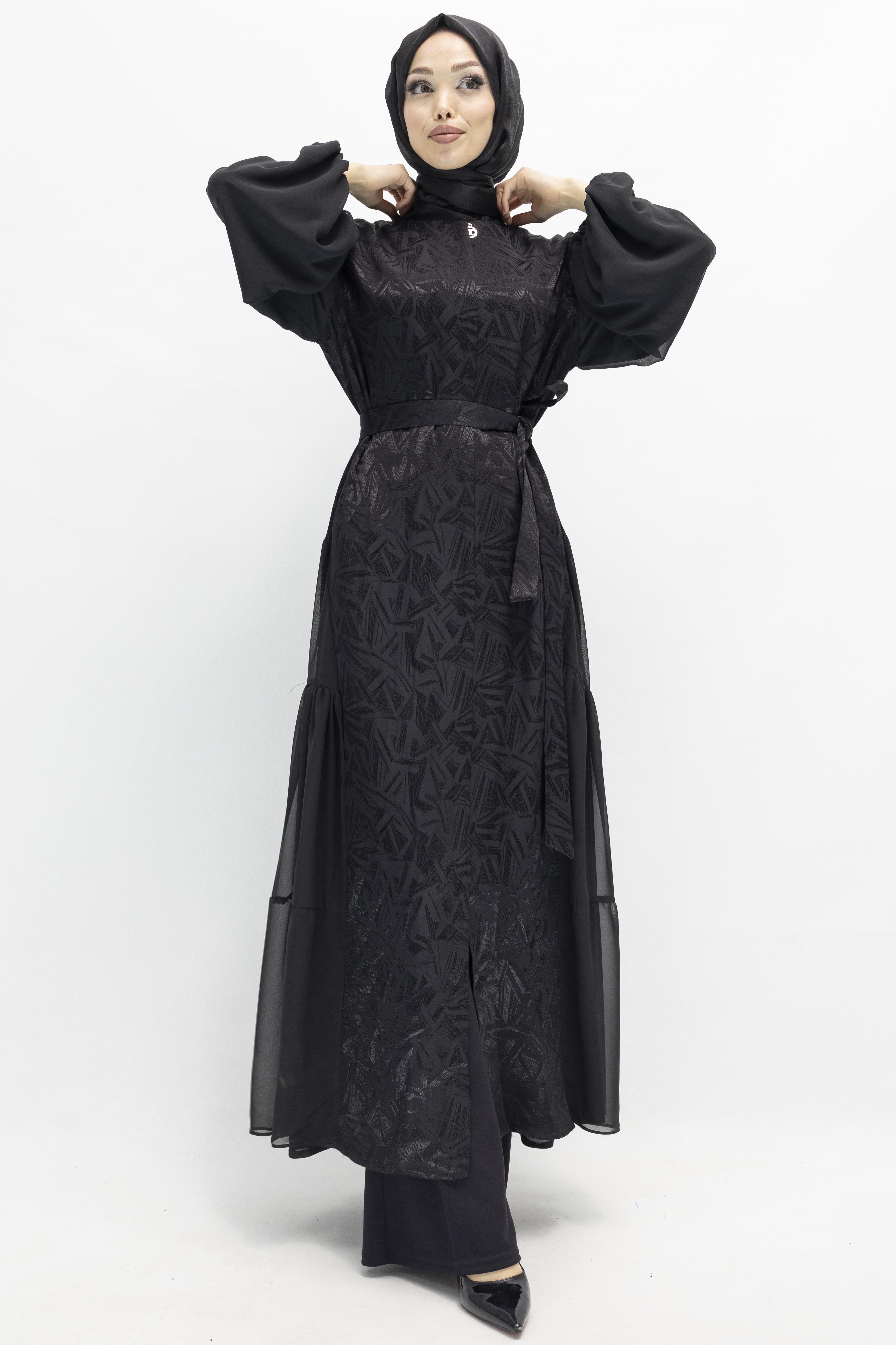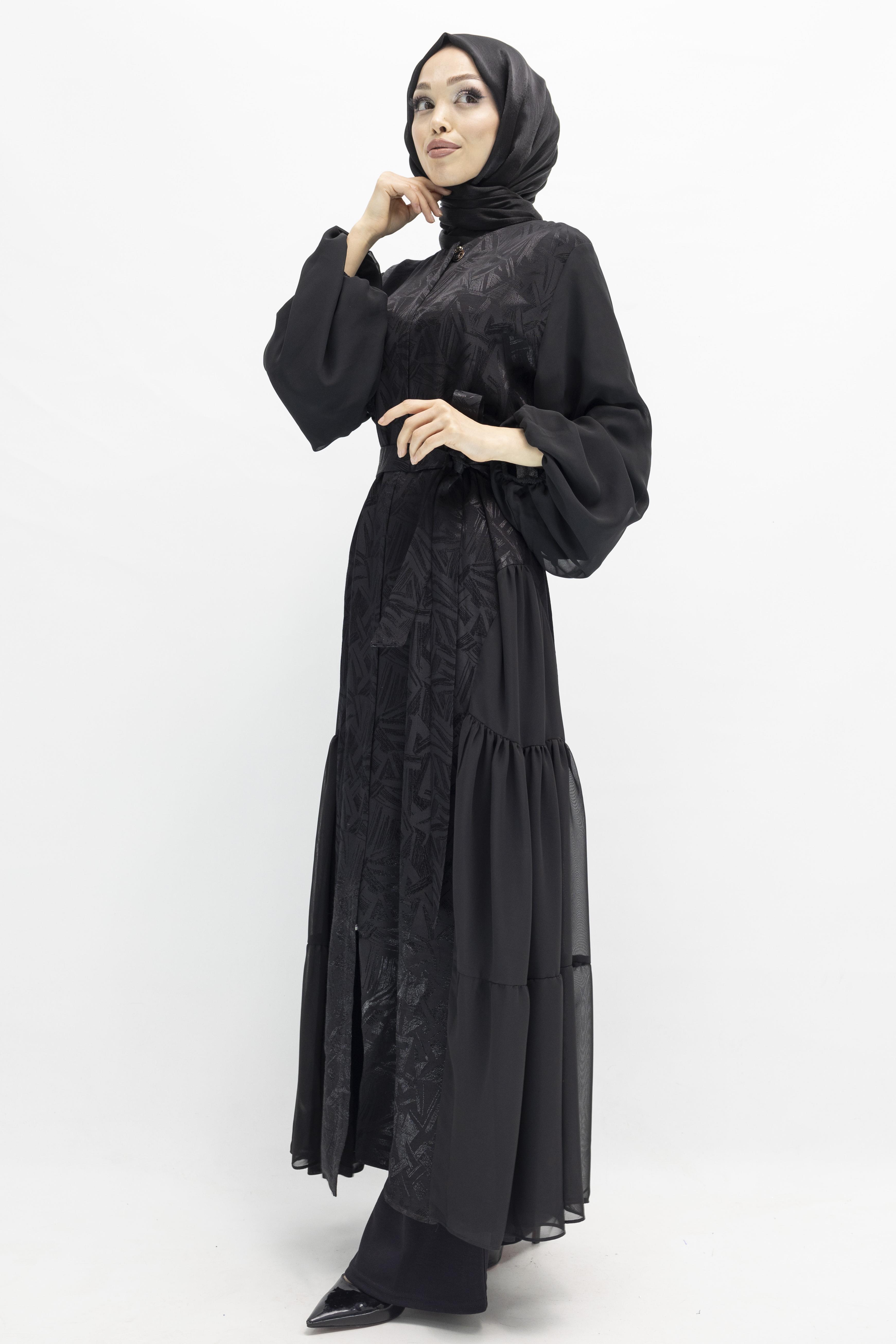 Orhan Store Tül Detaylı Qupra Ferace Siyah OTW1175