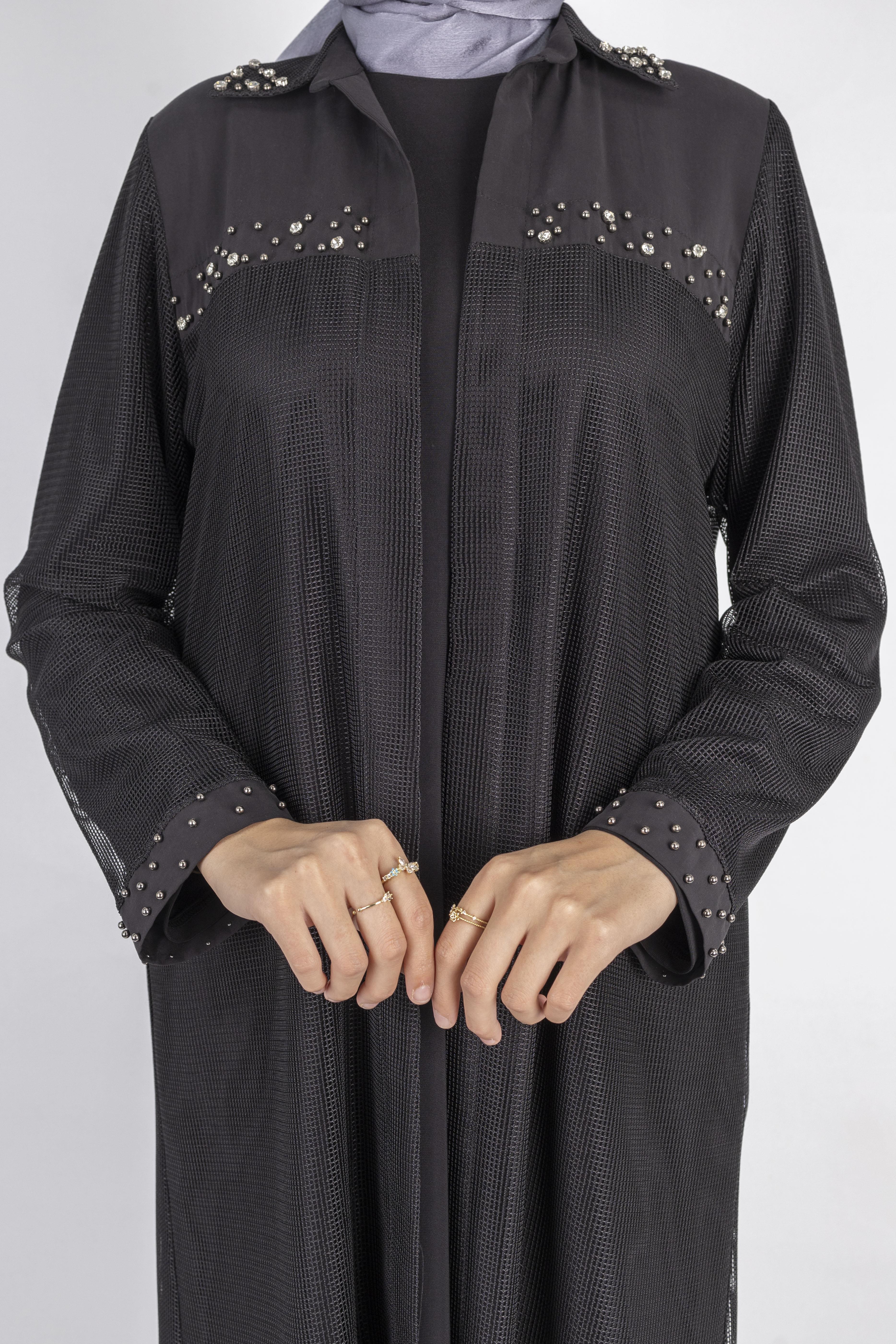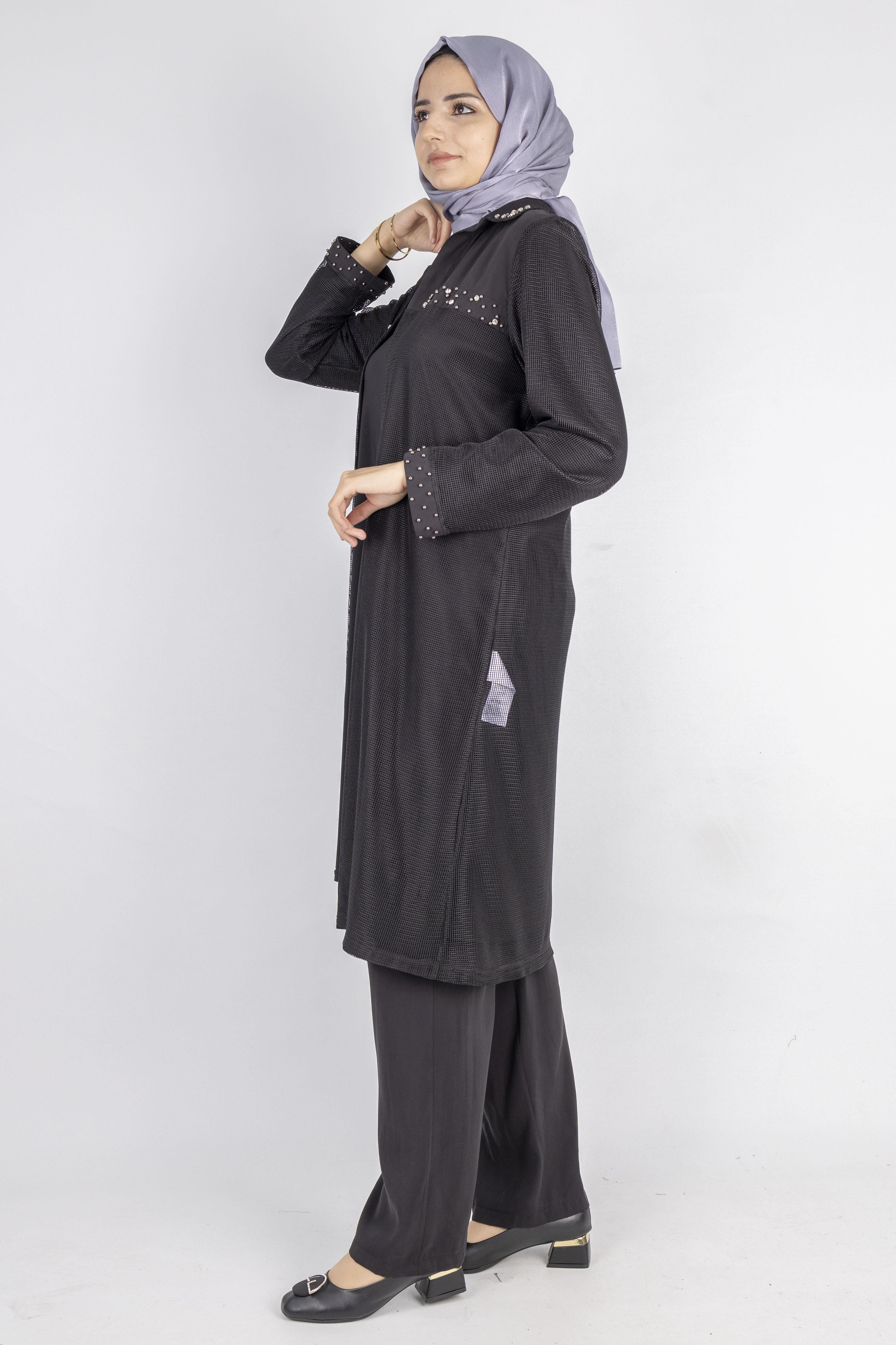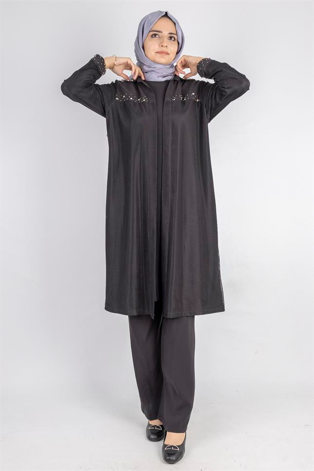 Ottoman Büyük Beden içlik ve File Kimono Takım Siyah OTW4242