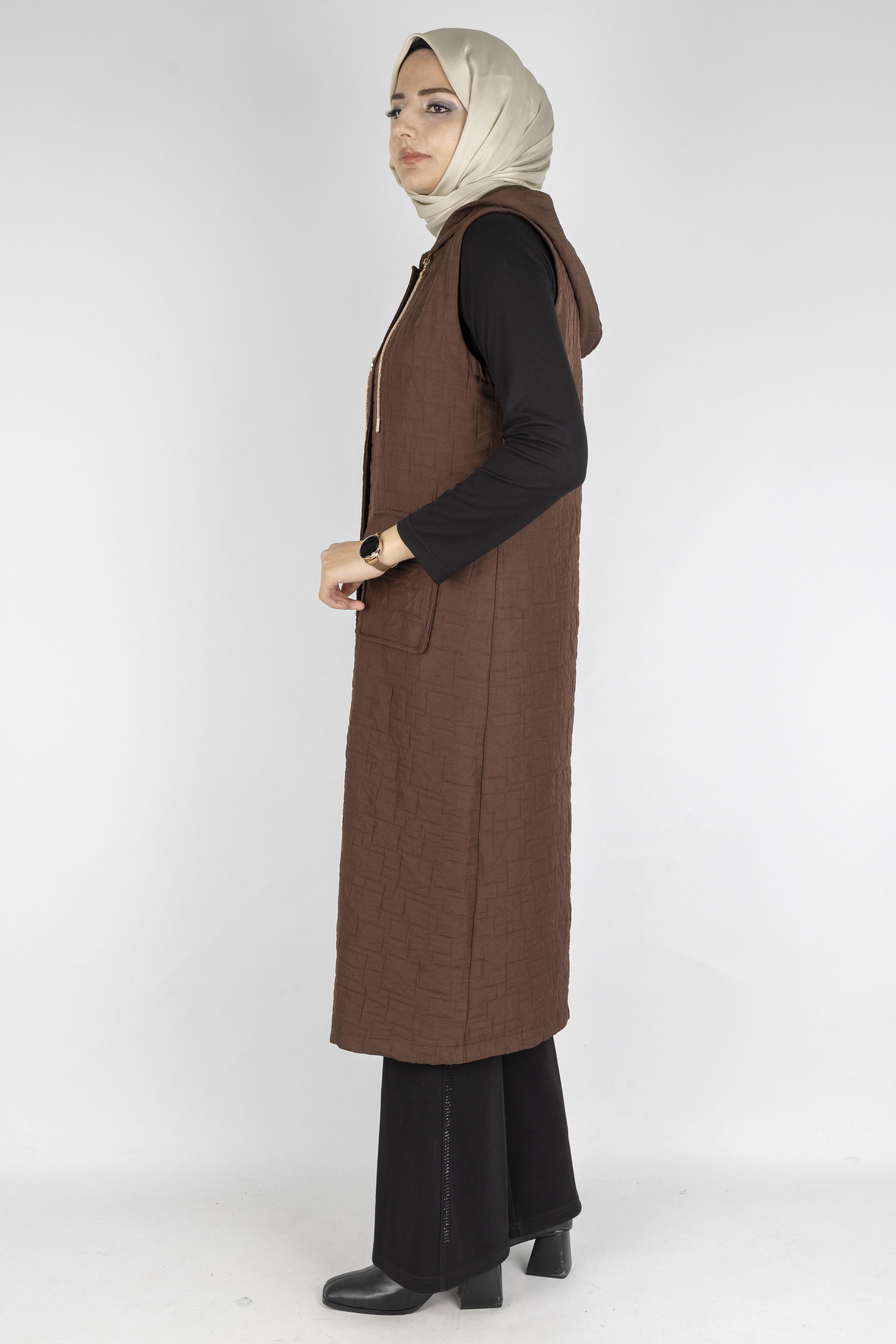 Ottoman Büyük Beden Kapitone Yelek Kahve OTW4032