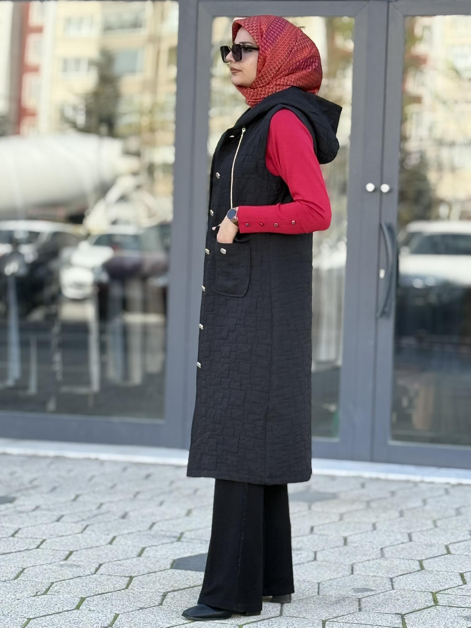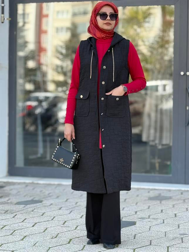 Ottoman Büyük Beden Kapitone Yelek Siyah OTW4032