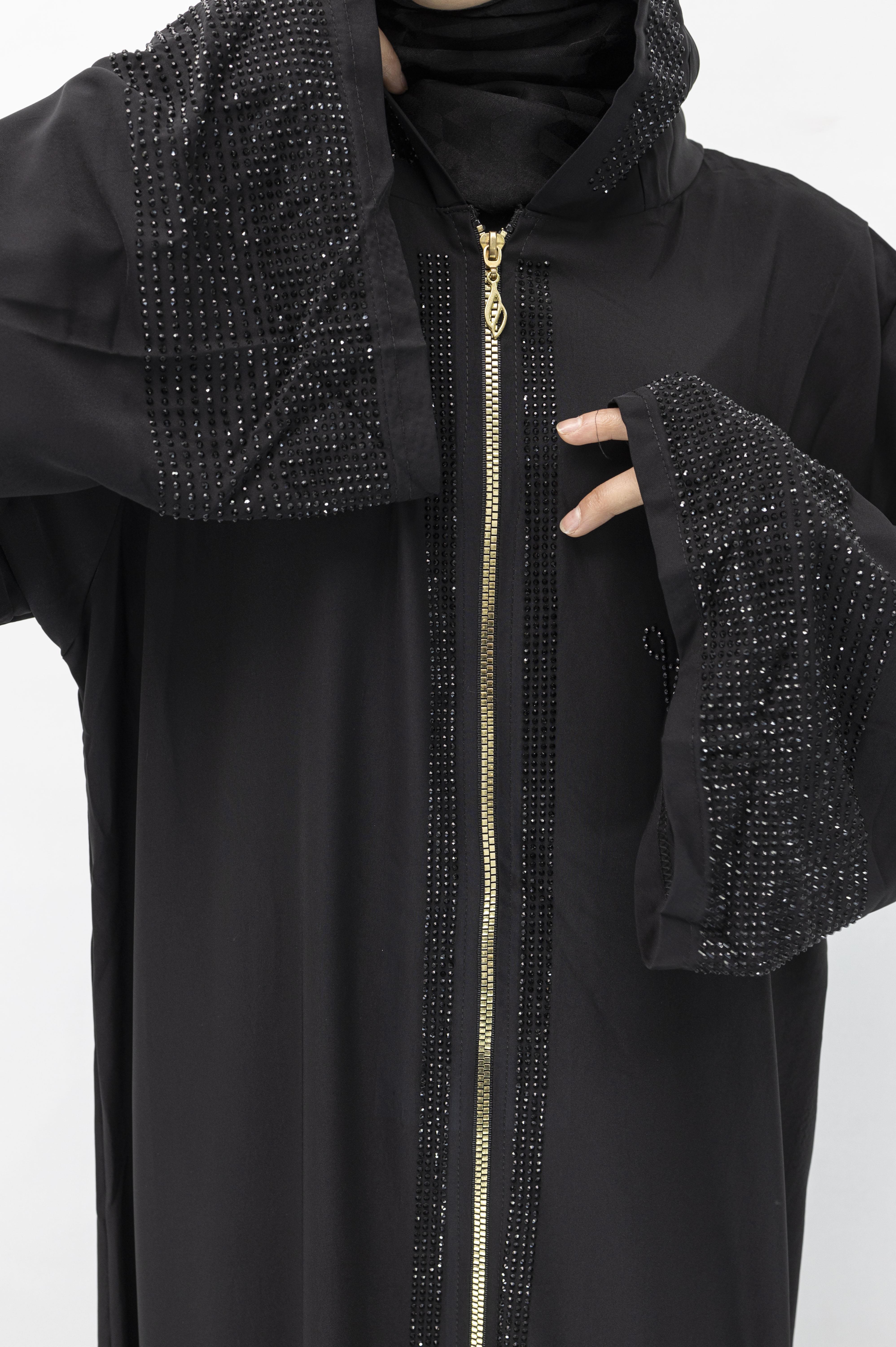 OTTOMAN TAŞLI DUBAİ FERACE Siyah OTW6112