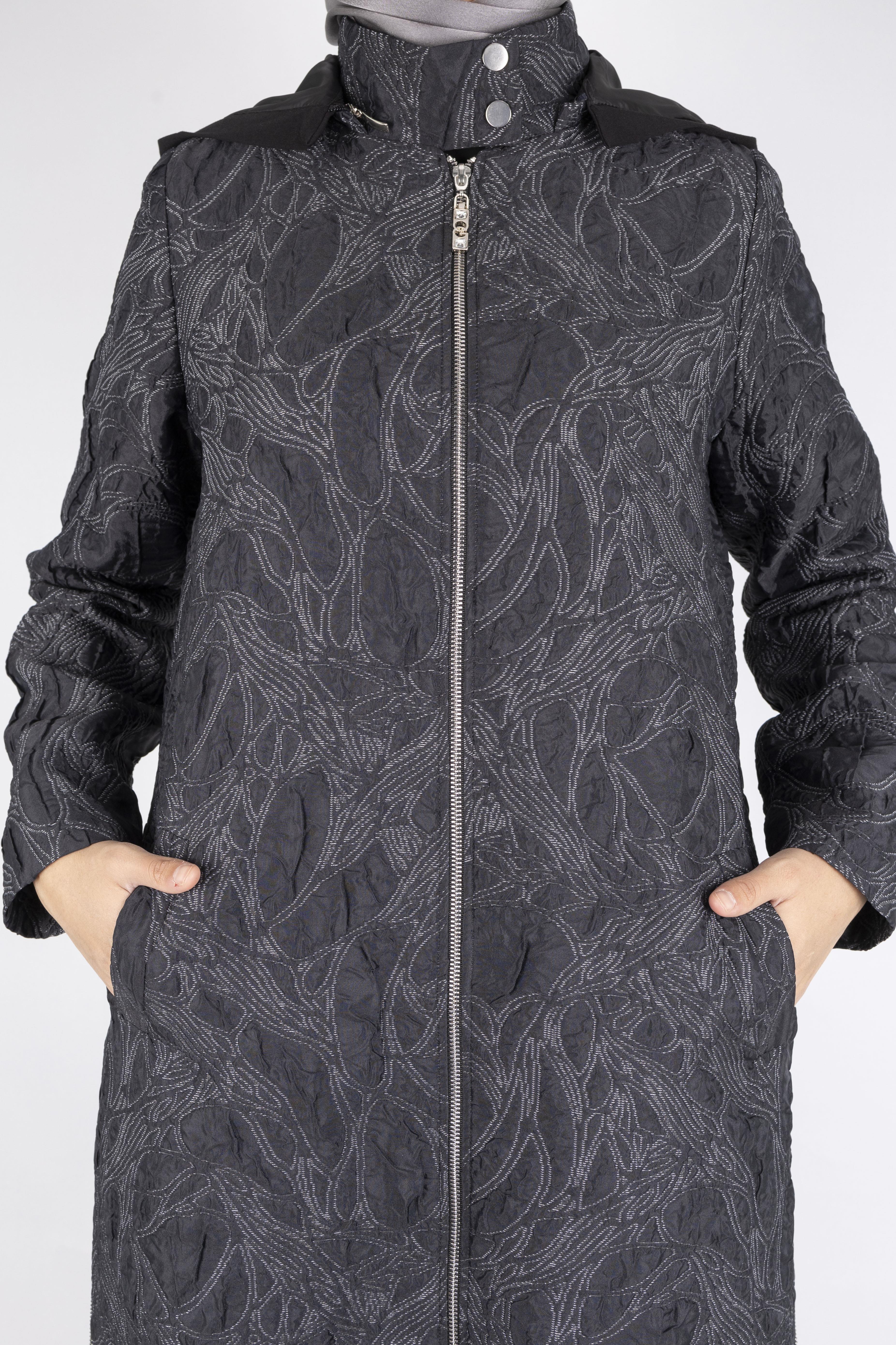 OTW1585 Orhan Store Desen Dokulu Astarlı Tesettür Kap Tam Fermuarlı Siyah