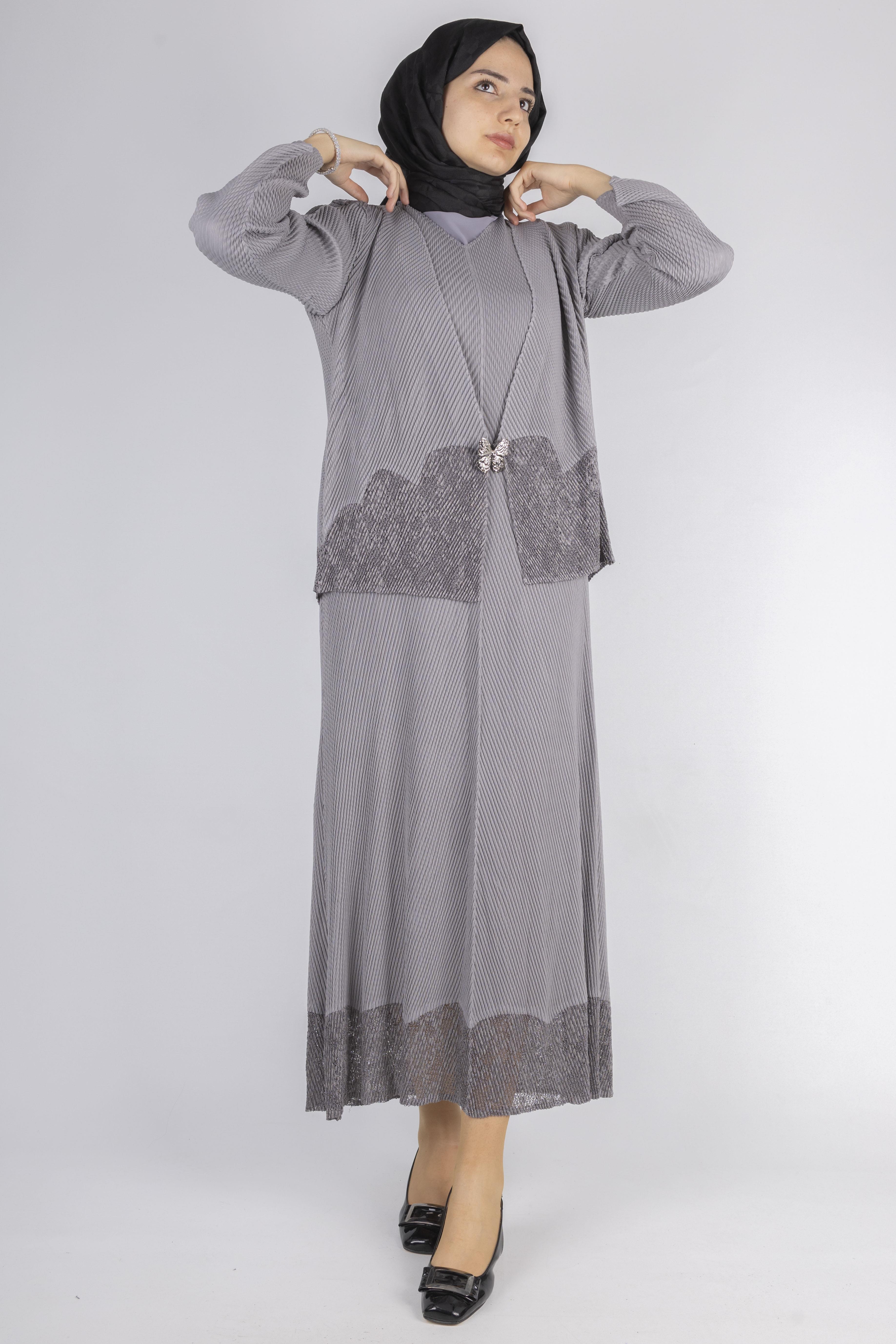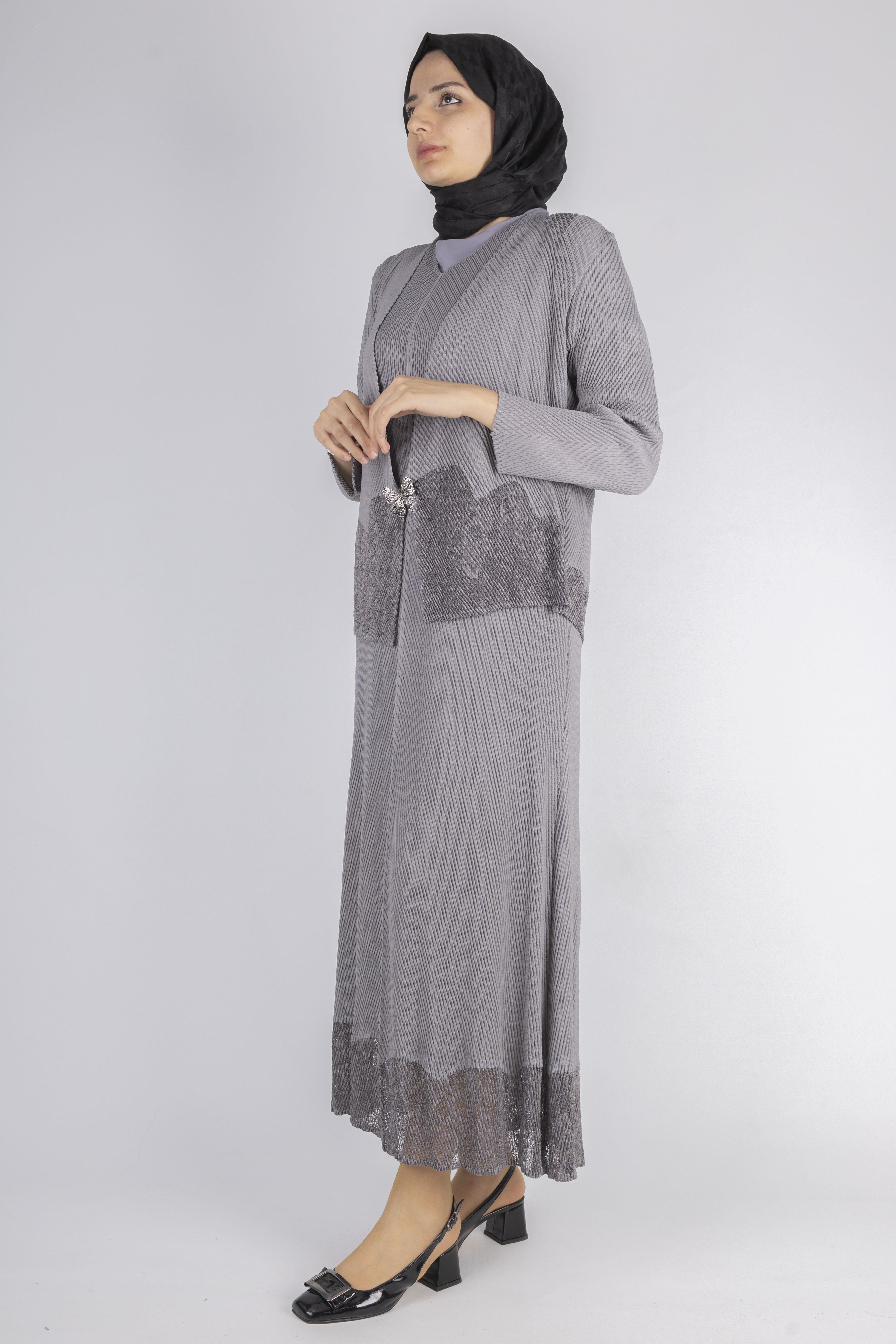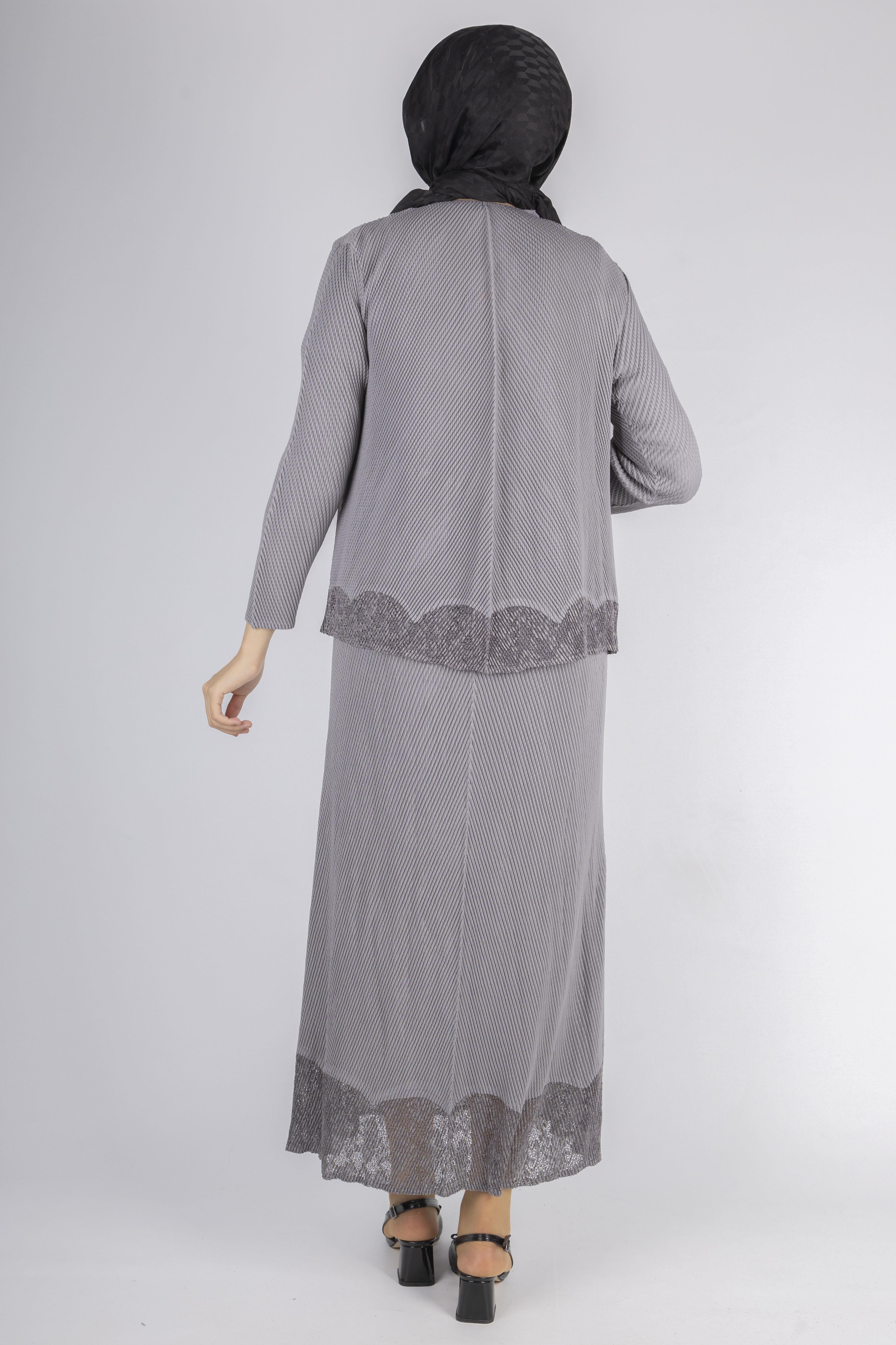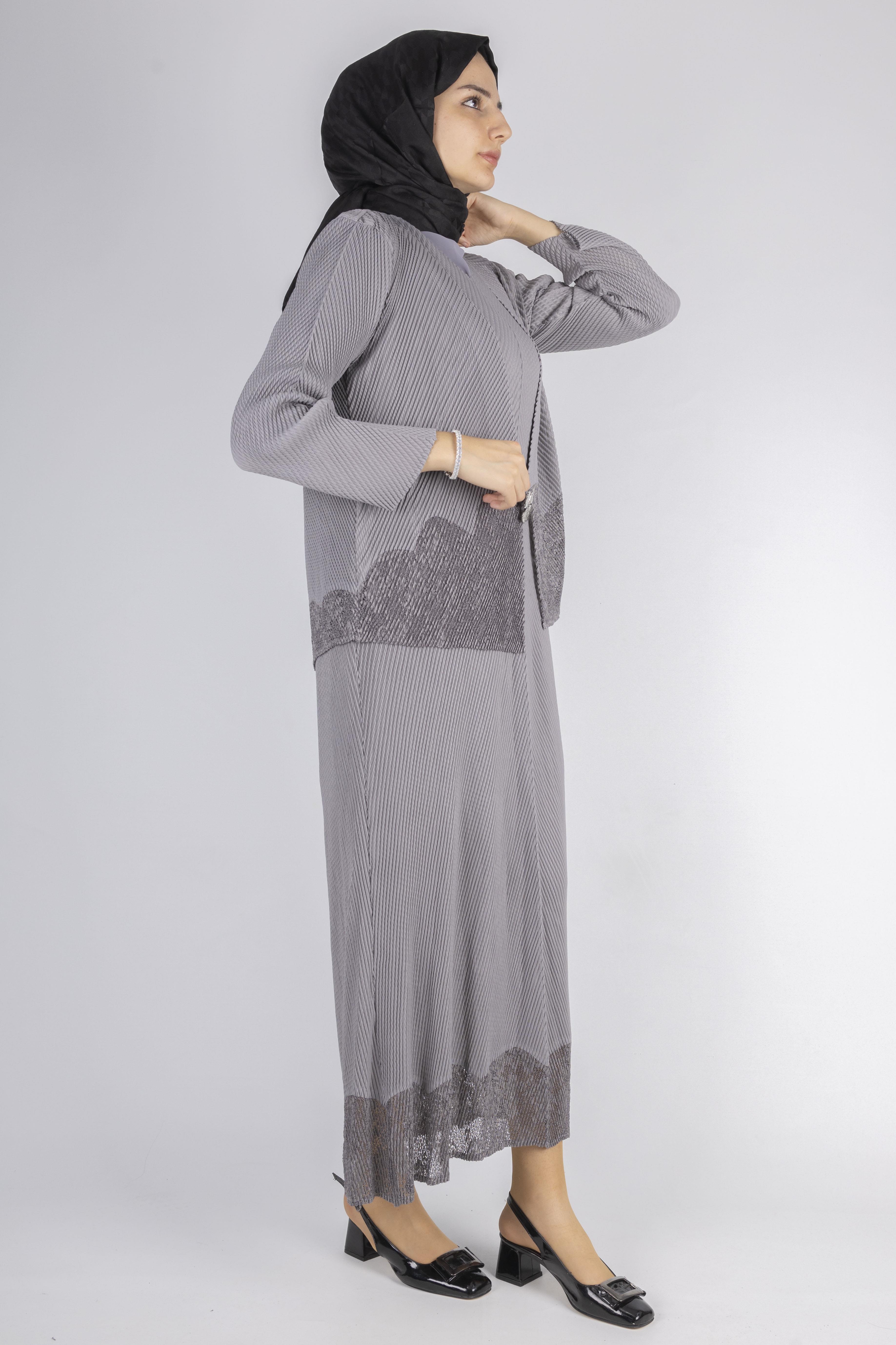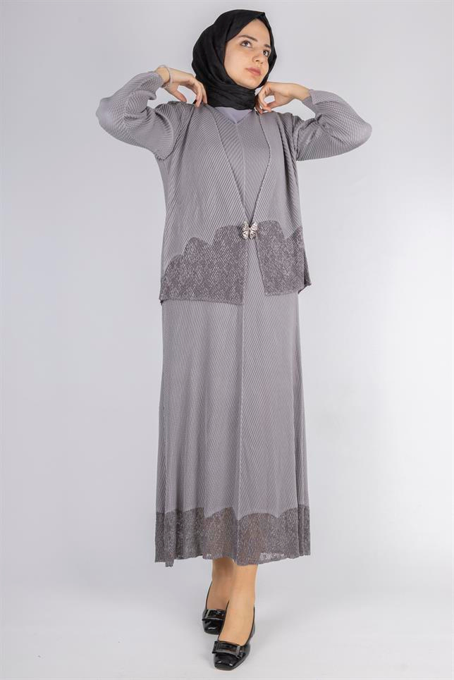 OTW24815 İthal Büyük Beden Ceketli Elbise Gri