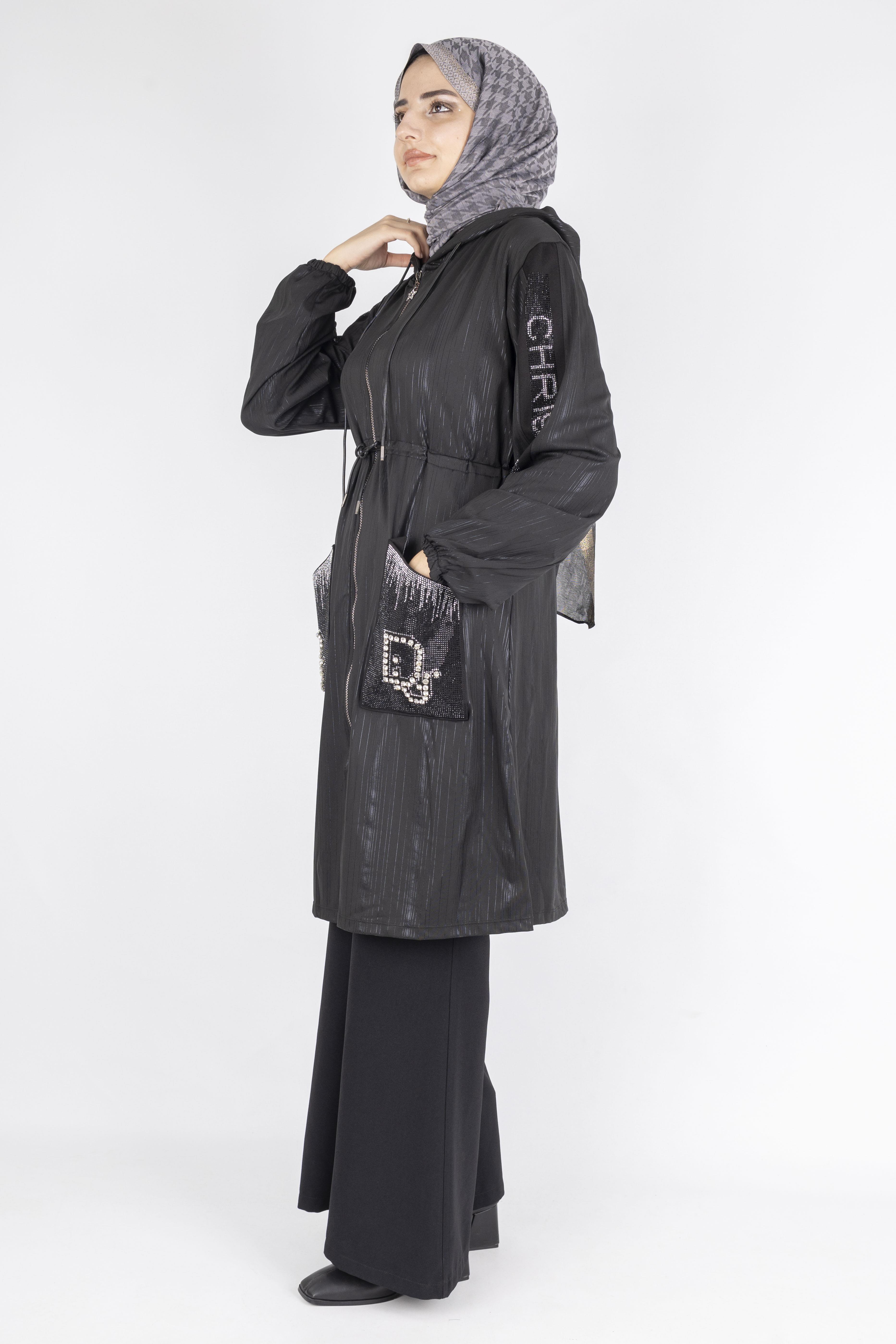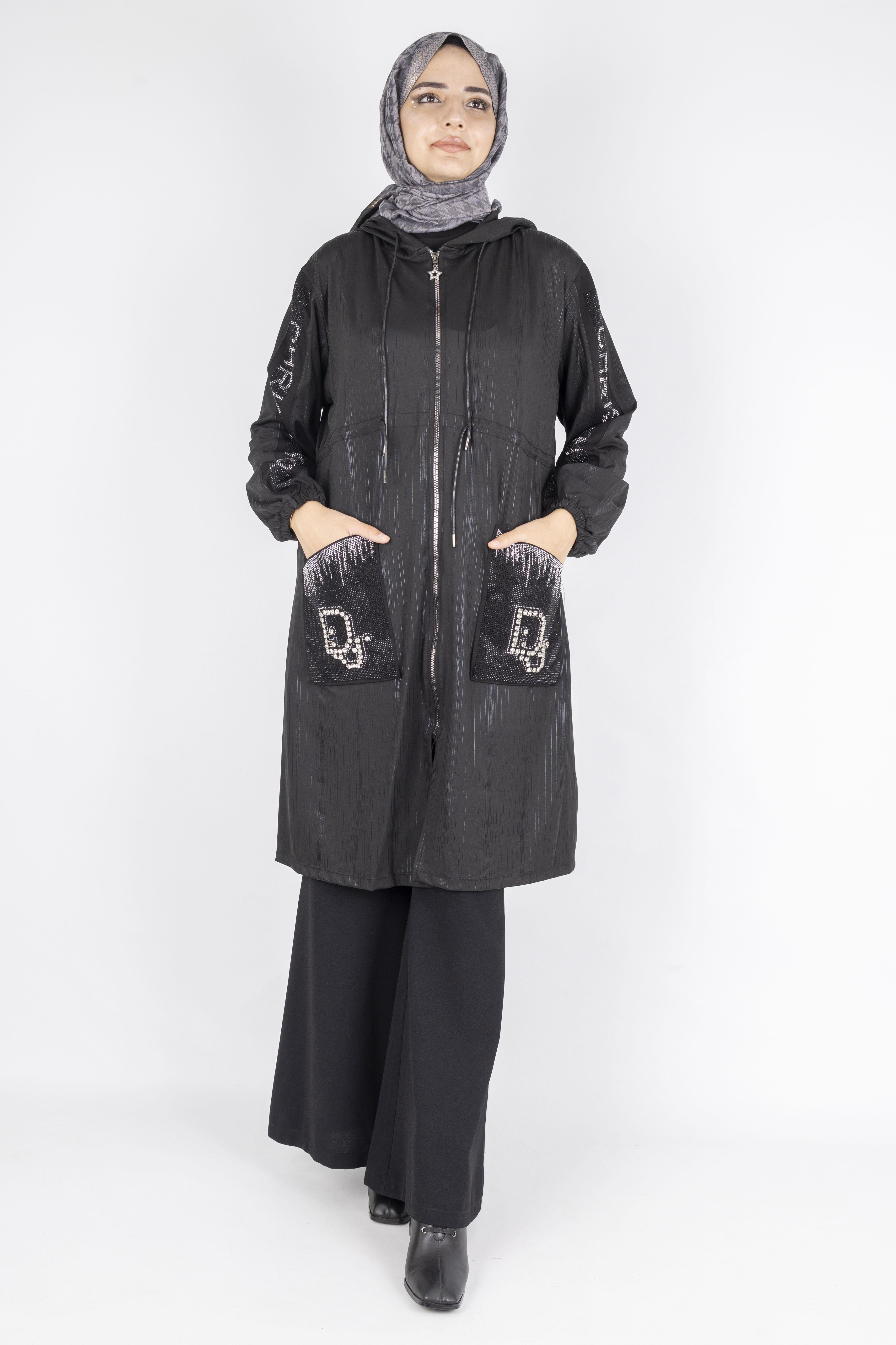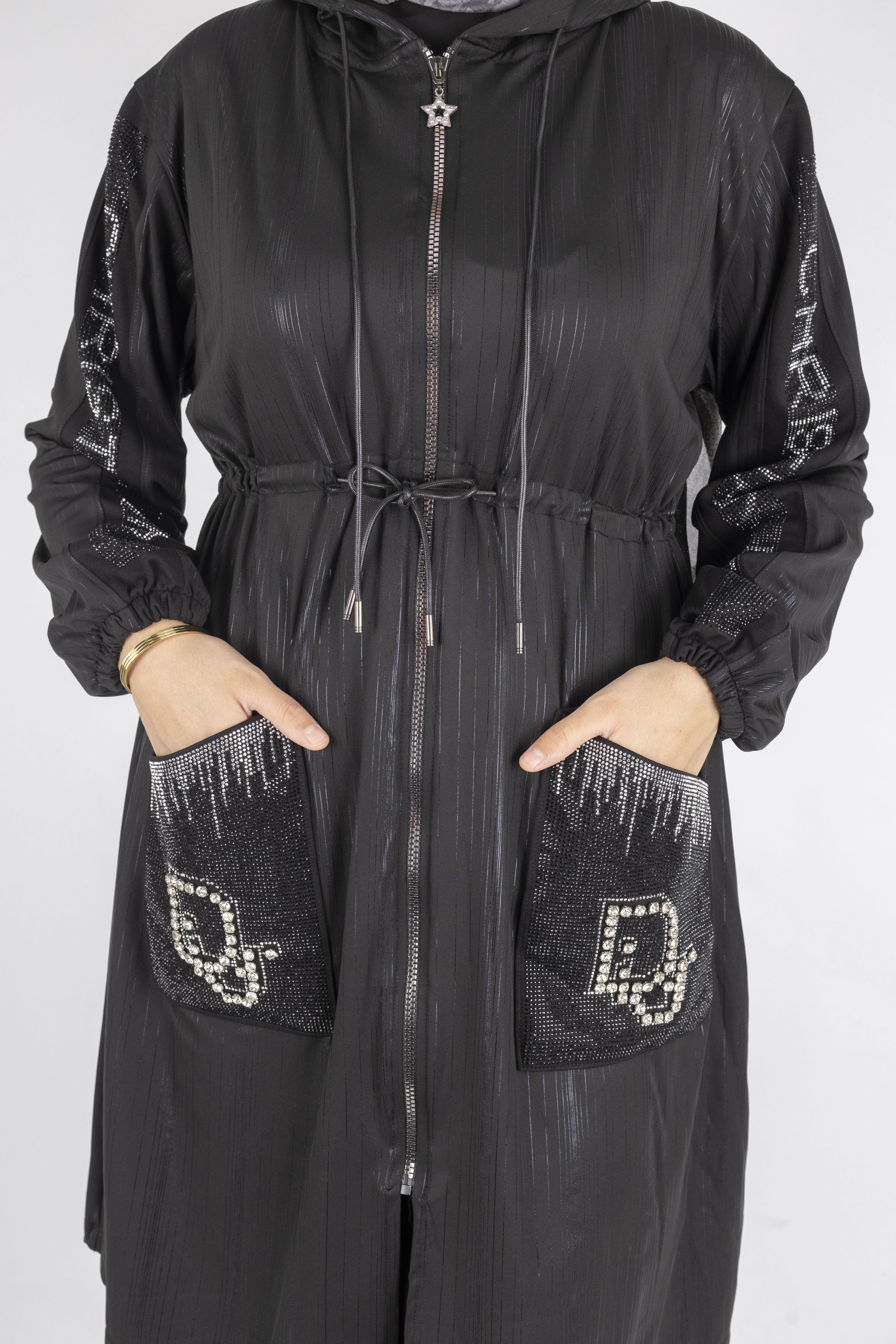 Parlak Detaylı Tesettür Taşlı Kap Siyah OTW1007