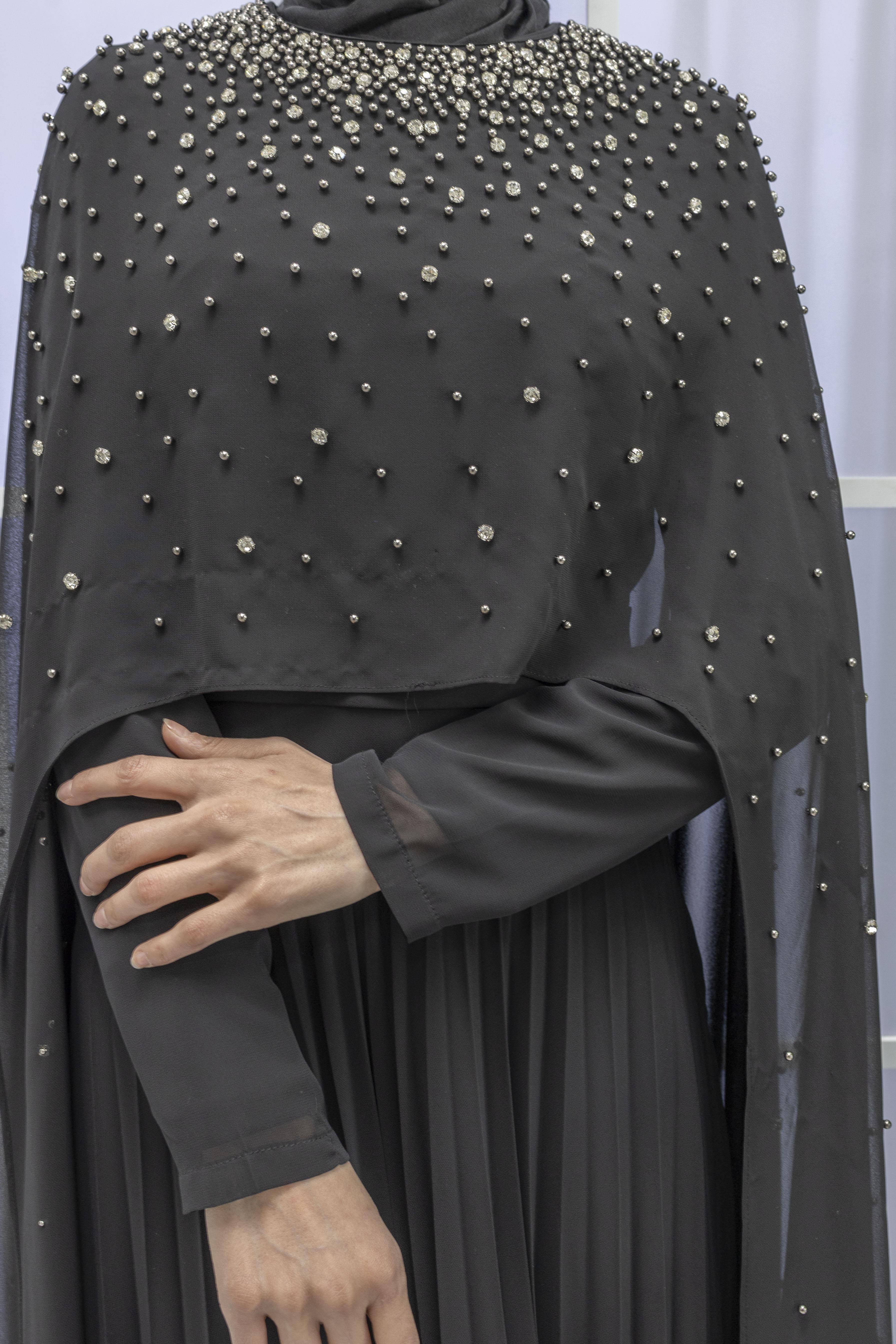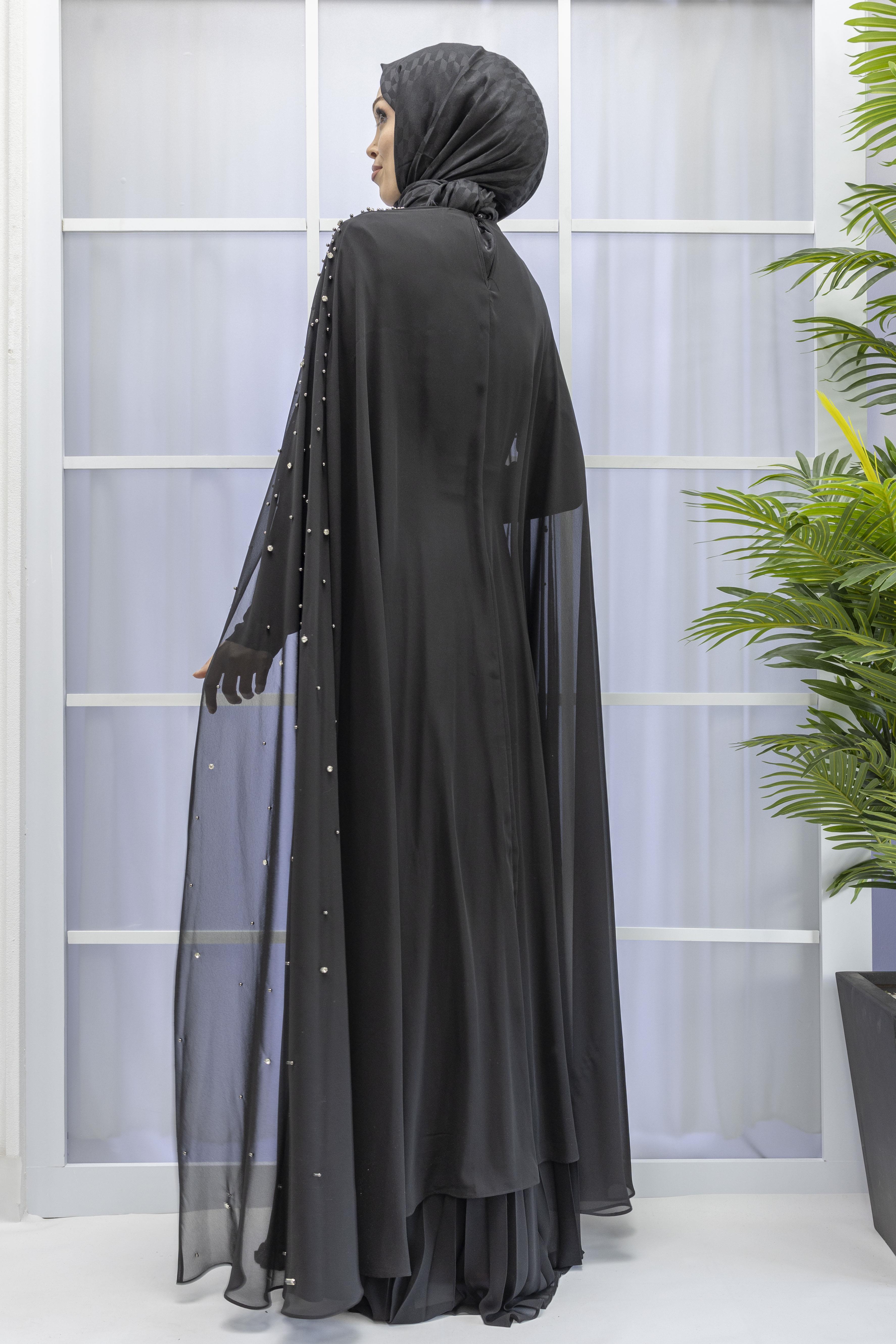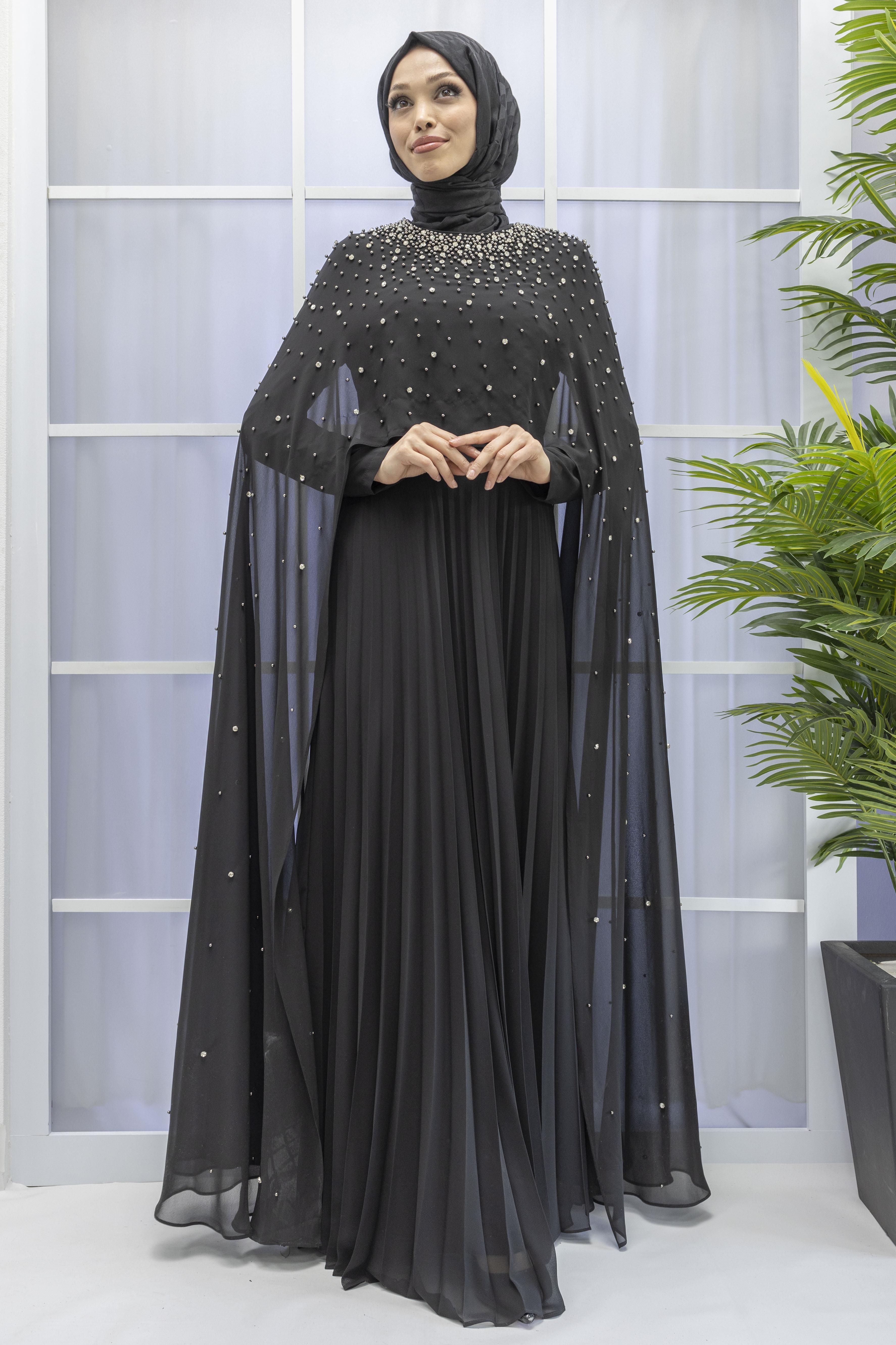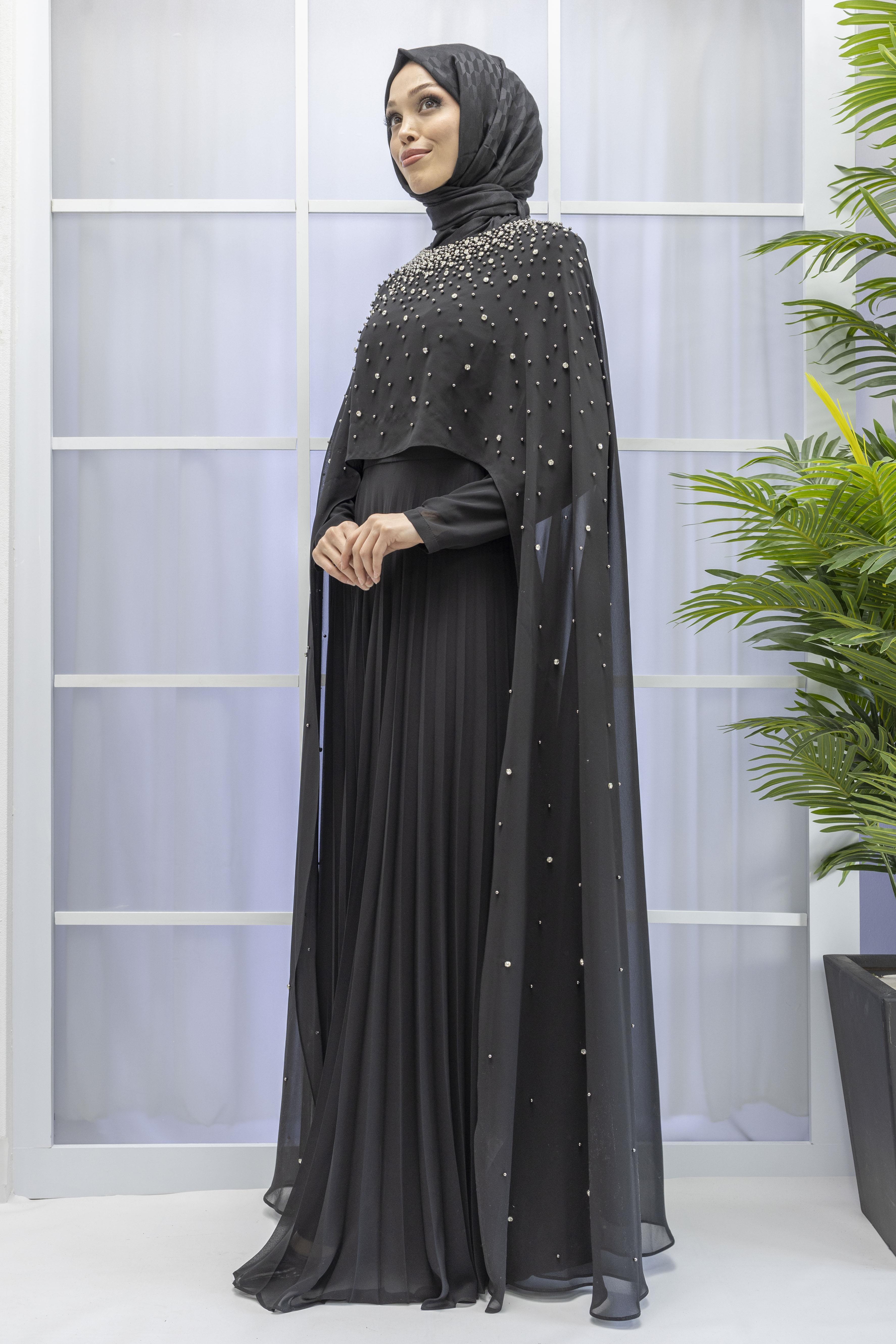 PELERİNLİ ABİYE ELBİSE Siyah OTW38113
