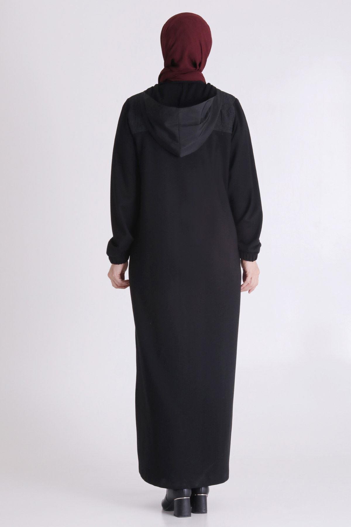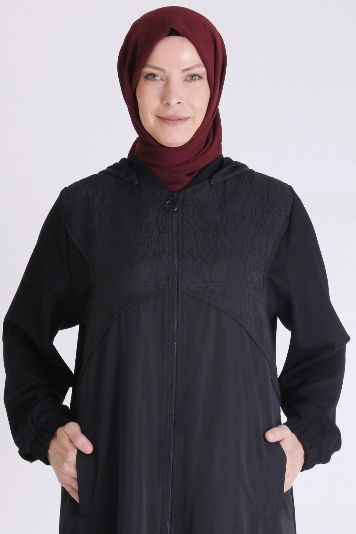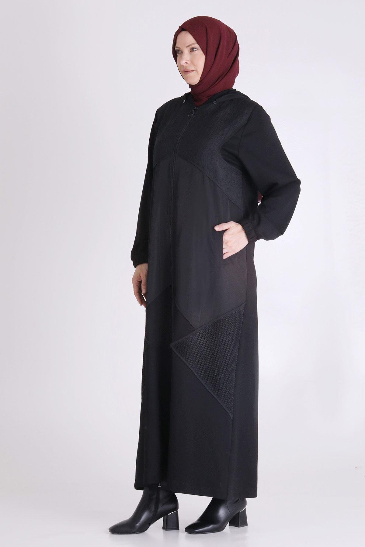 Pul Payet Çiçek İşlemeli Pantolonlu Büyük Beden Tesettür Takım Siyah OTW28076