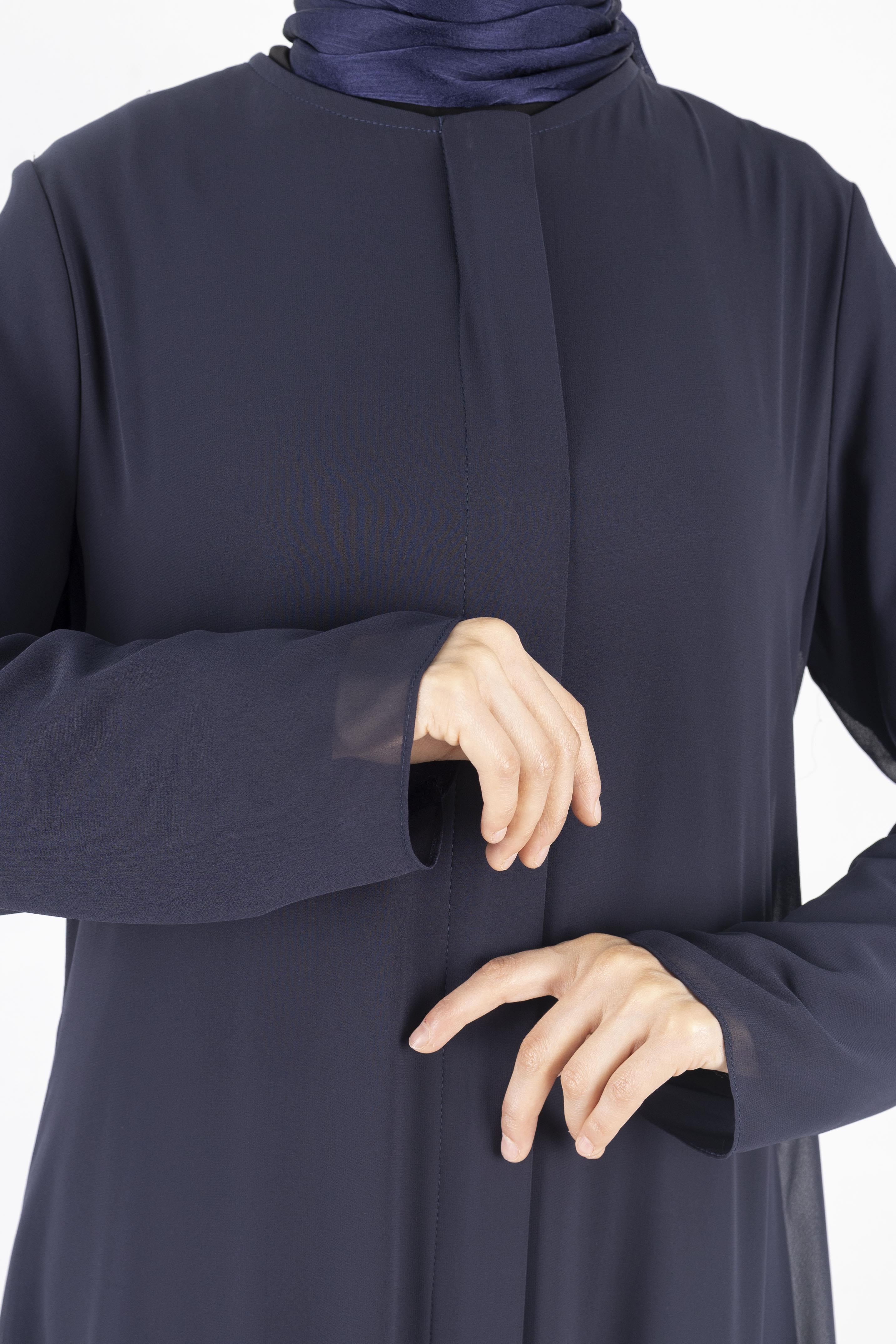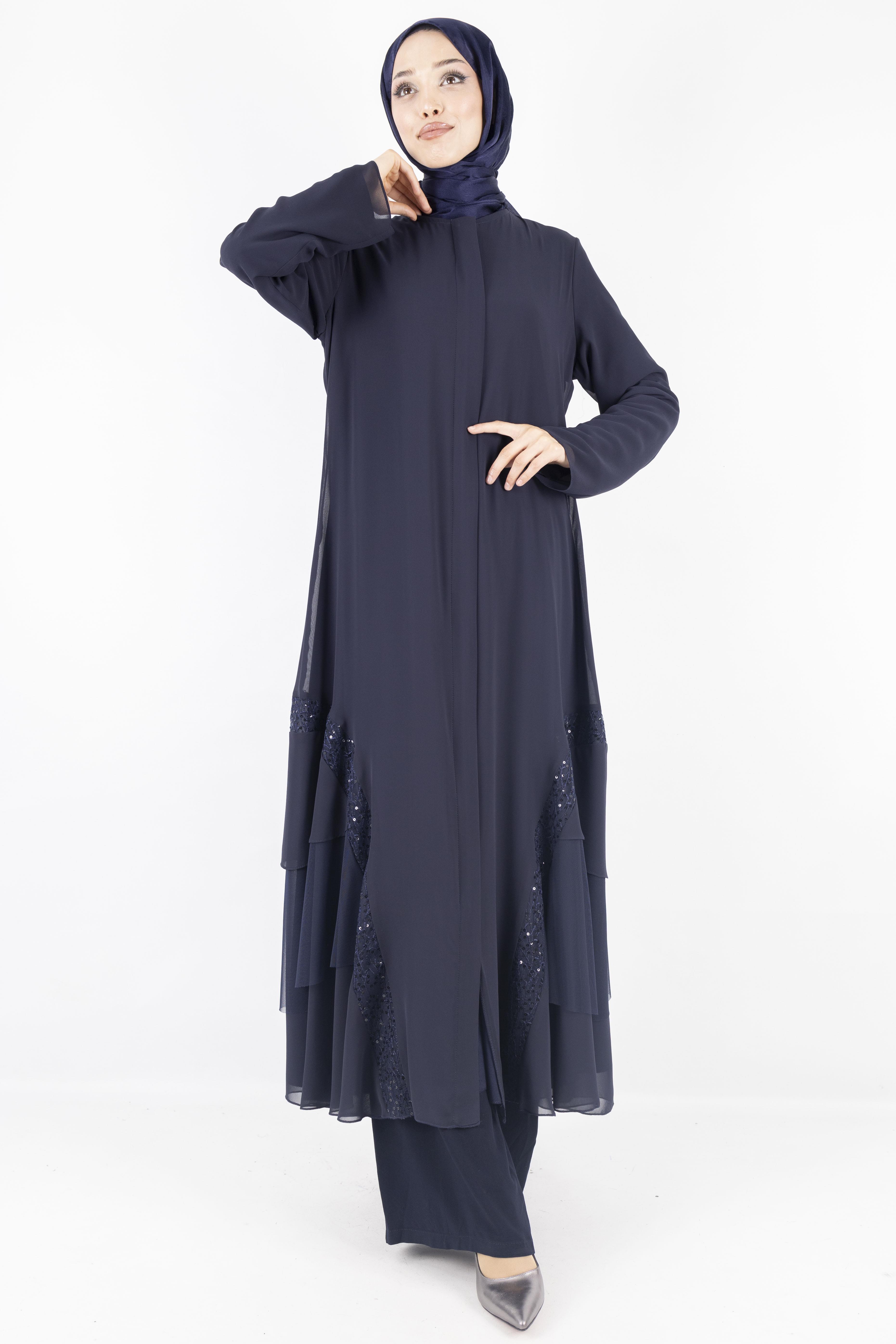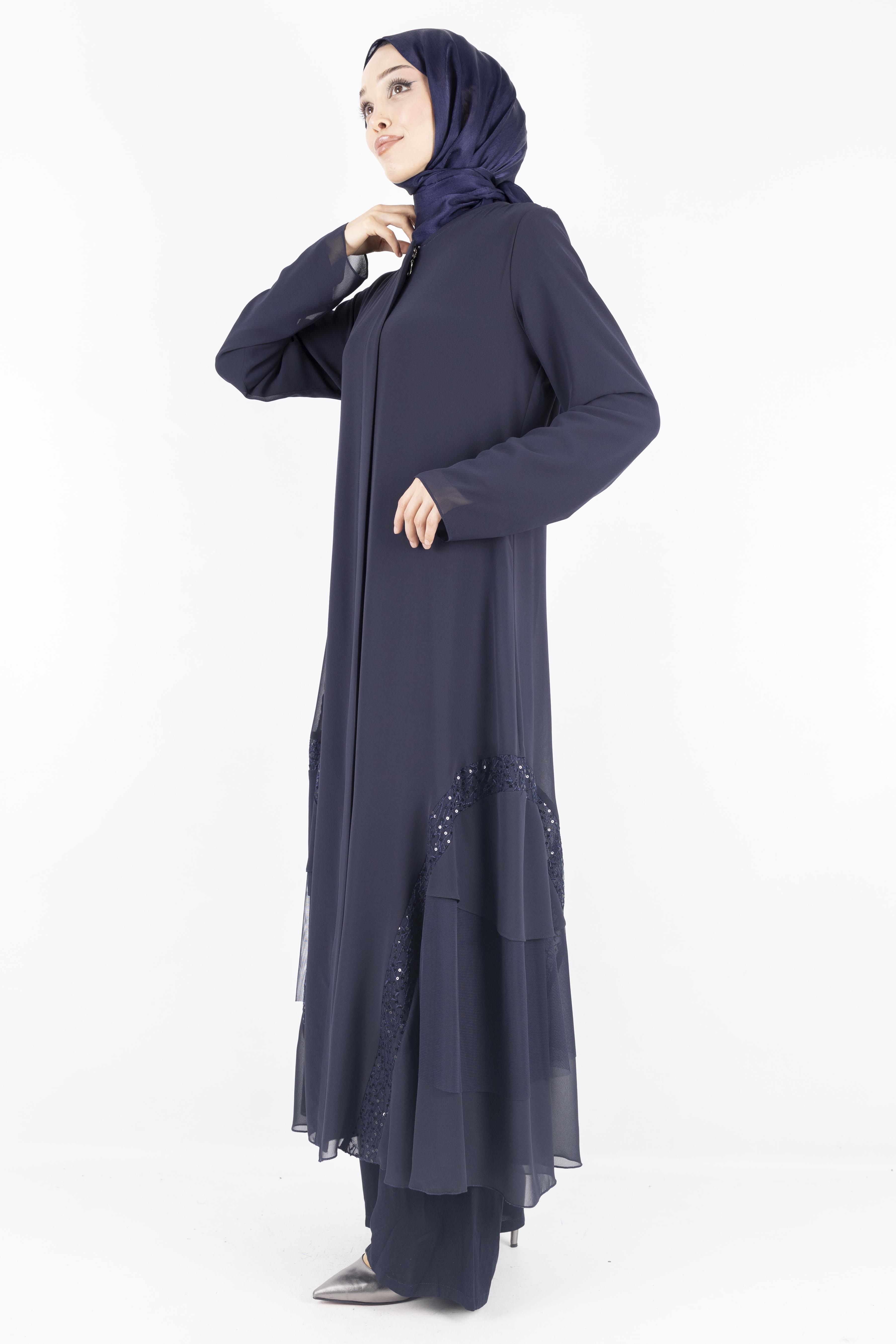 Pul Payet Detaylı Katlı Şifon Ferace Lacivert OTW36246