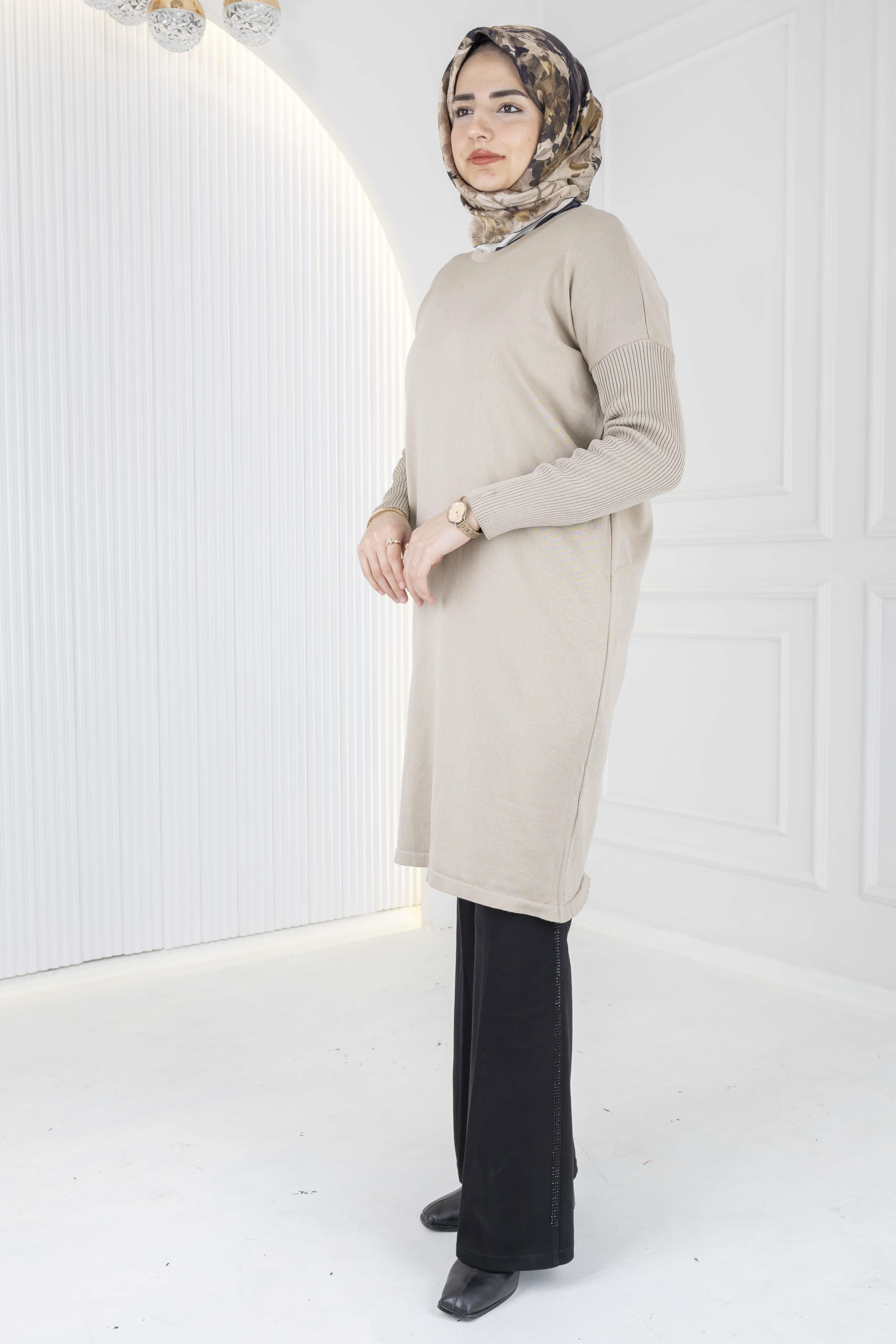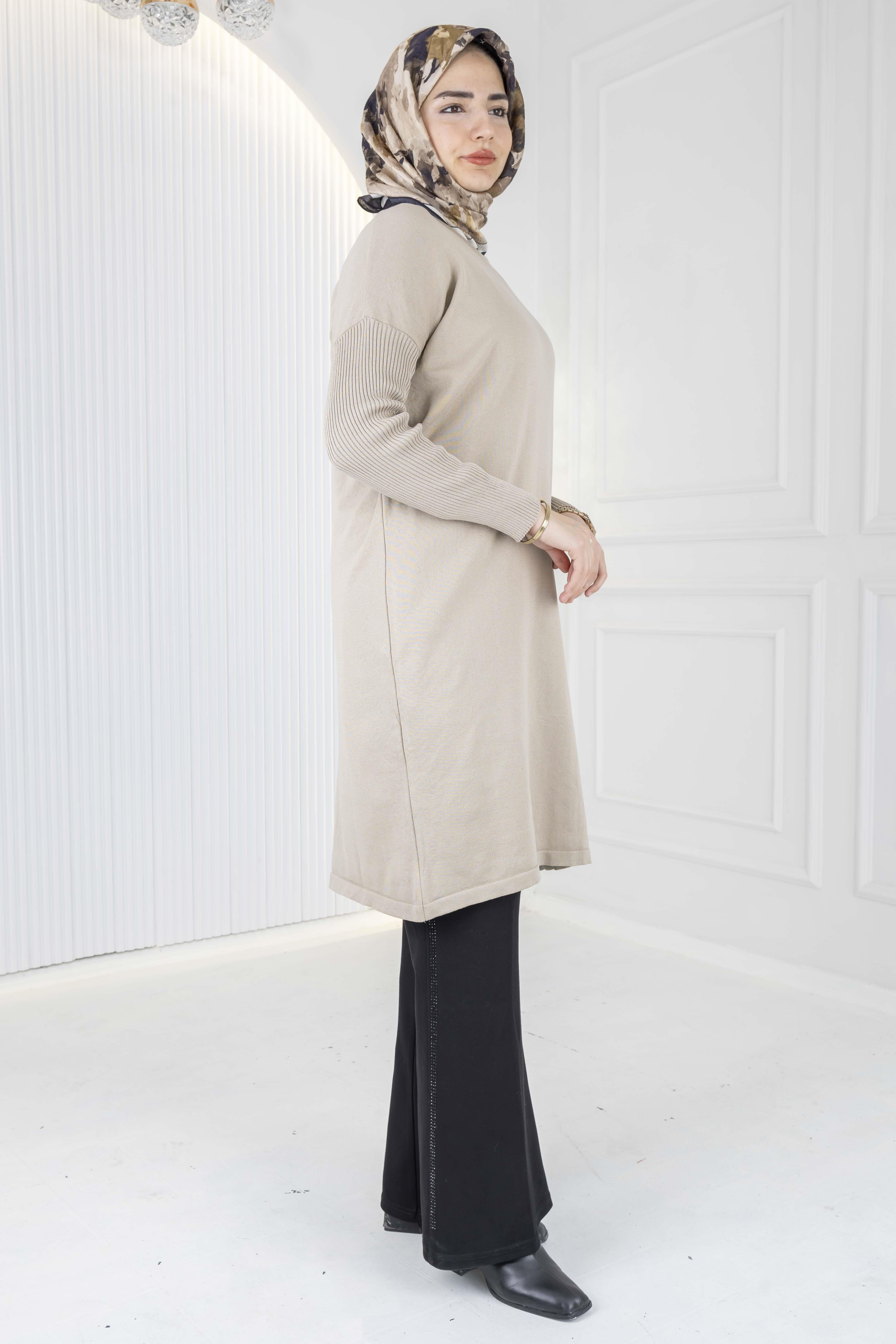 Rayon Kollu Merserize Triko Tunik Bej OTW118