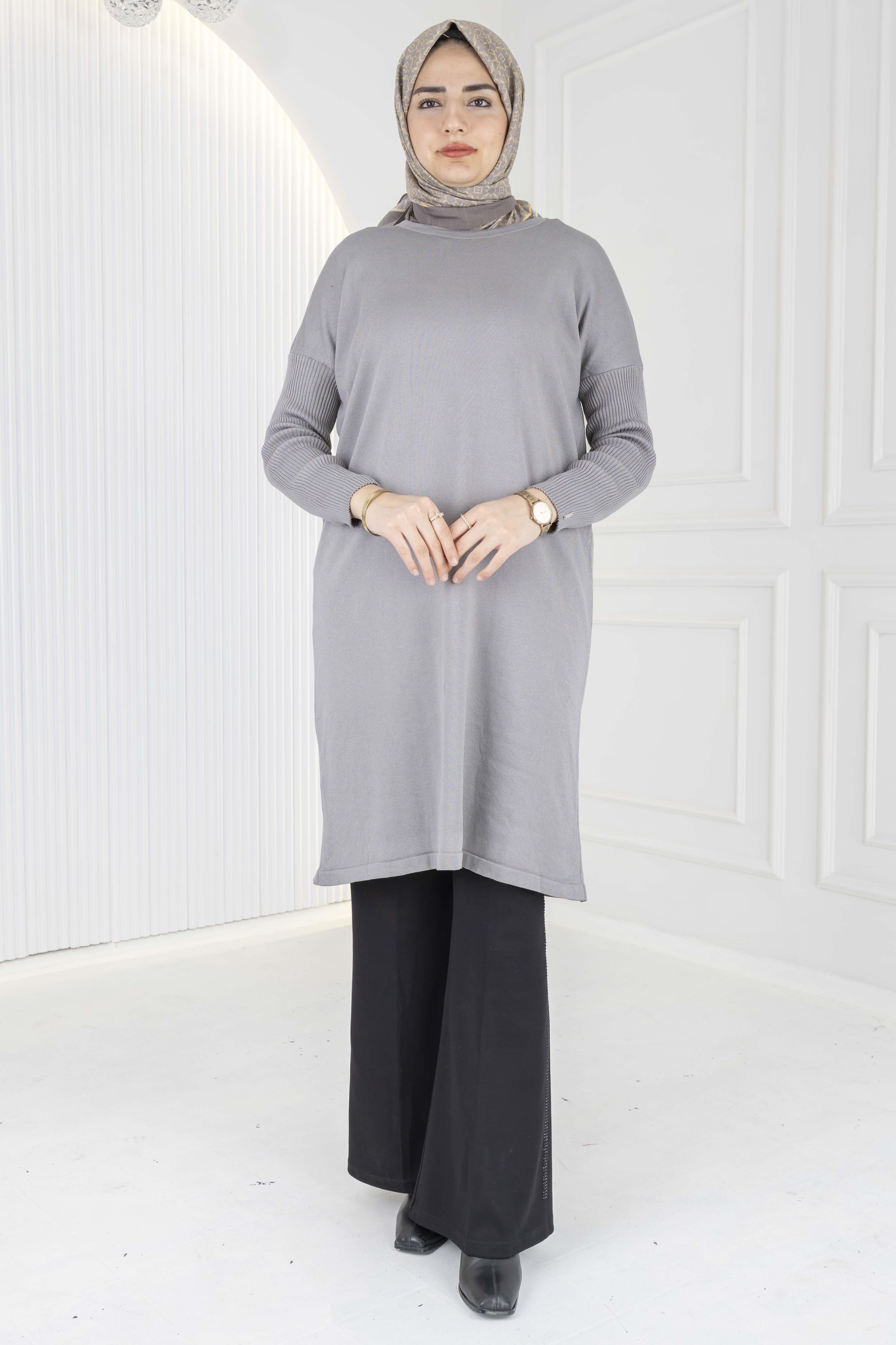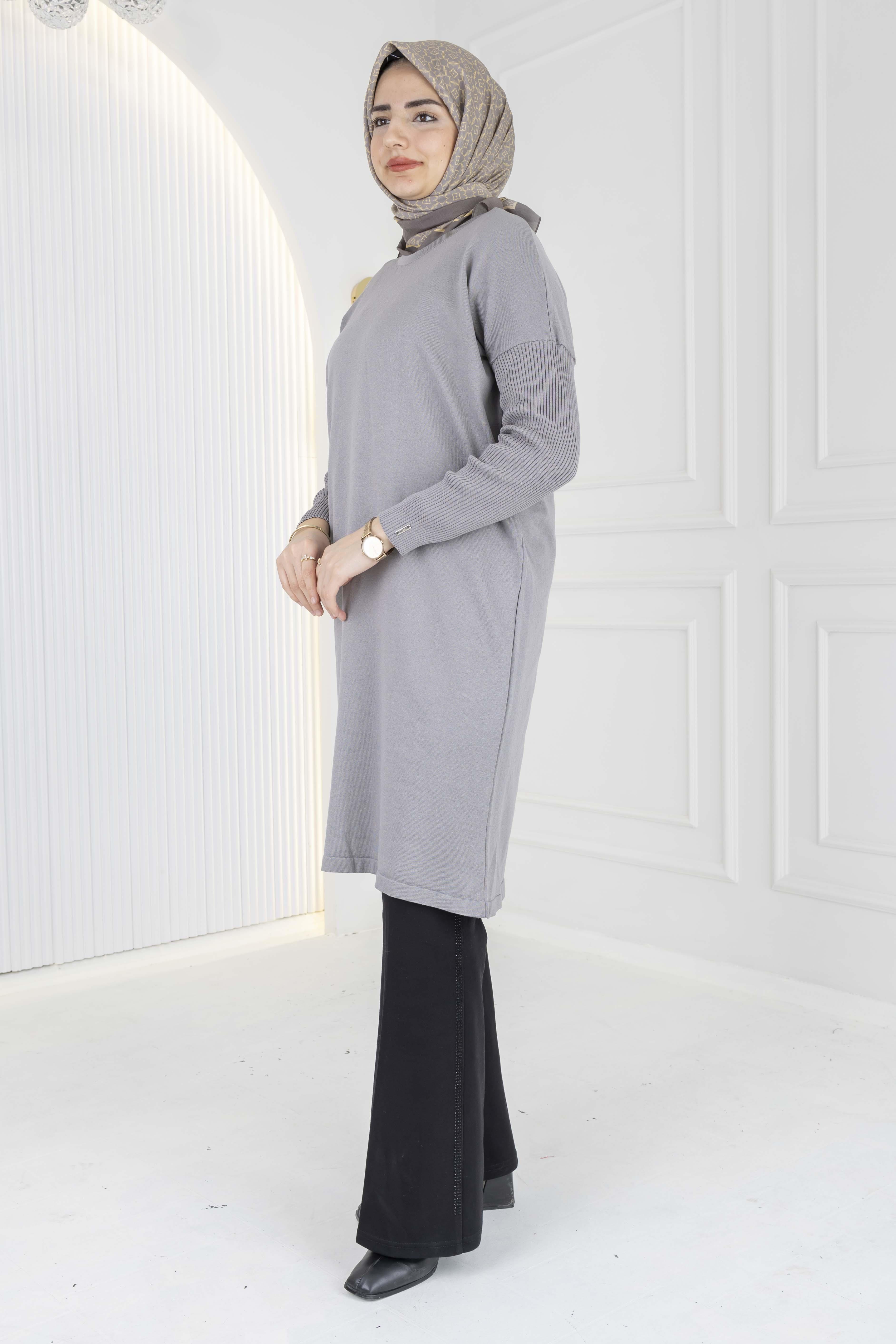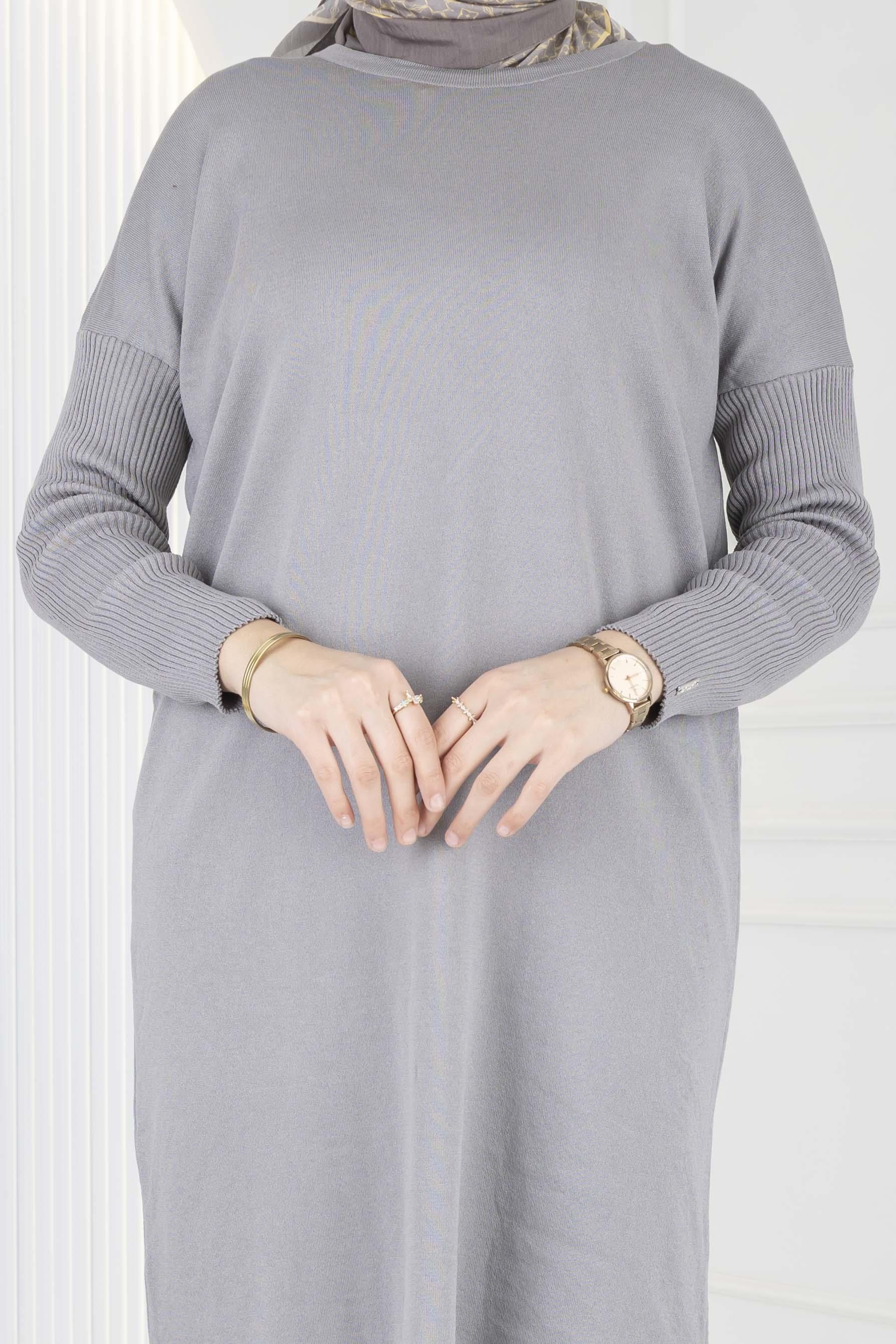Rayon Kollu Merserize Triko Tunik Gri OTW118
