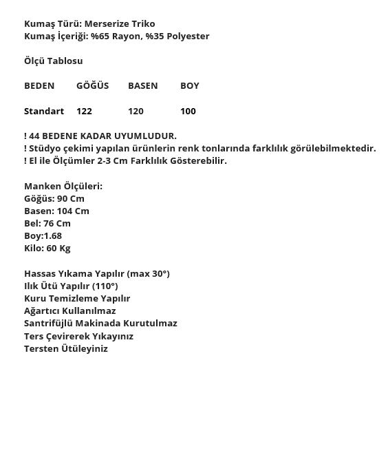 Kumaş İçeriği: %65 Rayon, %35 Polyester