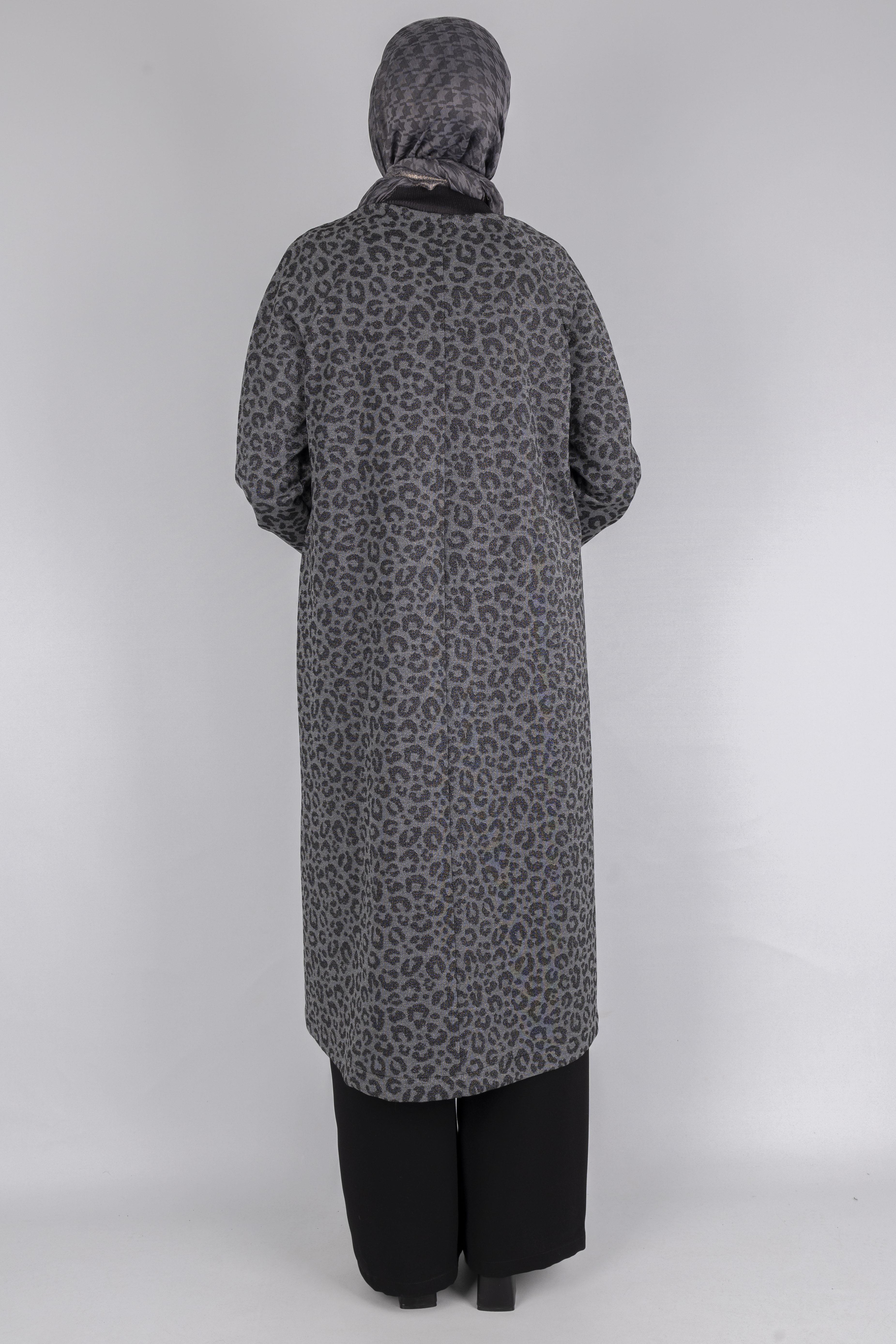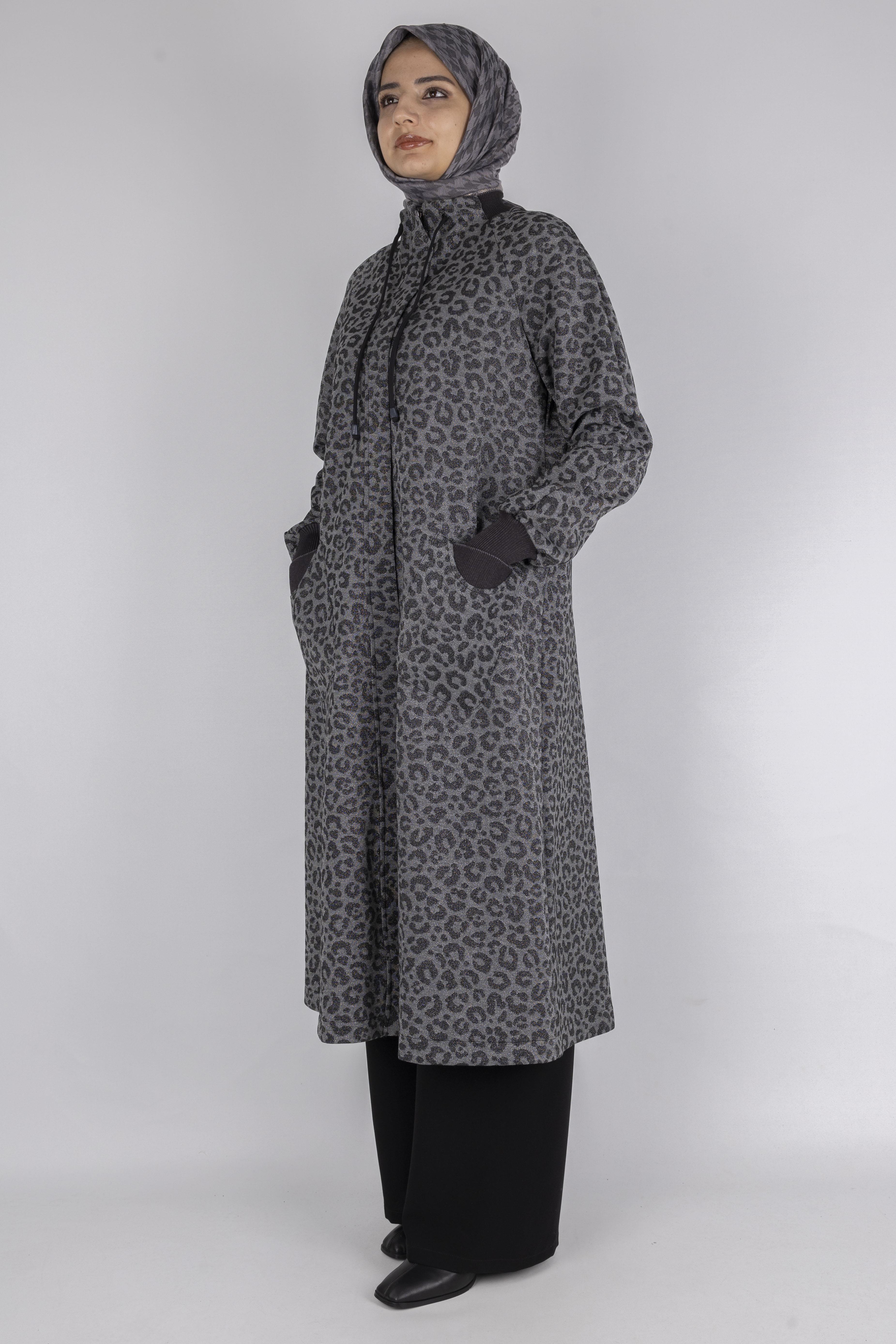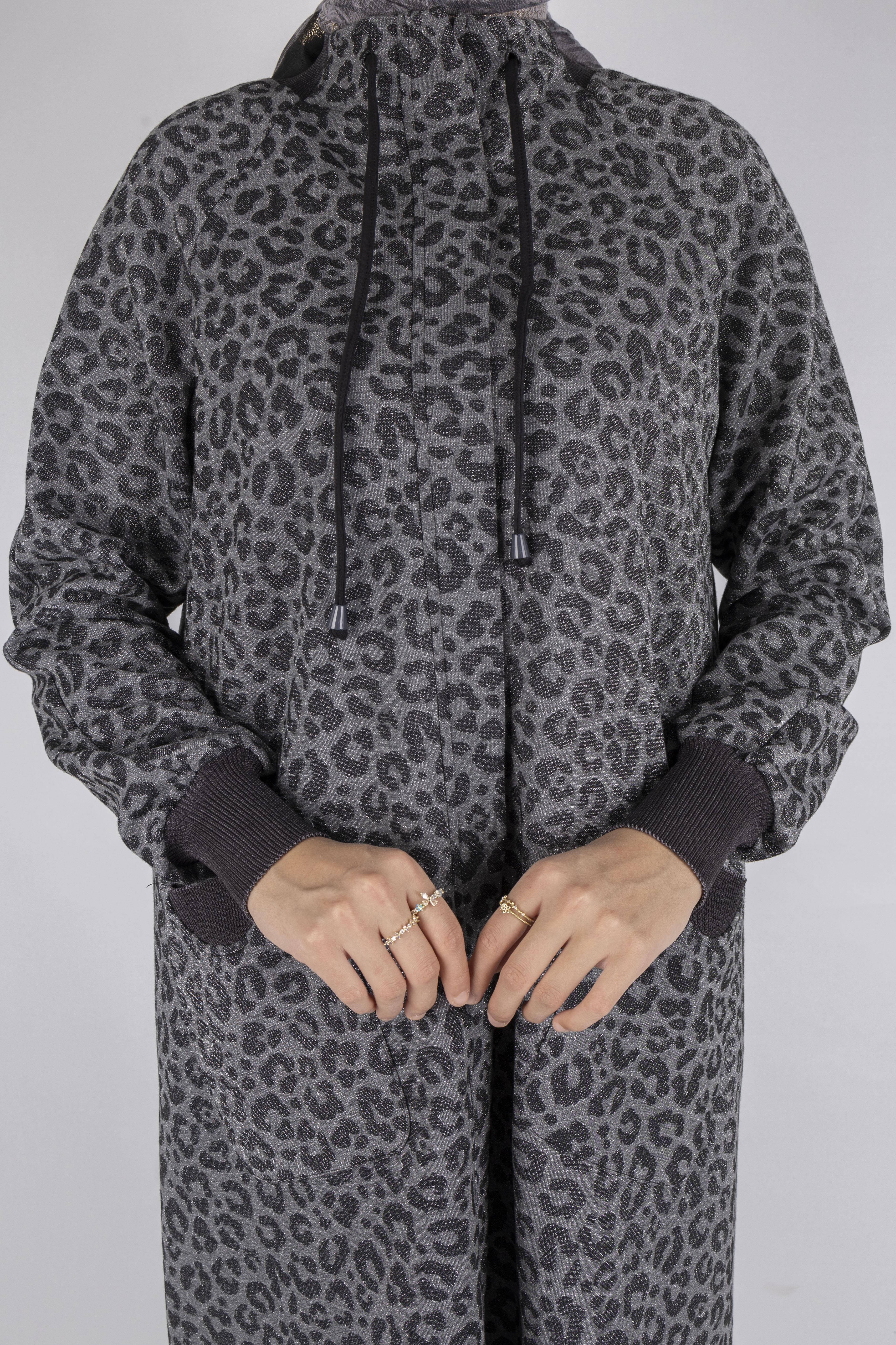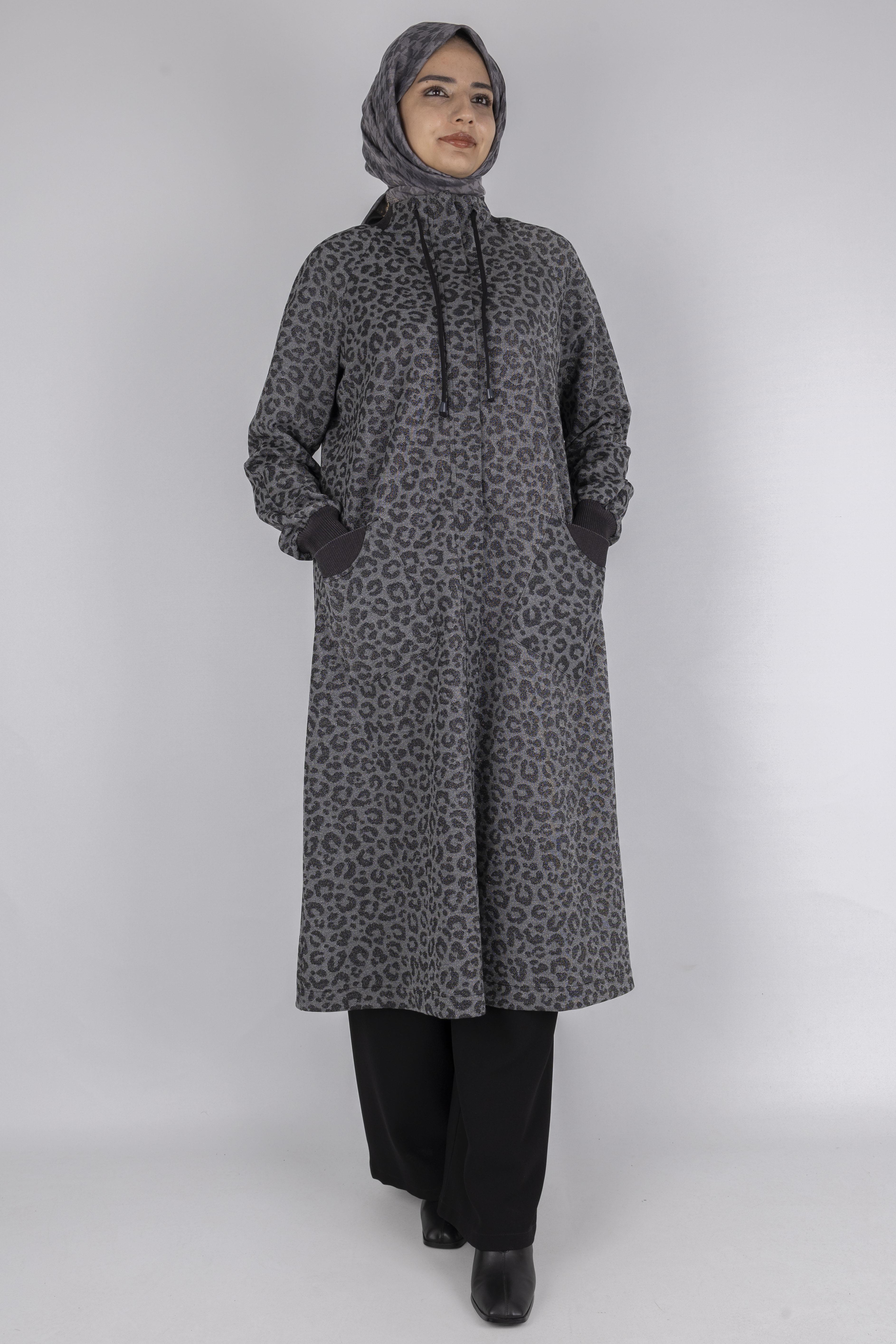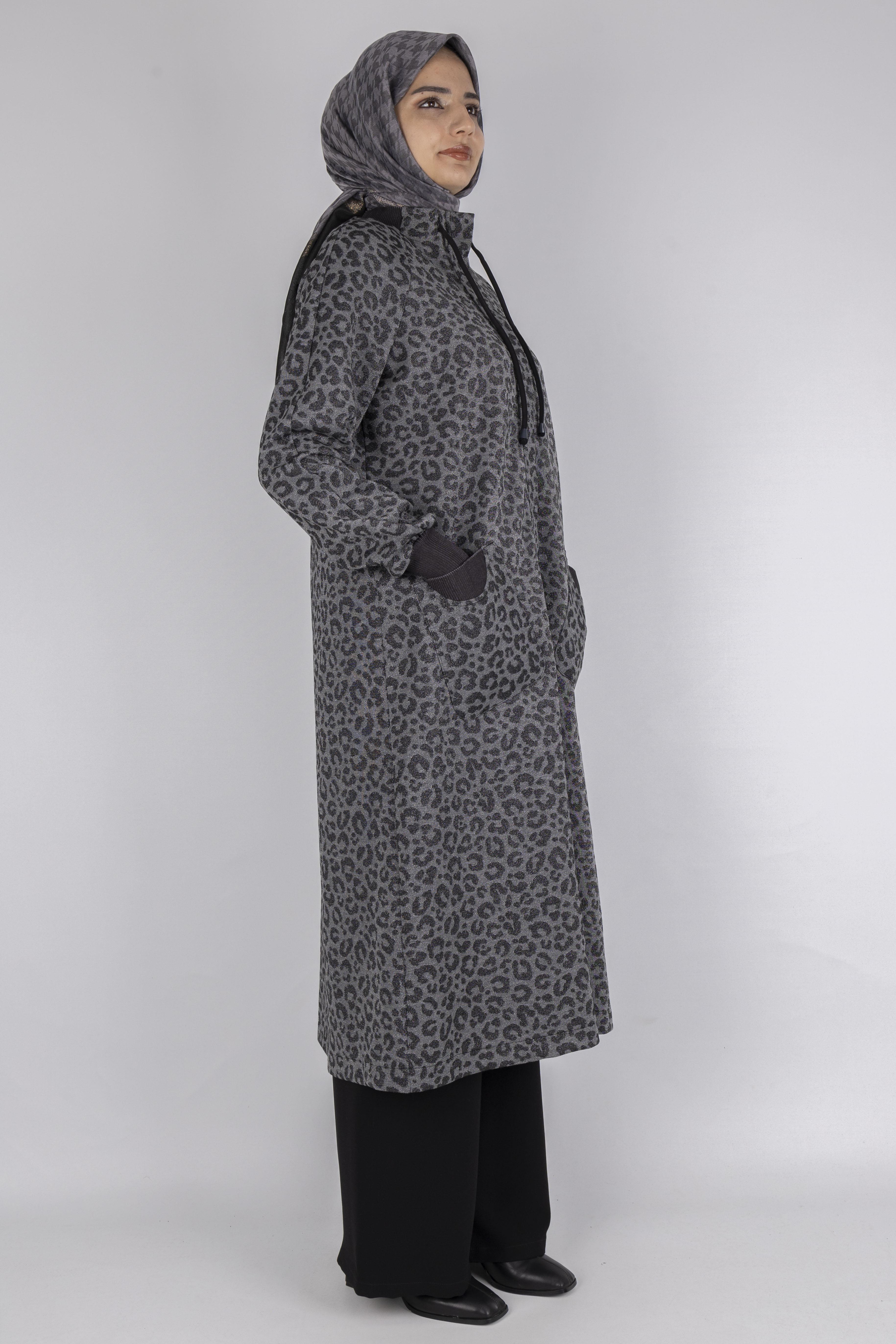 Ribanalı Dik Yaka İpli Leopar Desen Kap Antrasit OTW564